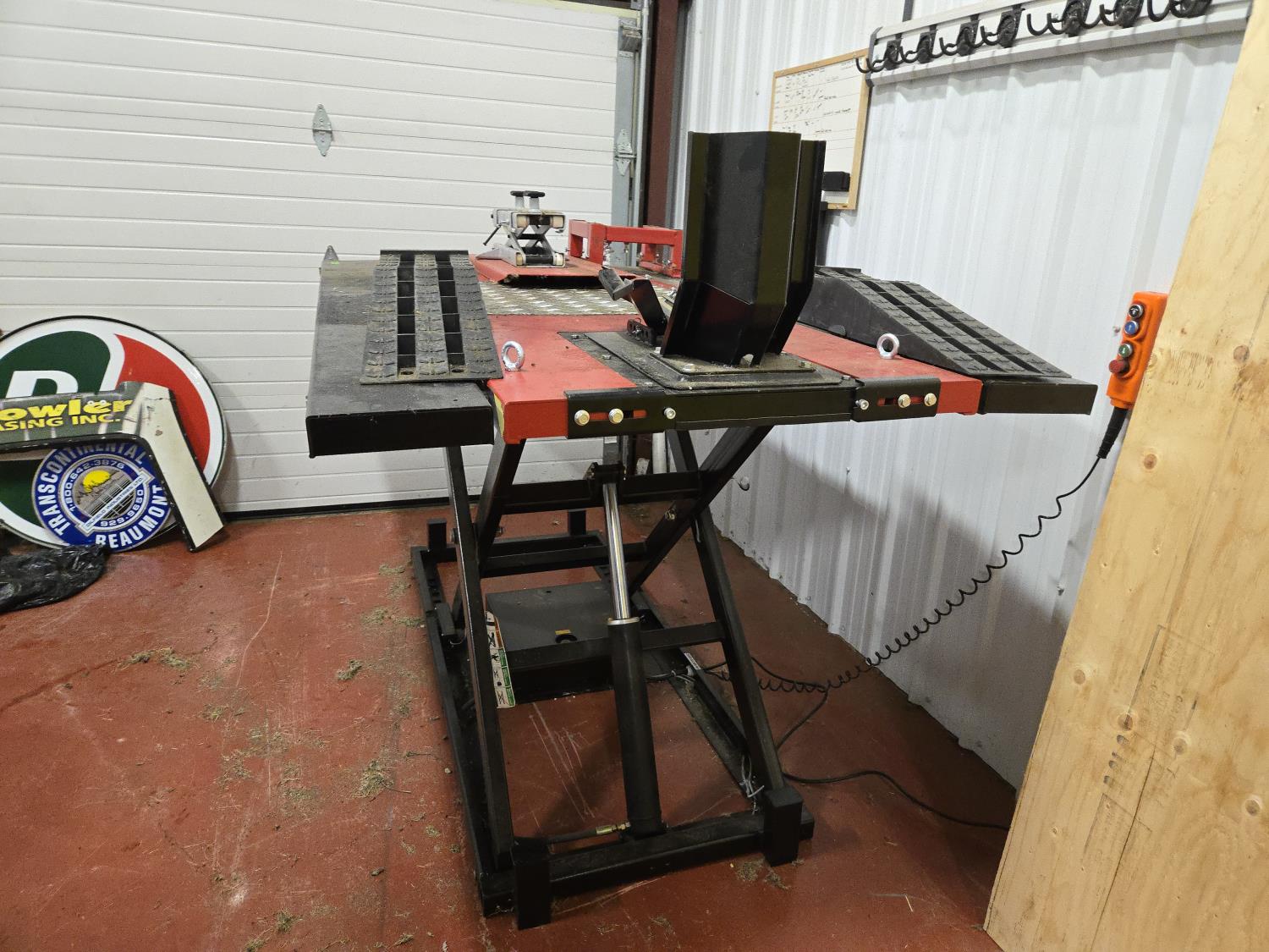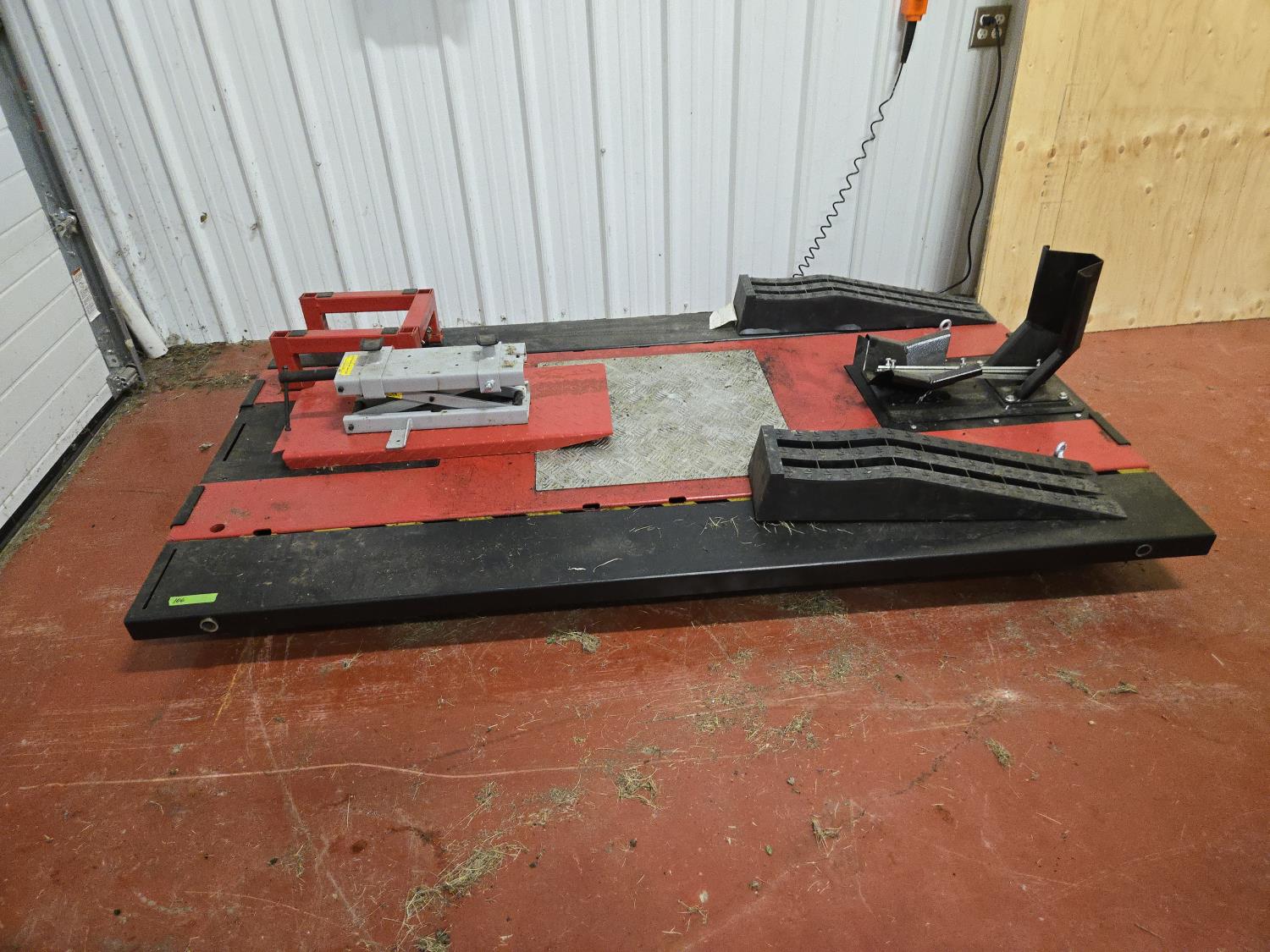 front motorcycle wheel lift, motor lift, side extensions, corded remote, 110 volt