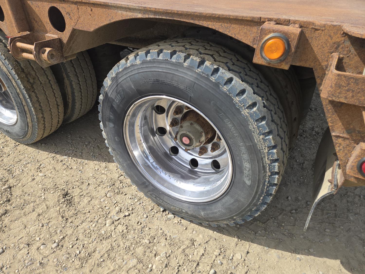 8 ft big bed neck, 9 ft wide, 41 ft main deck, cargo winches, pin pockets, center air operated live roll, rear live roll, folding landing gear, all aluminum wheels, 275/70R22.5 tires