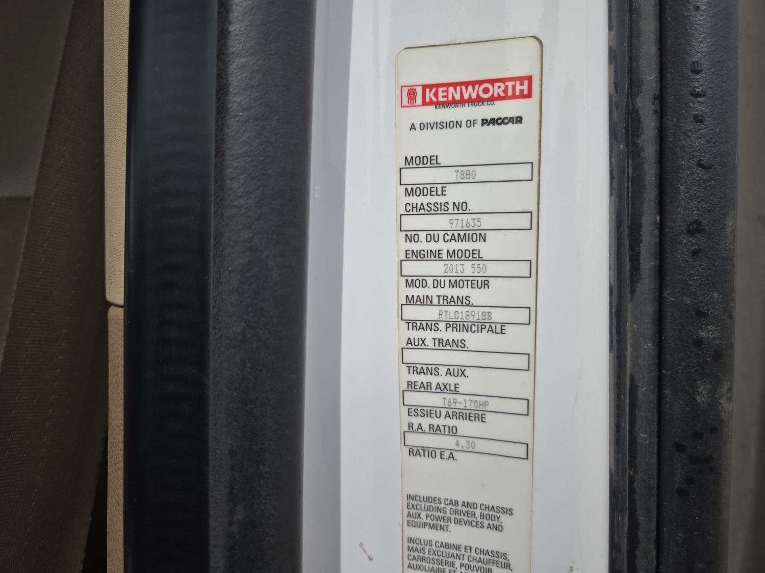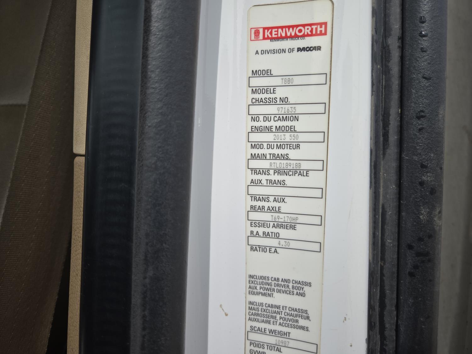 Cummins ISX15 6 cylinder 550 HP engine, engine brake, positive air shutoff, mid rise 42 inch sleeper, A/C, navigation system, P/W, P/L, beacons, chain holders, air ride suspension, 16,000 lb front axle, 69,000 lb rear axles, full lockers, 4.30 ratio, all aluminum wheels, 385/65R22.5 front tires, 11R24.5 rear tires