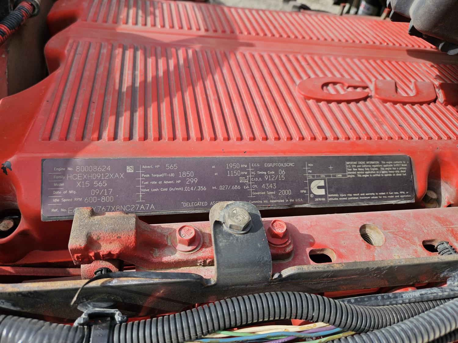 Cummins X15 15 L 565 HP engine, DEF deleted, engine brake, engine block heater, positive air shutoff, emissions deleted, Eaton Fuller 18 speed manual transmission, sleeper, fridge, A/C, cruise control, leather interior, navigation system, air ride seats, radio, 2-way radio, stereo, Webasco cab heater, hydraulic wet kit, tool boxes, air ride cab, chain holders, heated tool boxes, hydraulic oil cooler, hydraulic pump, air ride suspension, 16,000 lb front axle, 55,000 lb rear axles, full lockers, all aluminum wheels, 385/65R22.5 front tires, 11R24.5 rear tires