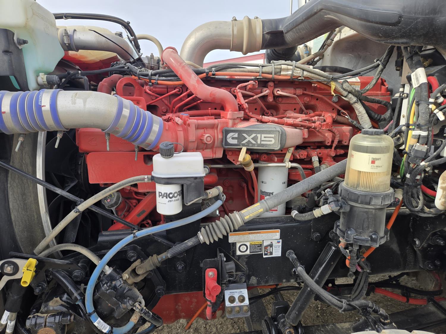 Cummins CX15 6 cylinder 565 HP engine, positive air shutoff, 18 speed manual transmission, P/W, P/L,, mid rise 48 inch sleeper, A/C, leather interior, air ride seats, hydraulic wet kit, beacons, heated tool boxes, air ride suspension, 16,000 lb front axle, 60,000 lb rear axles, full lockers, all aluminum wheels, 385/65R22.5 front tires, 11R24.5 rear tires