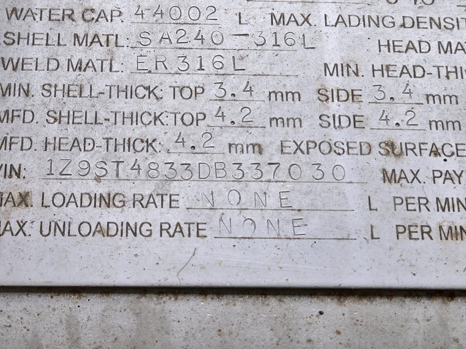 169 2013 Independent Truck Tank 44000 Liter Stainless Steel TRI/A Tanker Trailer