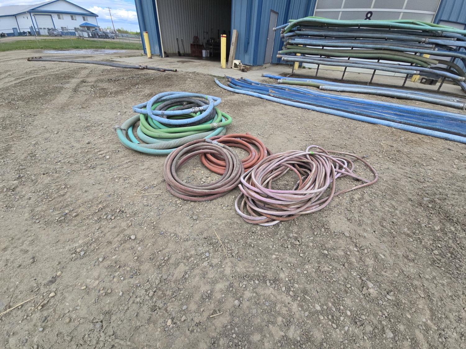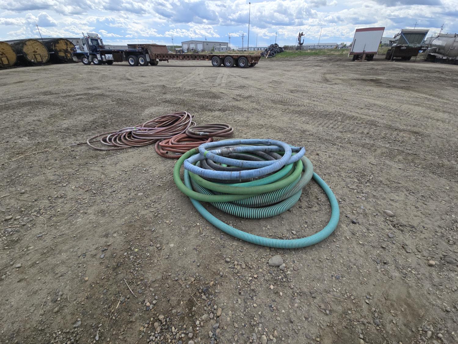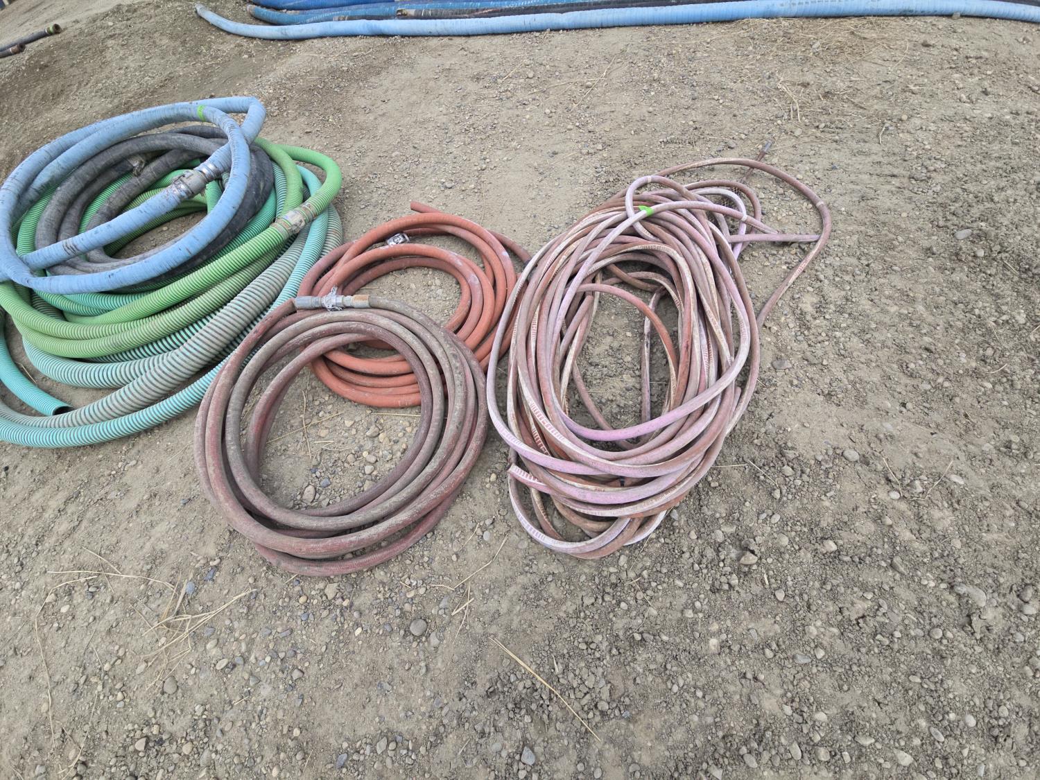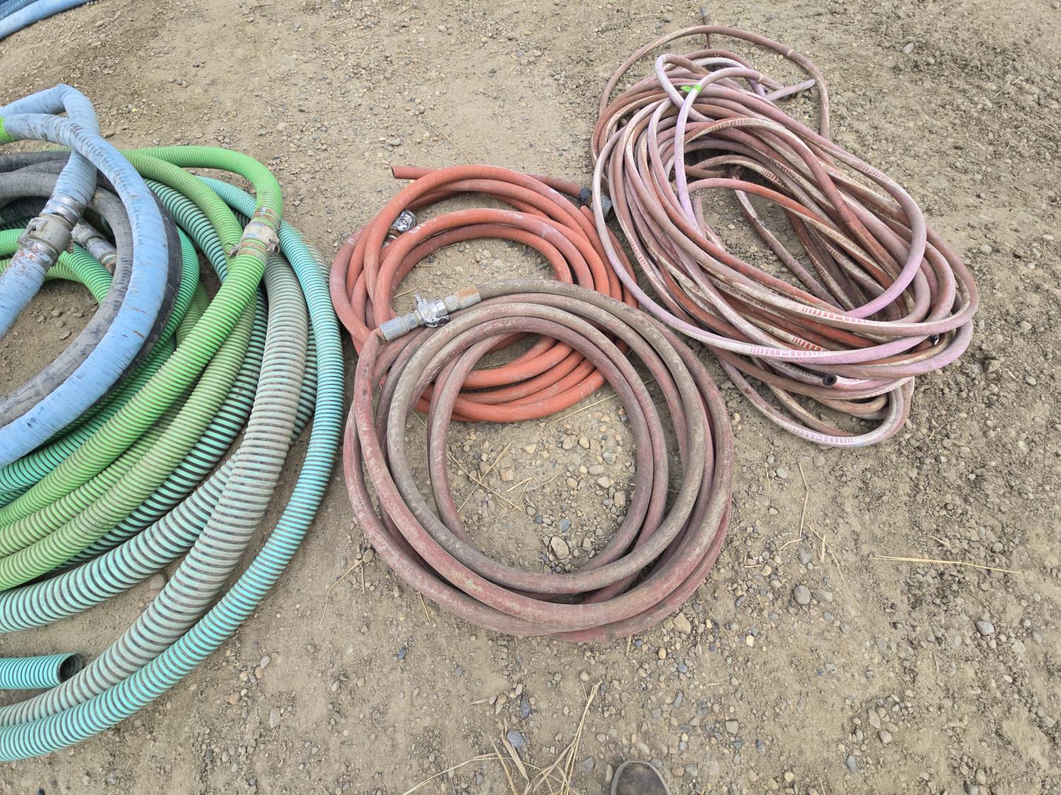 qty of G572 steam hose, (2) 1 inch rubber hoses, qty of 2 inch and 3 inch low and high pressure hoses