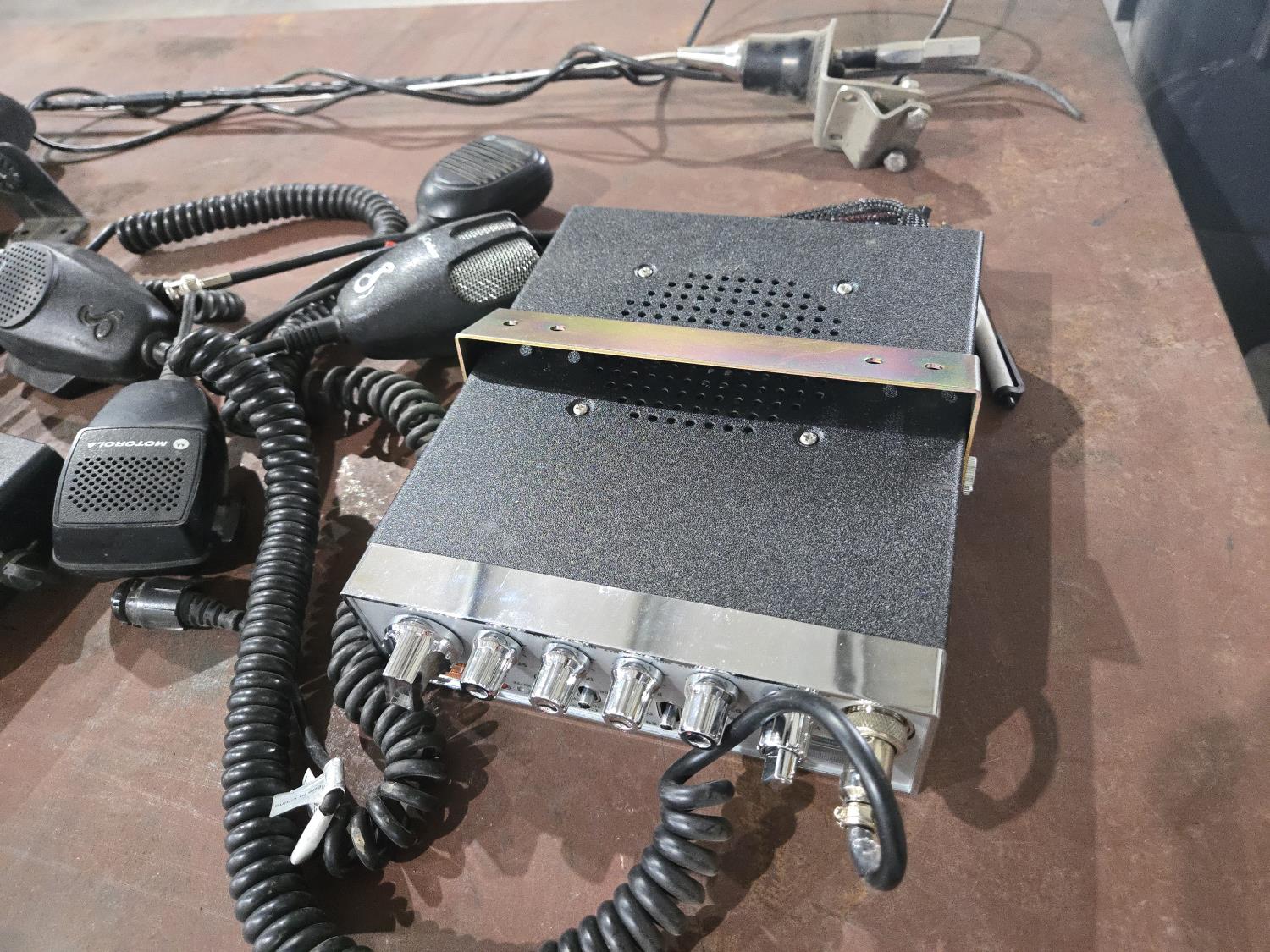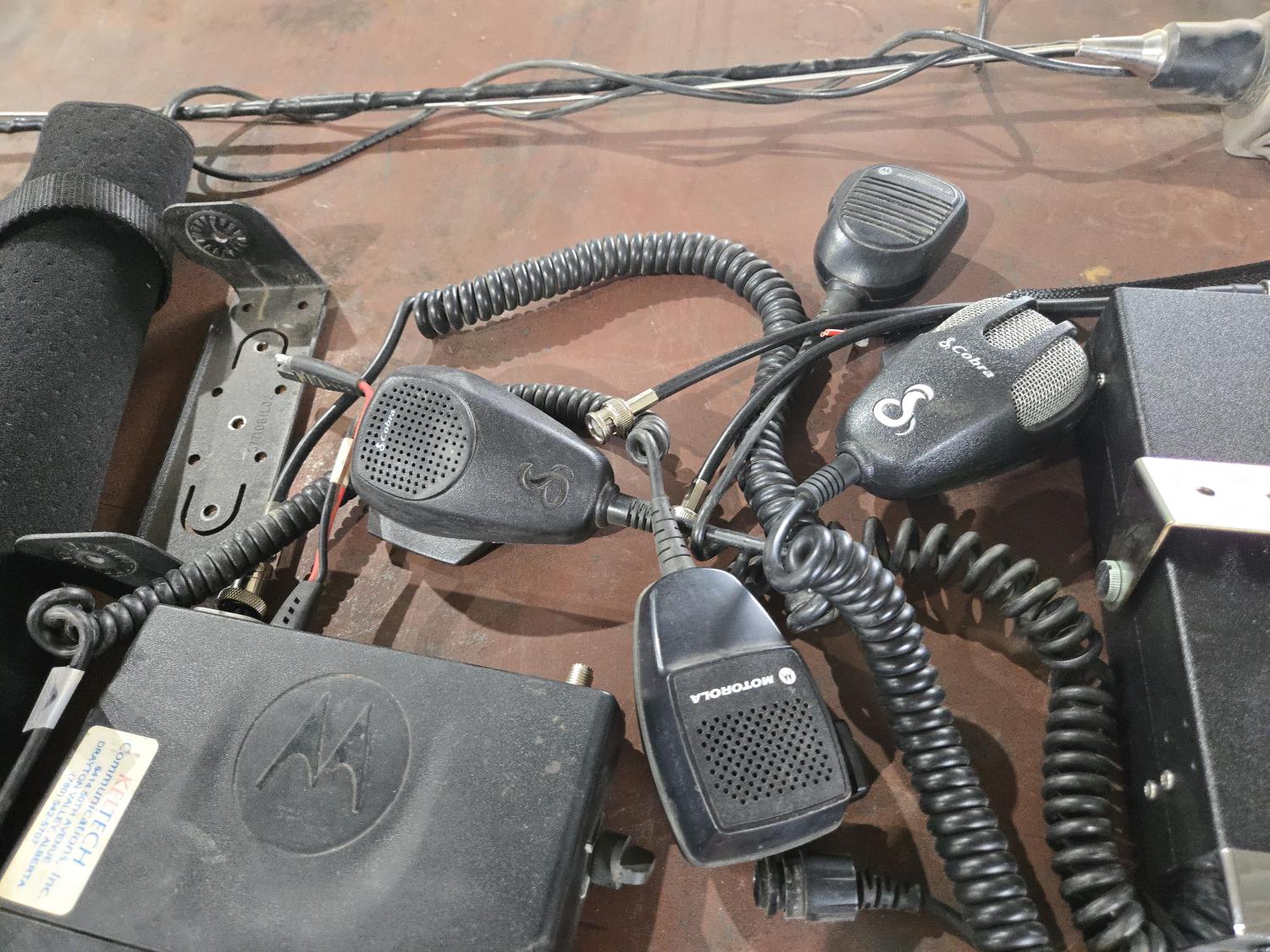 (2) Antenna's, (2) CB's, (1) Motorloa 2 way radio, (3) mics, (1) speaker