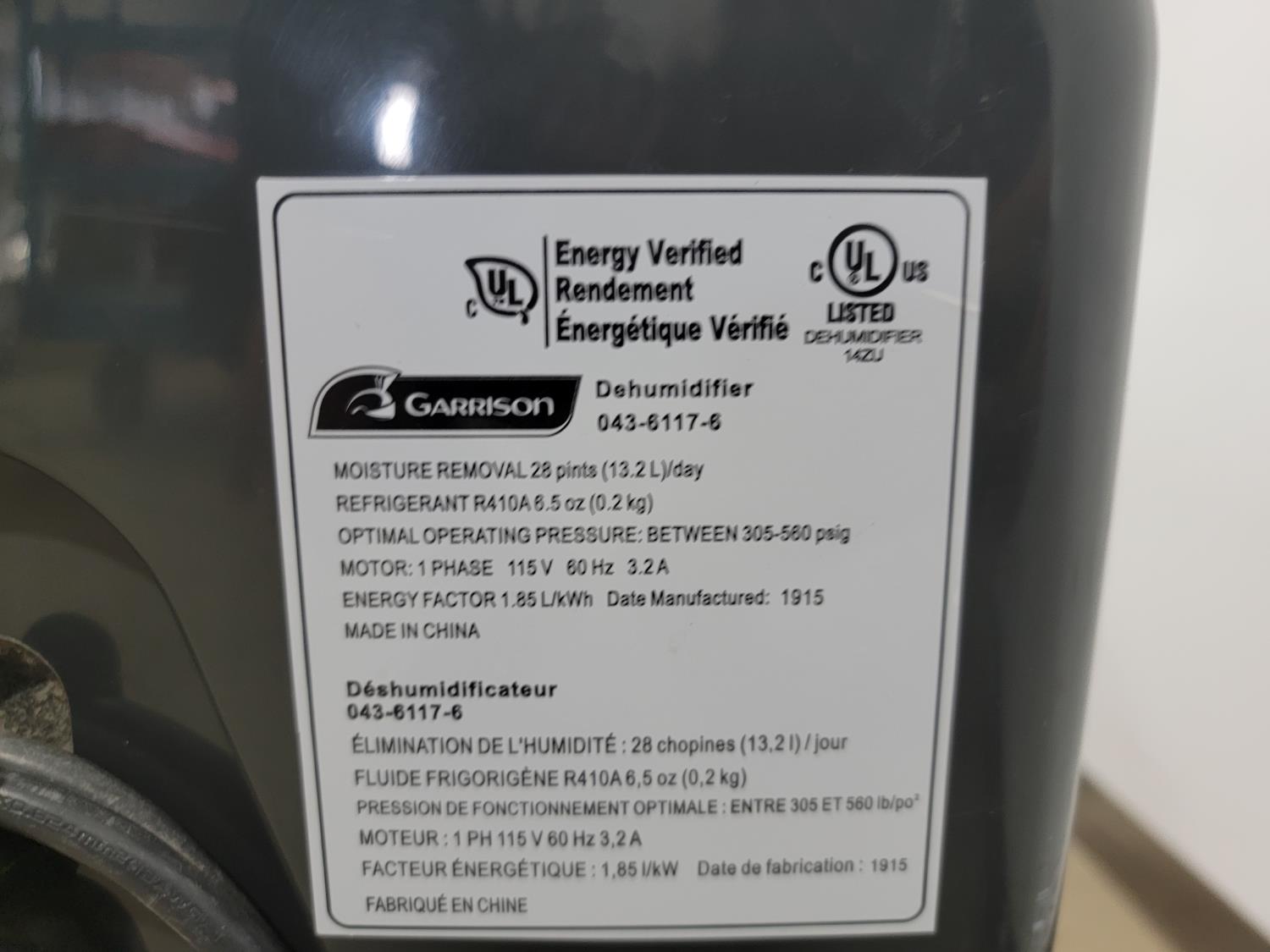 Garrison removes 28 pints/day, Midea removes 50 pints/day