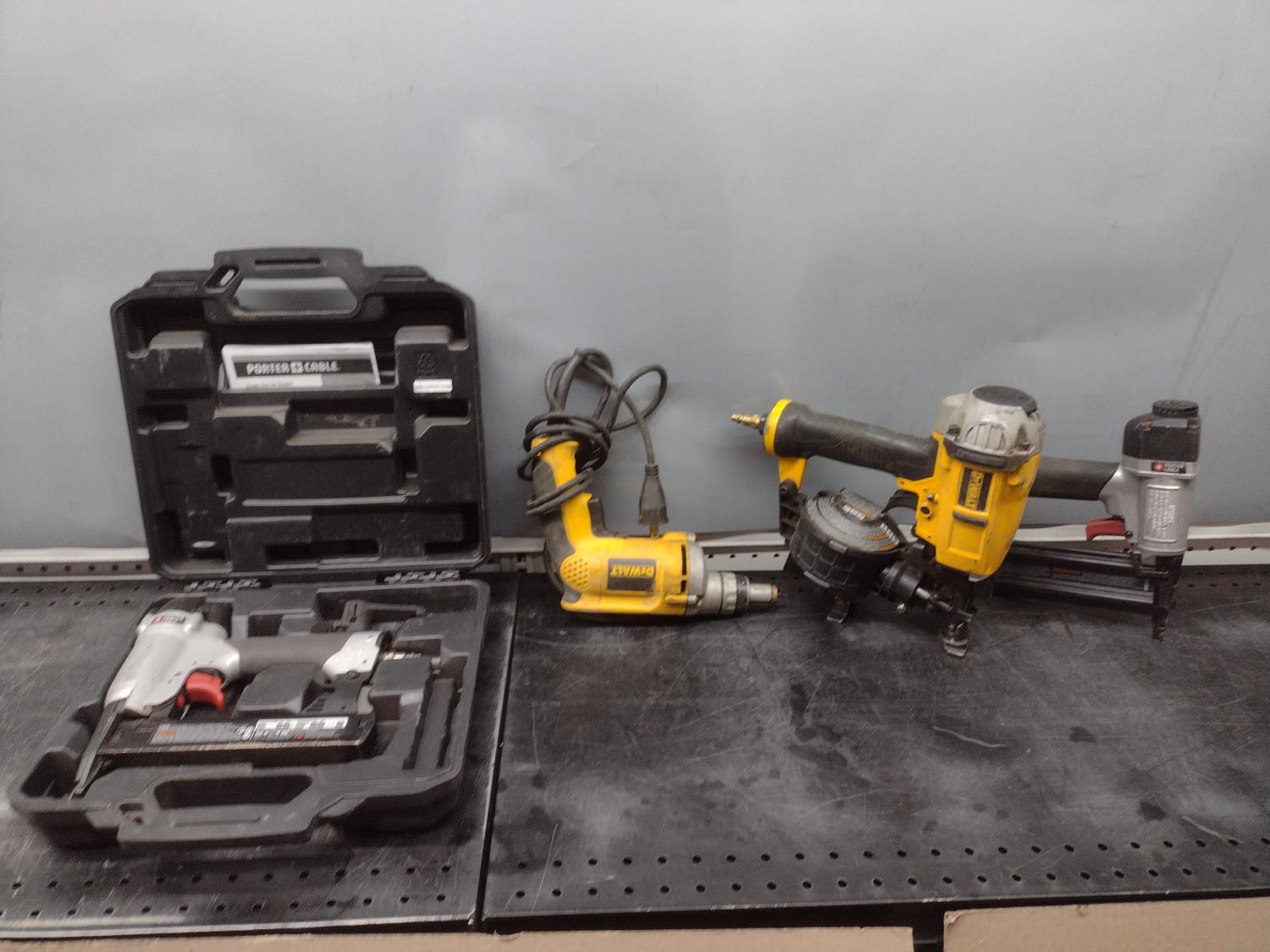 1061 (3) Air Operated Construction Tools & (1) Corded Dewalt Drywall Screwdriver