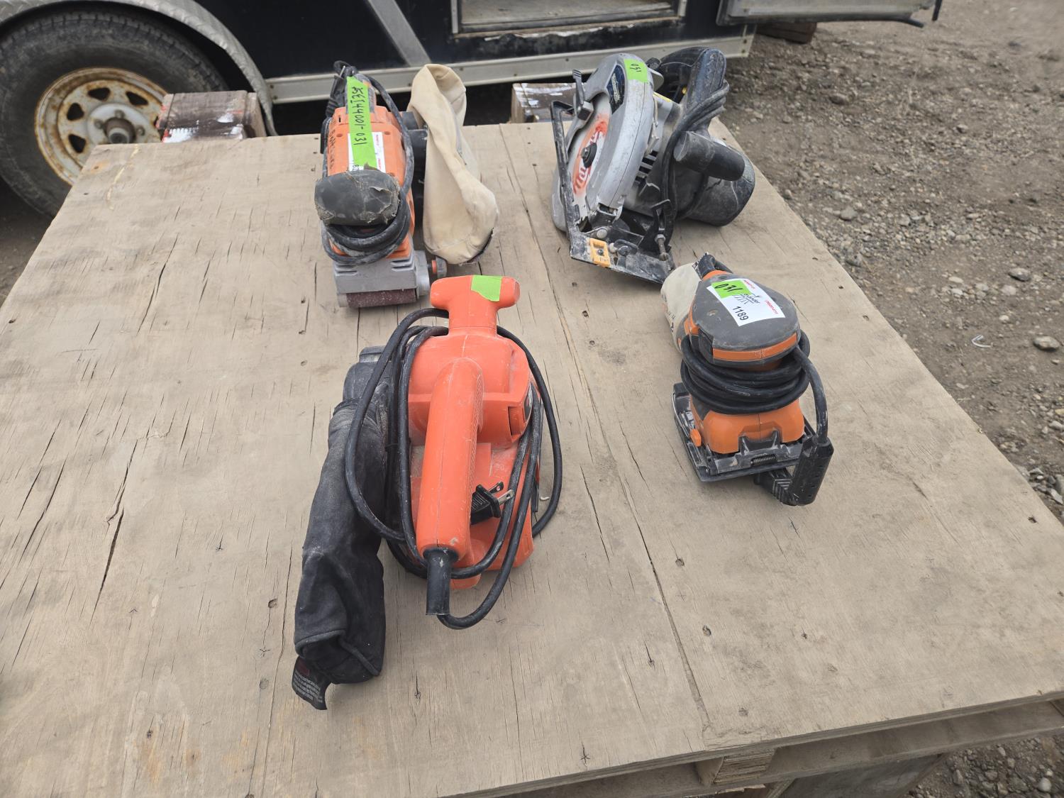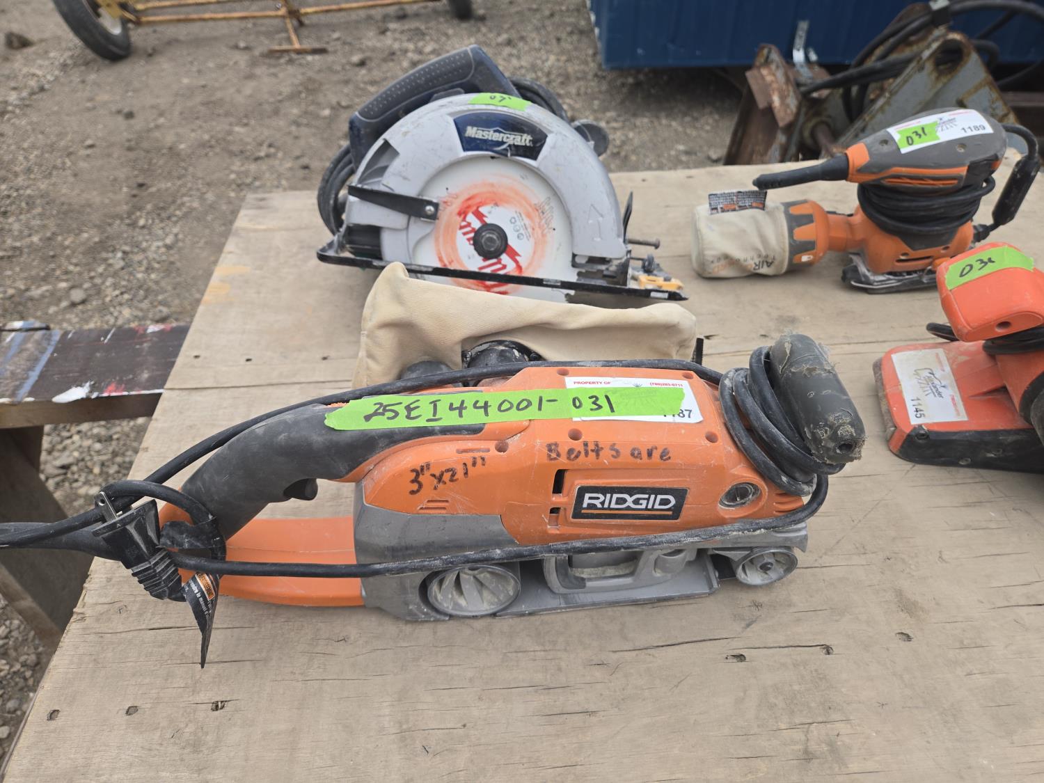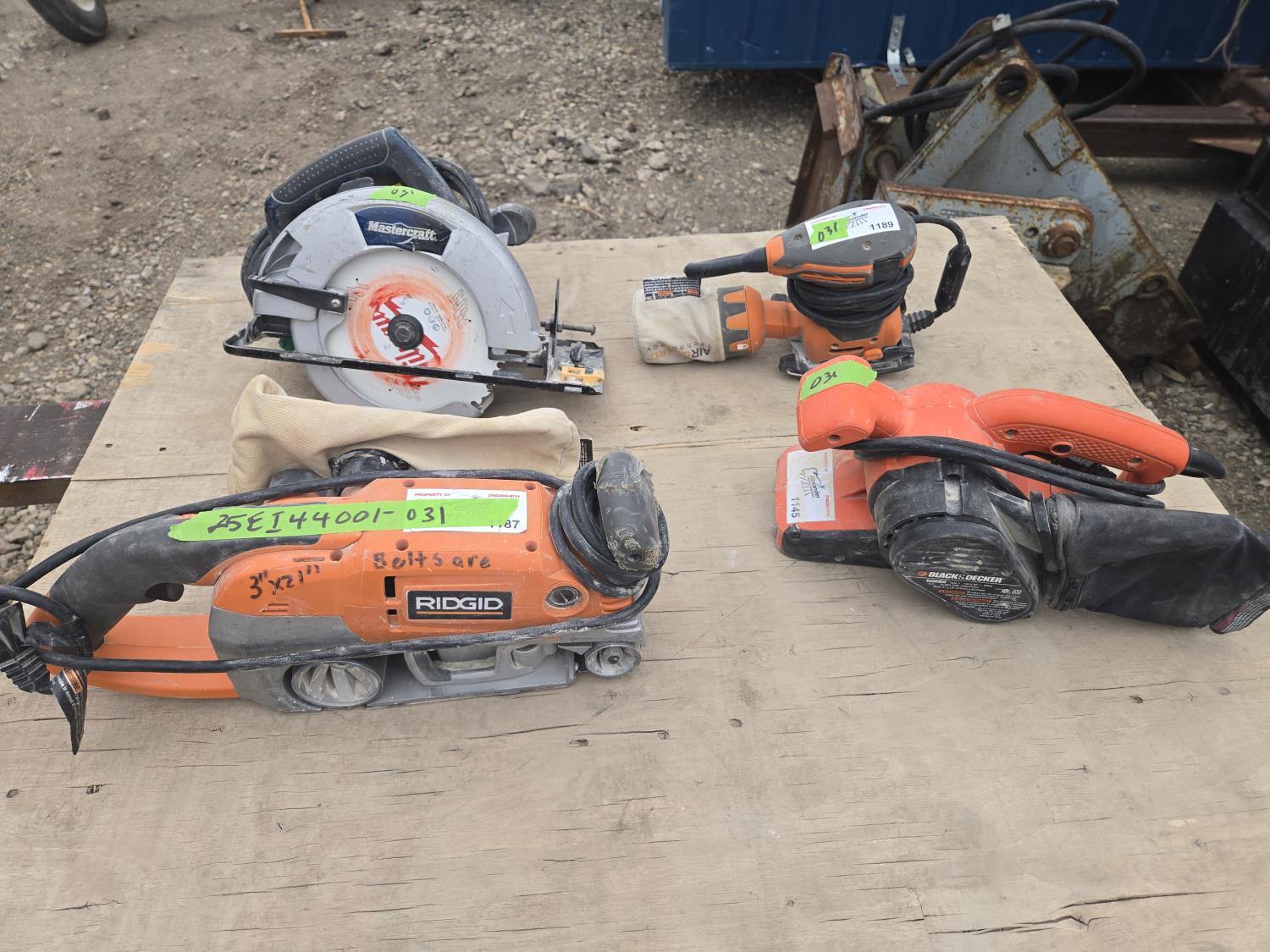 B&D belt sander, Ridgid belt sander, Mastercraft circular saw, Ridgid palm sander