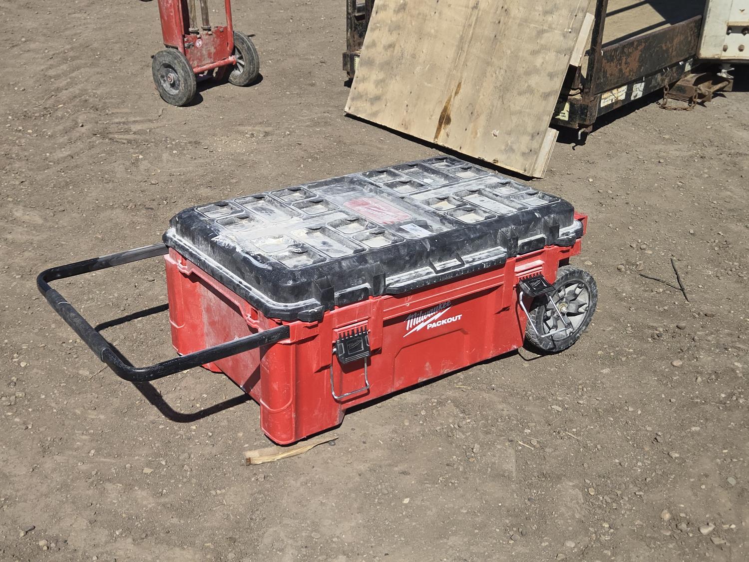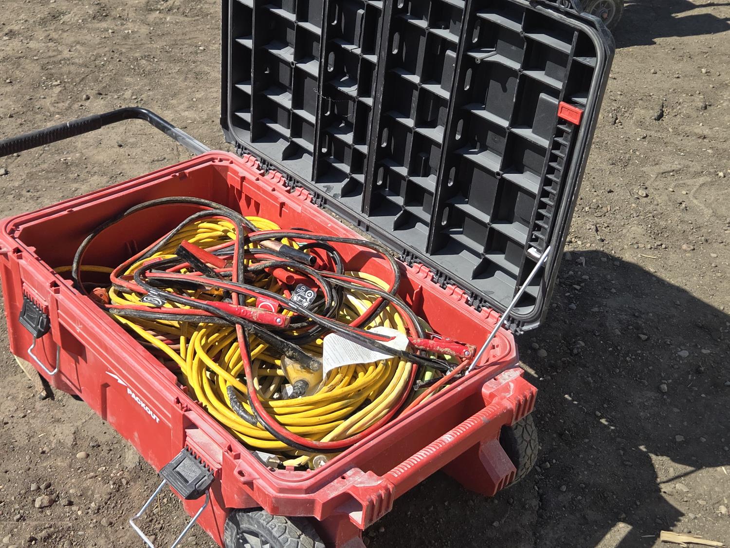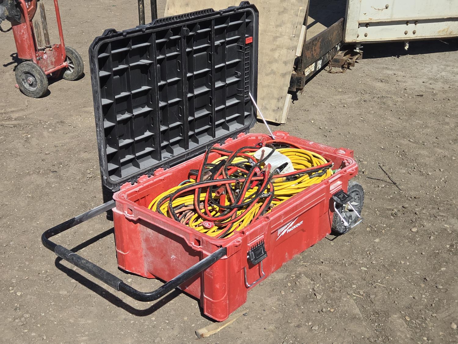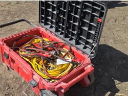 2079 Milwaukee Poly Tote with Electrical Cords, Air Hose & Booster Cables