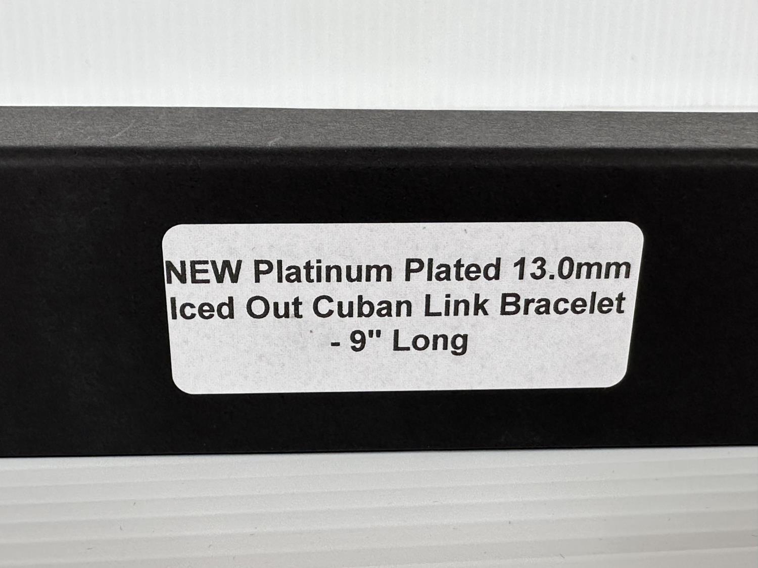 1615 Smartlife Platinum Plated 13.0 mm Iced Out Cuban Link Bracelet (Unused)