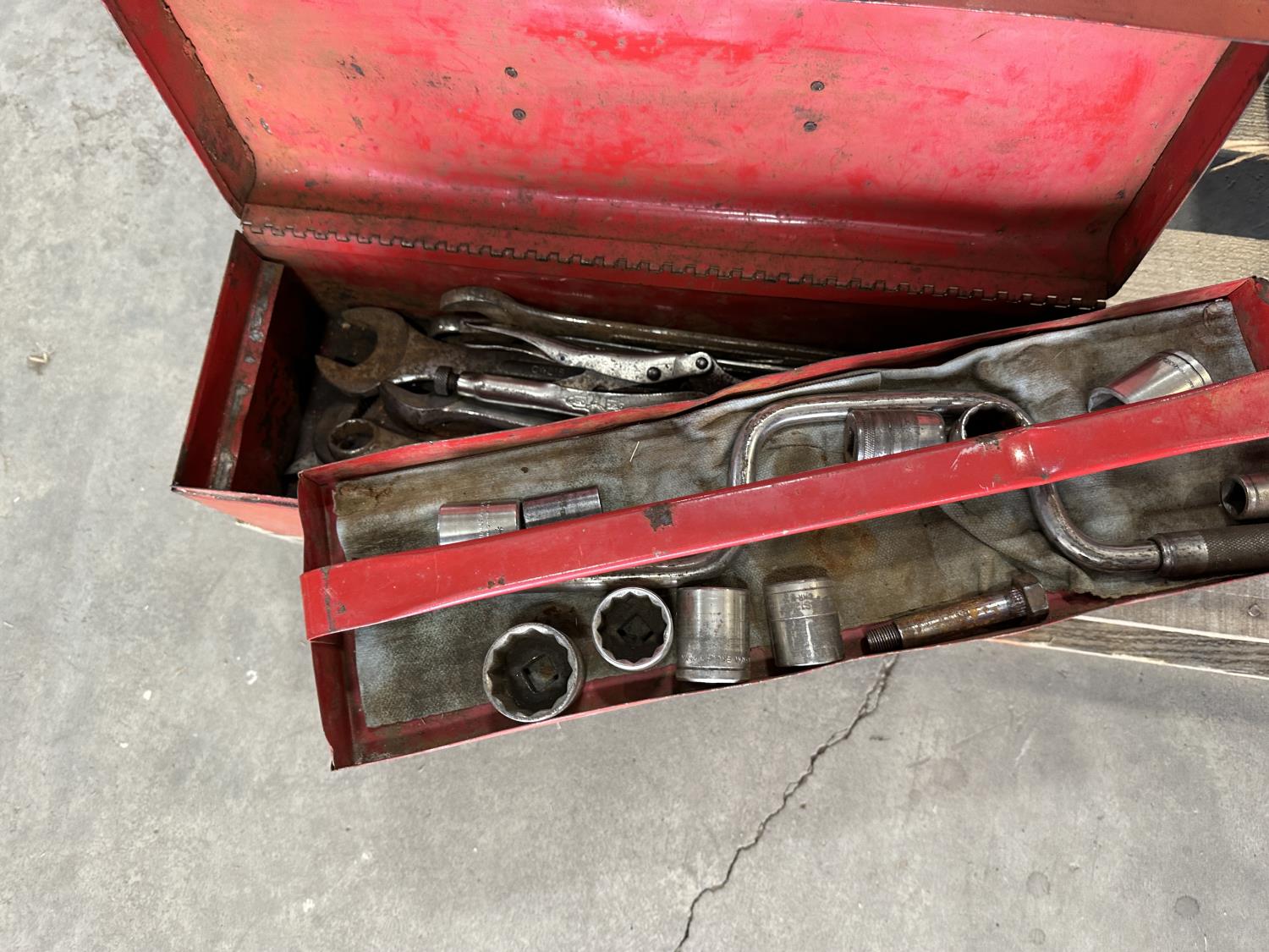 Sockets, funnels, strap winch, pliers, screwdrivers, heat gun, grease gun