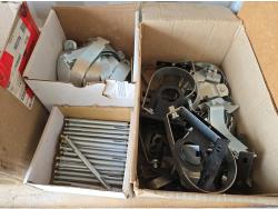 Pipe hangers, (48) tubes of vinyl floor caulk, sander pads, qty of Butyl, door closer, miscellaneous