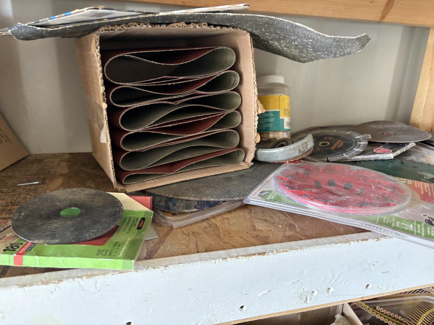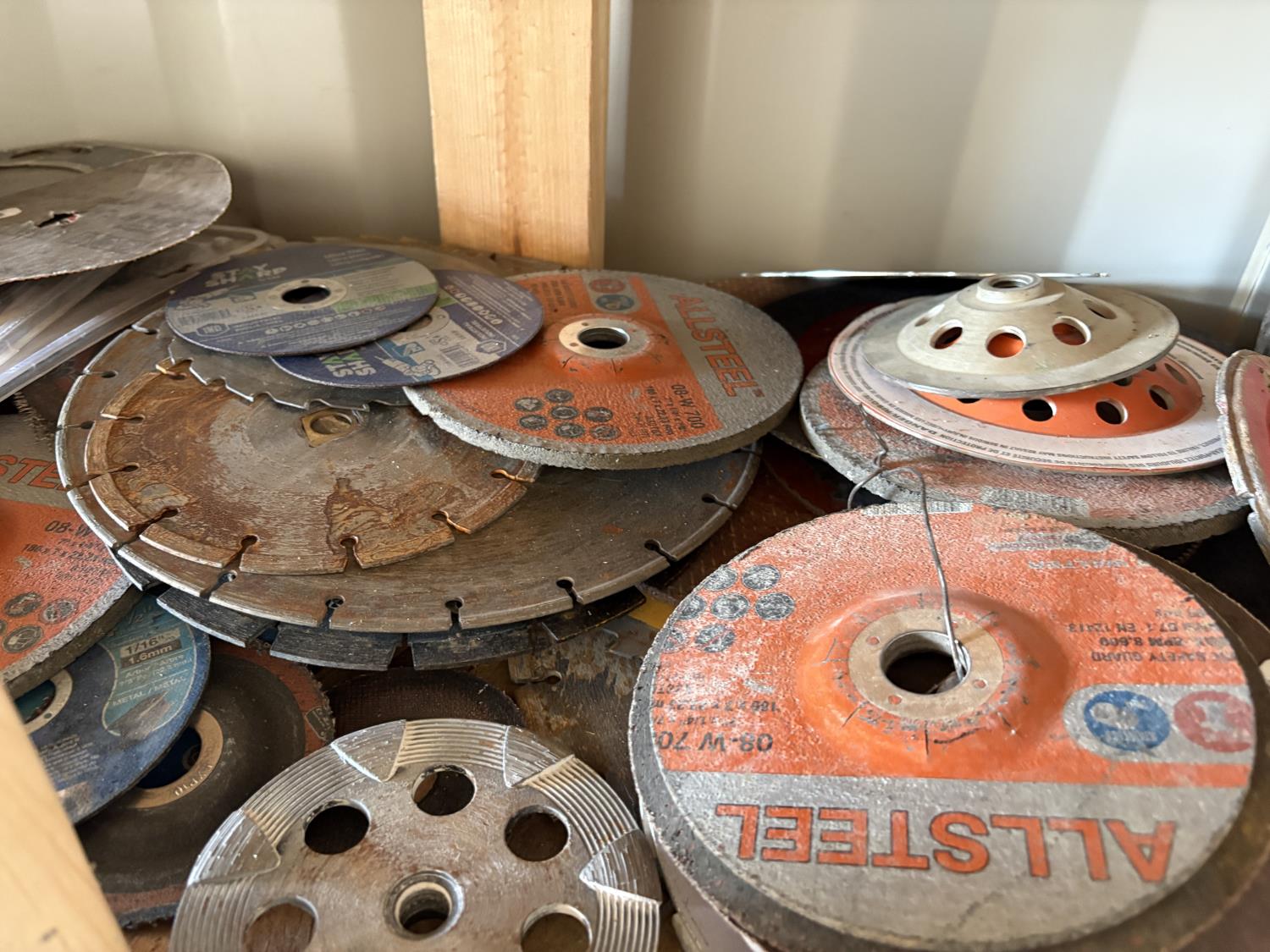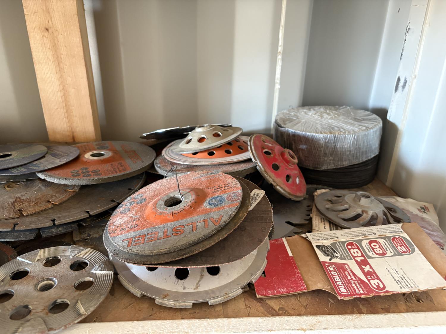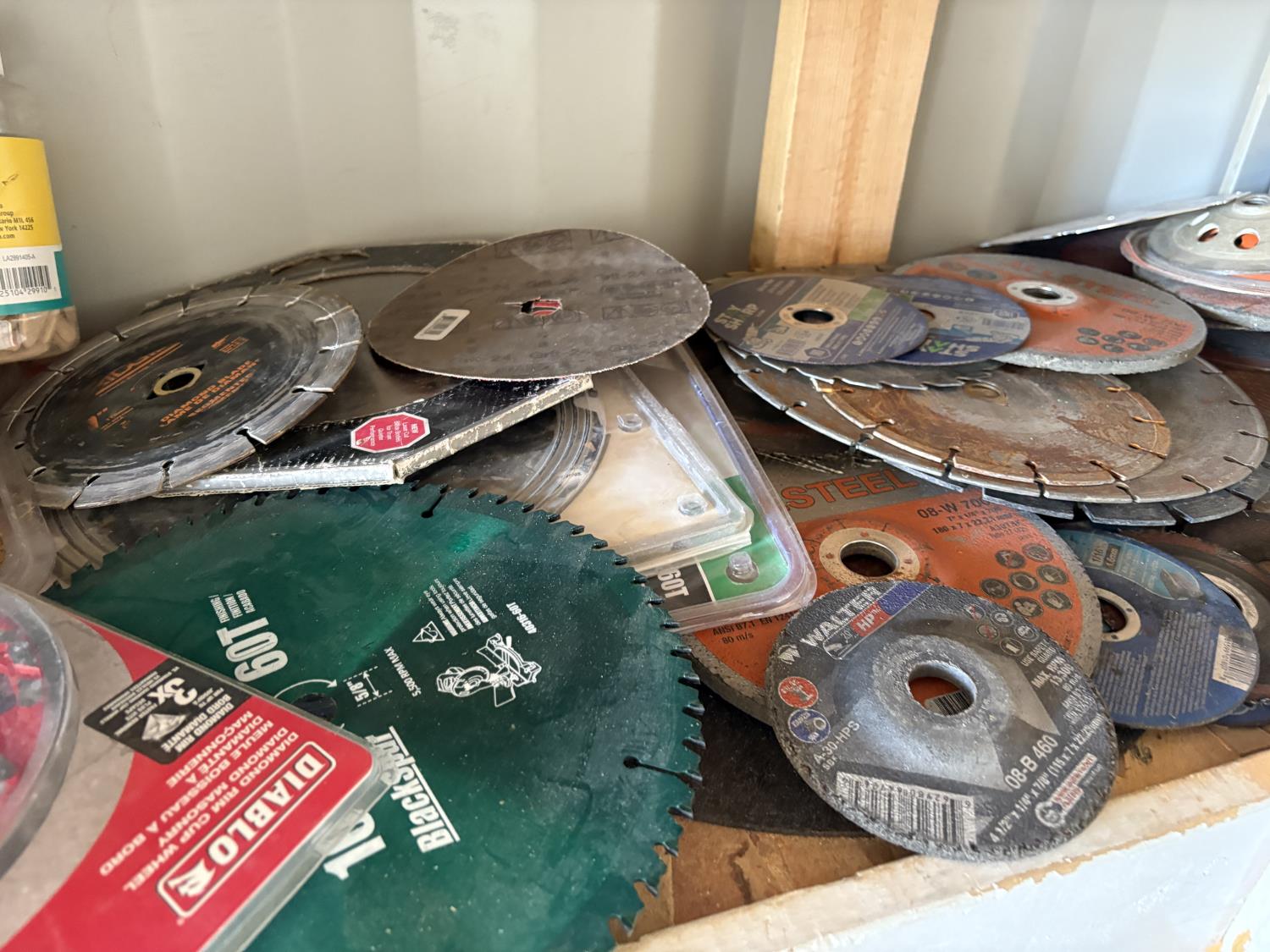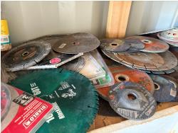 1928 Qty of Chop Saw Blades, Grinder Wheels, Table Saw Blades