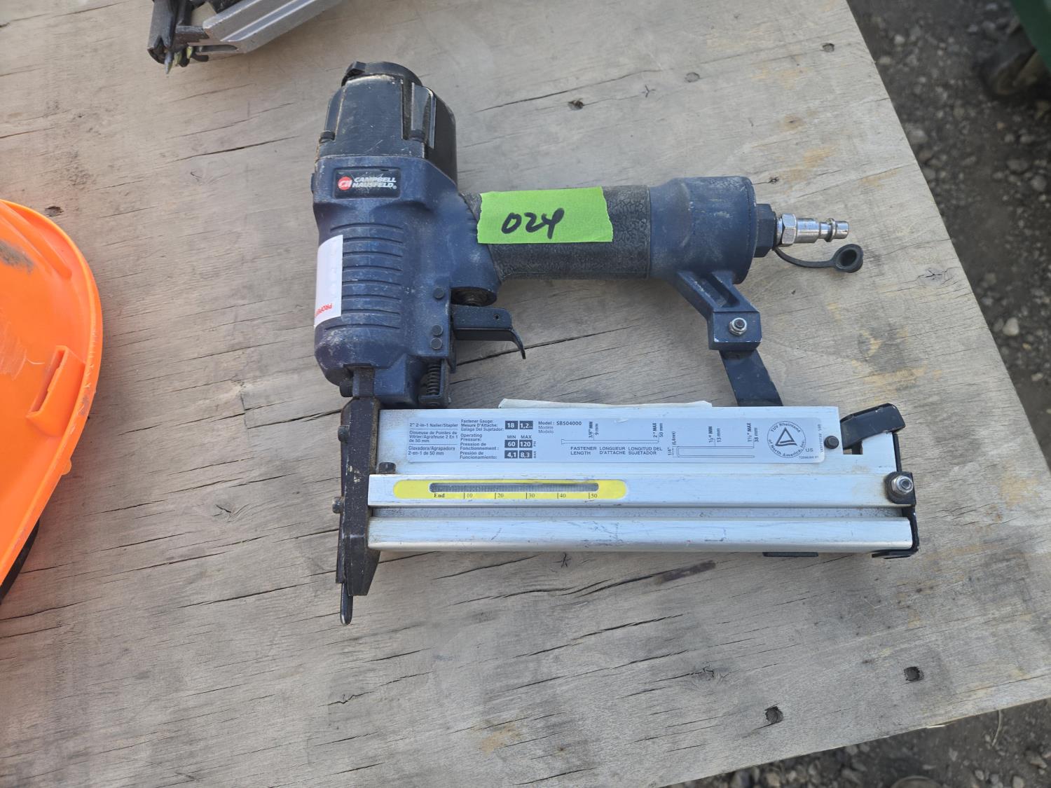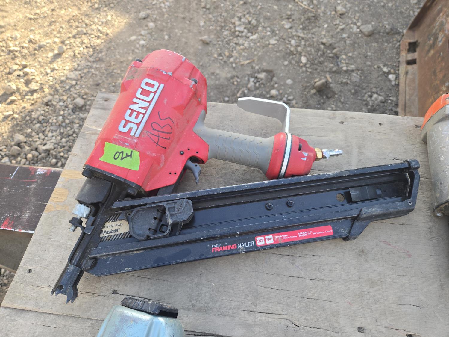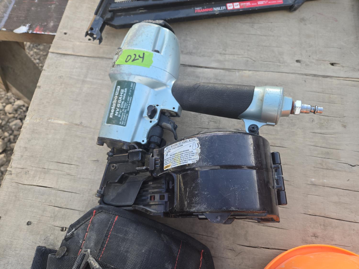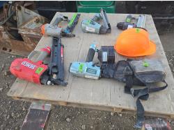 Metabo coil nailer, Senco framing nailer, Paslode stapler, small stapler, Knee pads, helmet, Hitachi 1-1/2 inch nailer