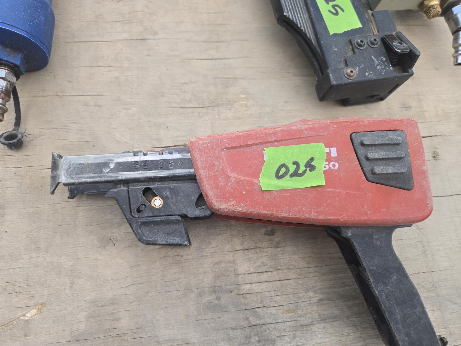 Metabo framing nailer, Milwaukee 8 inch 18V cordless metal saw, Milwaukee hole saw kit, knee pads, (2) brad nailers, Hilti SMD50 screw retainer