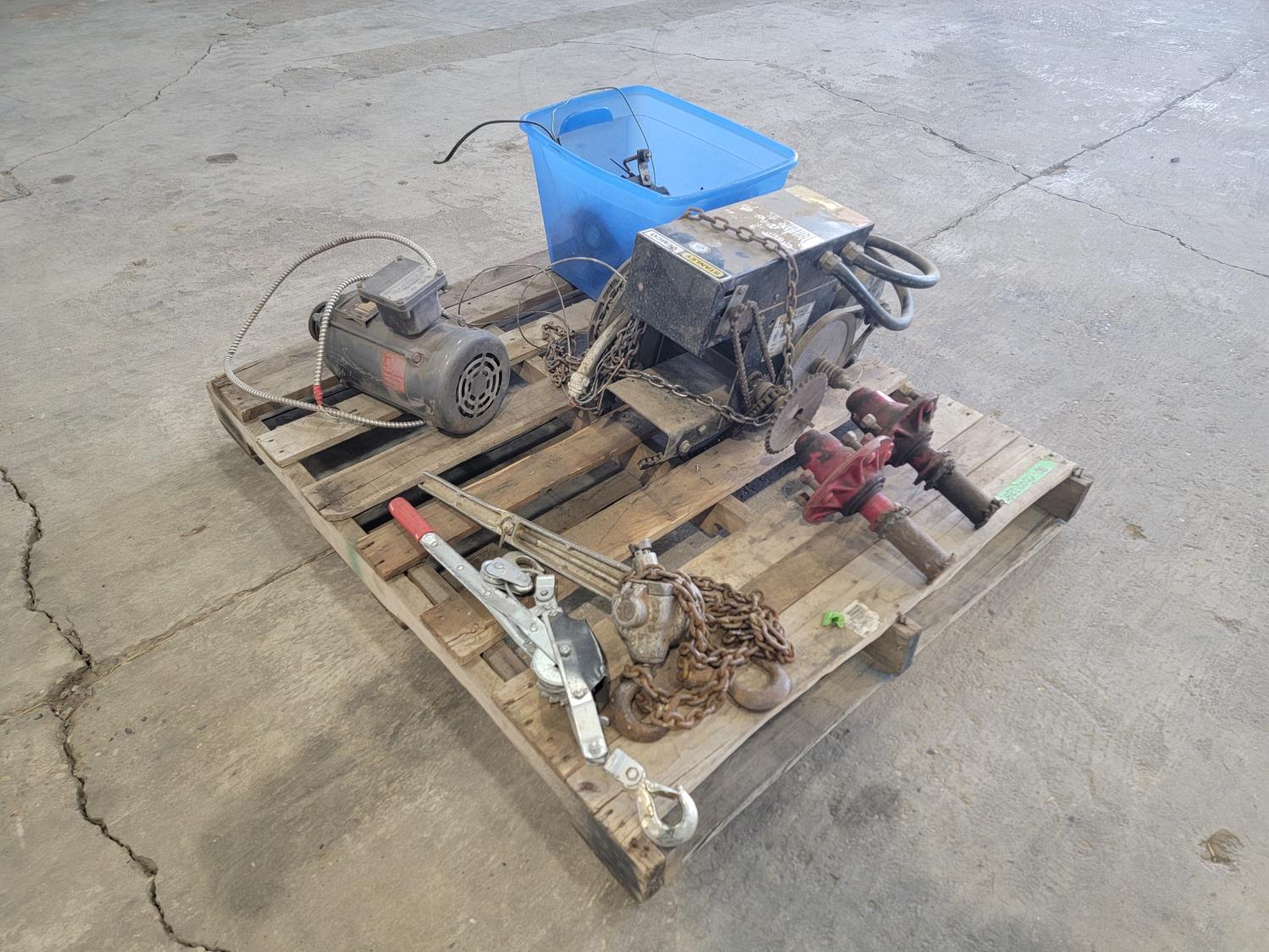 (2) tractor front wheel hubs, 3/4 HP electric motor, Stanley Vemco 230V 3 phase commercial vehicular door operator