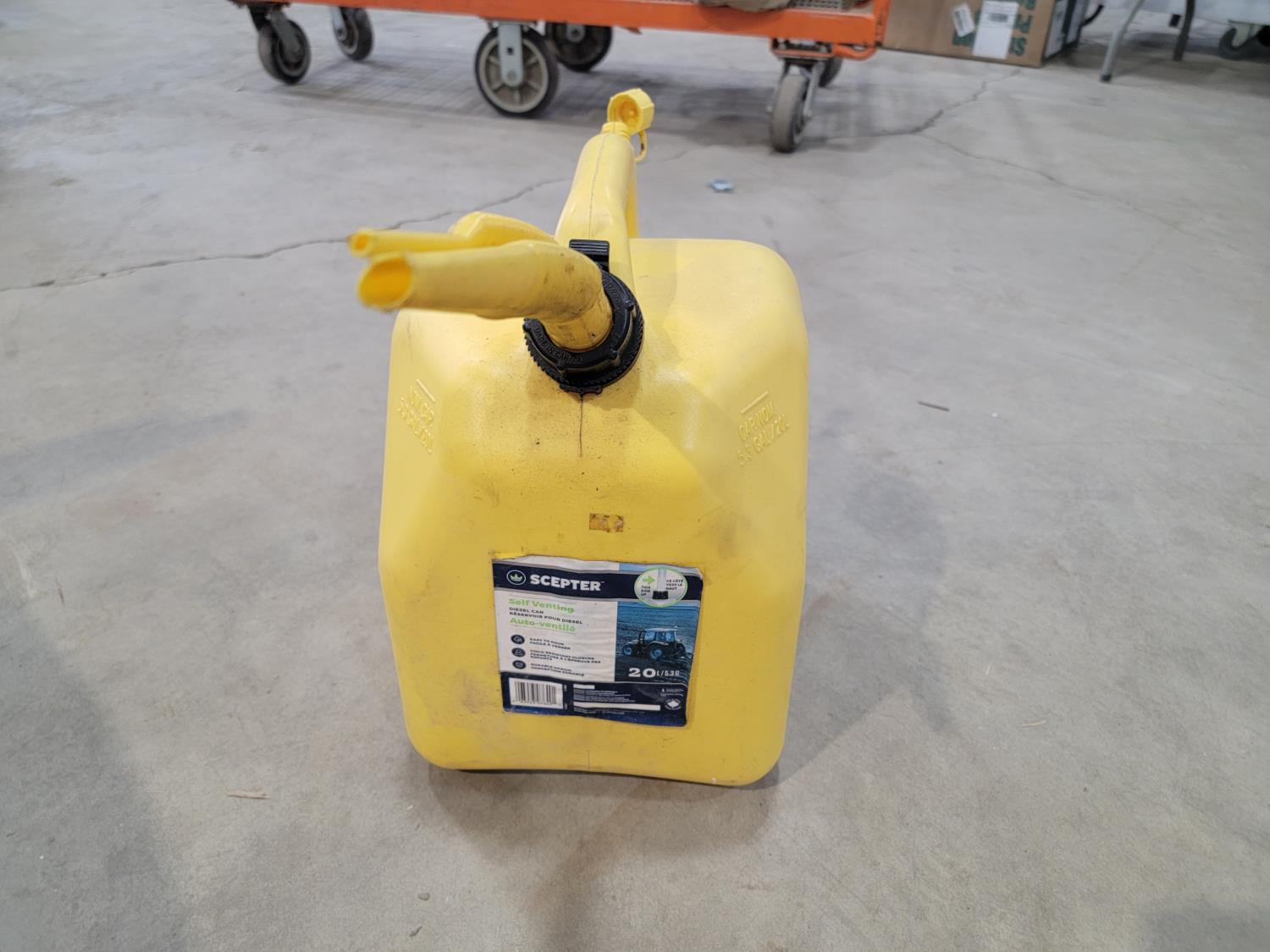 Propane burner base, weigh scale, diesel jerry can, (4) poly totes, (4) cutting boards