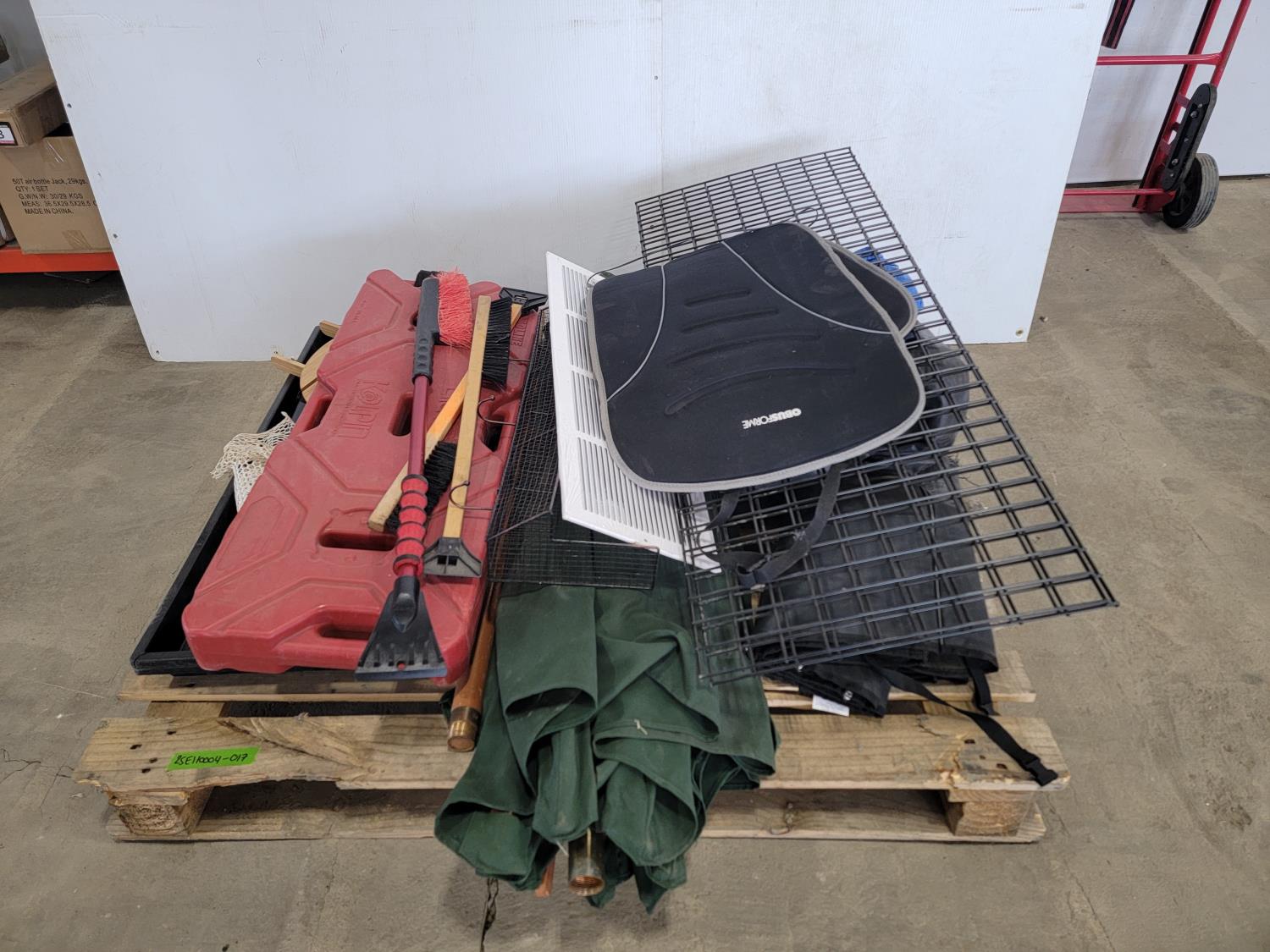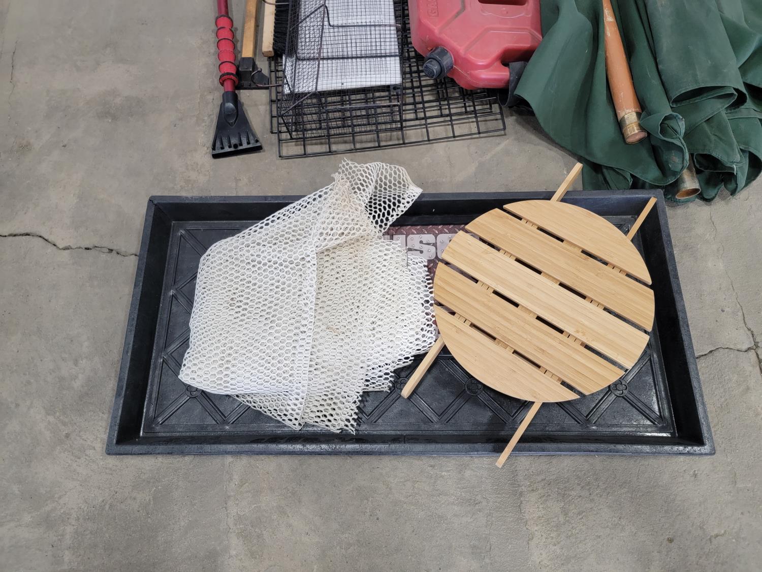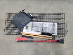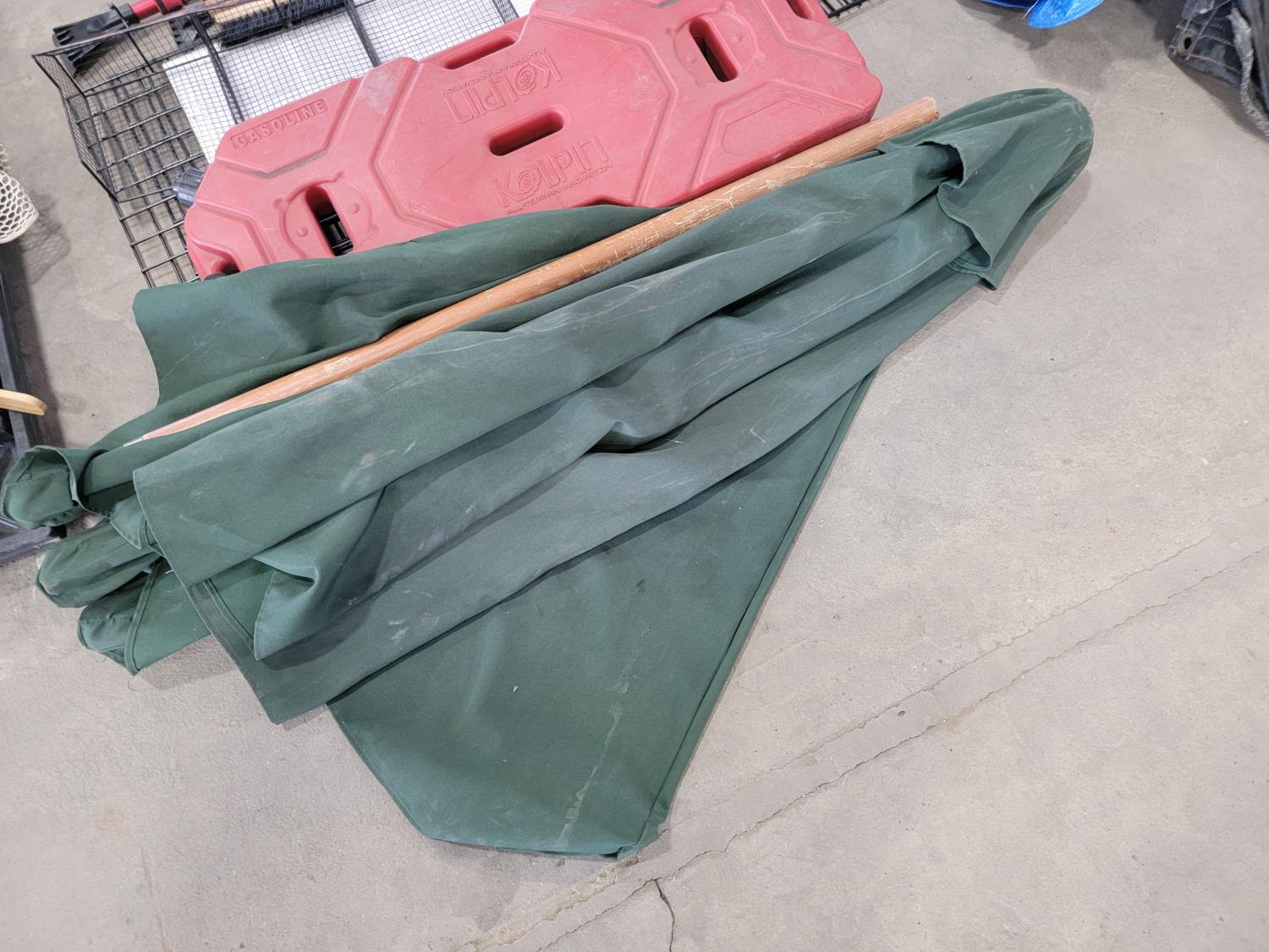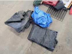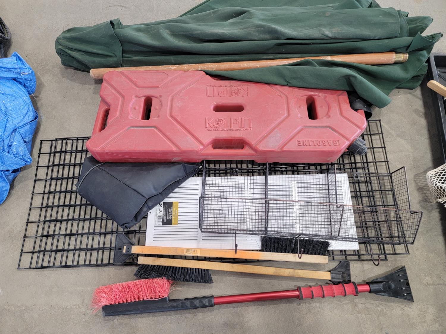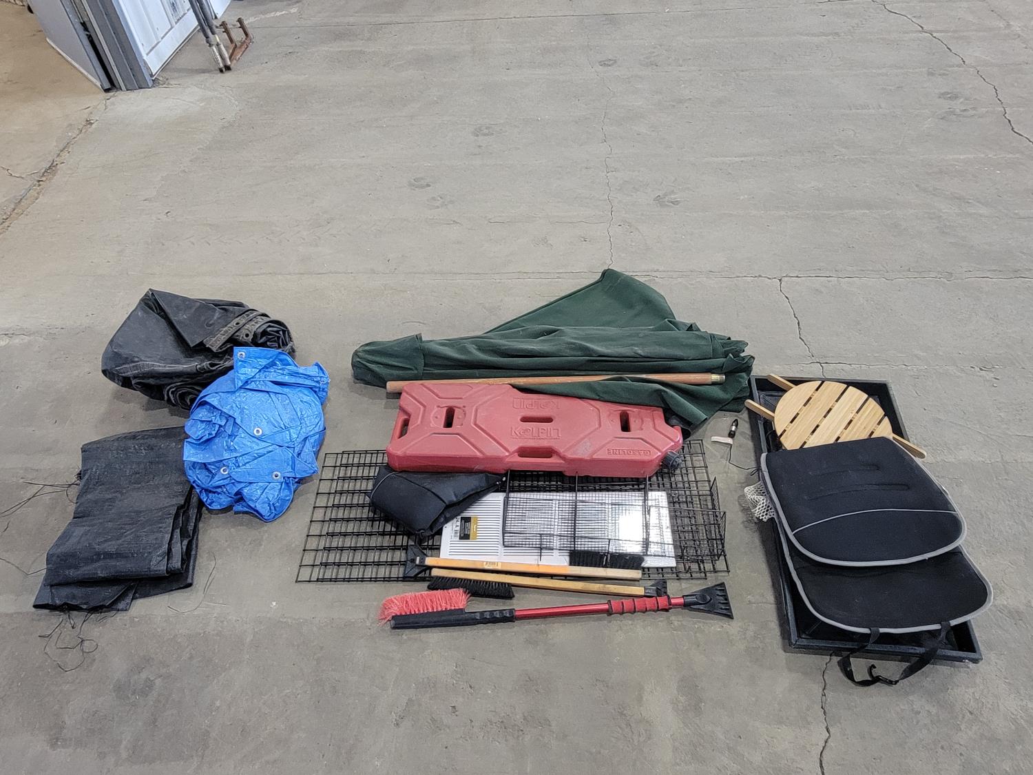 Tarps, Kolpin ATV fuel pack, patio umbrella, snowbrushes