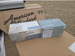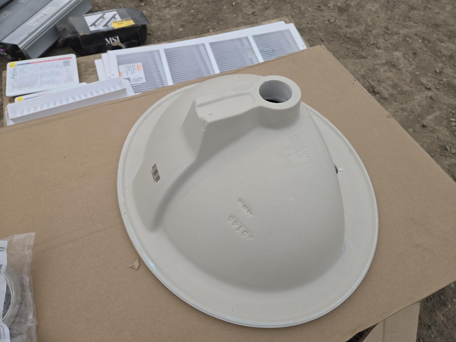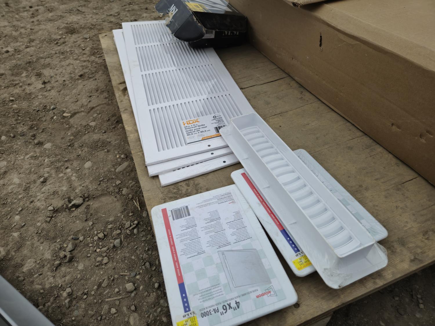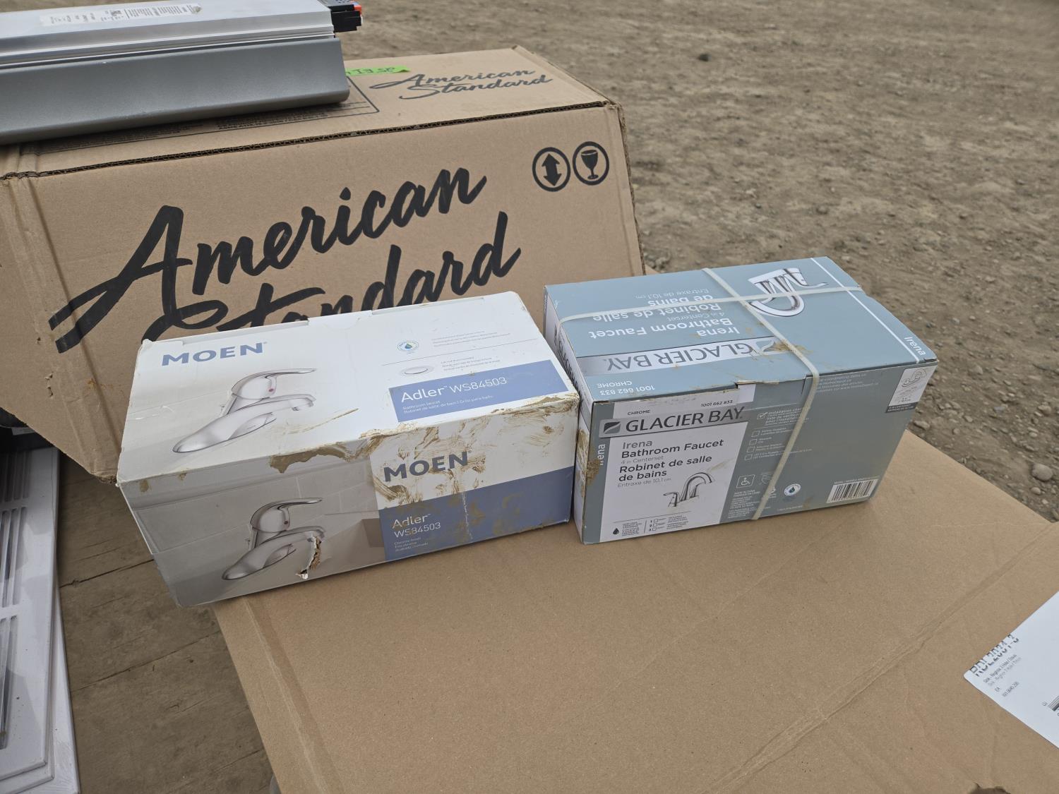 Stainless steel sink, bathroom sink, qty of cabinet pulls, qty of registers, (2) bathroom faucets, (4) PDU units