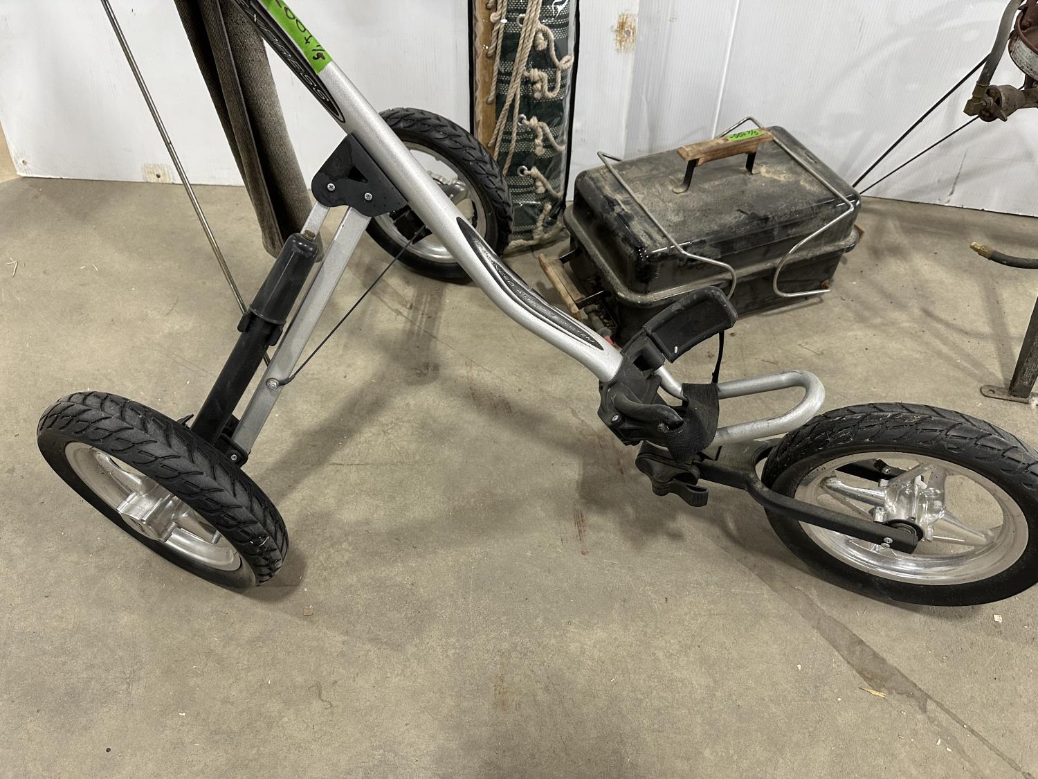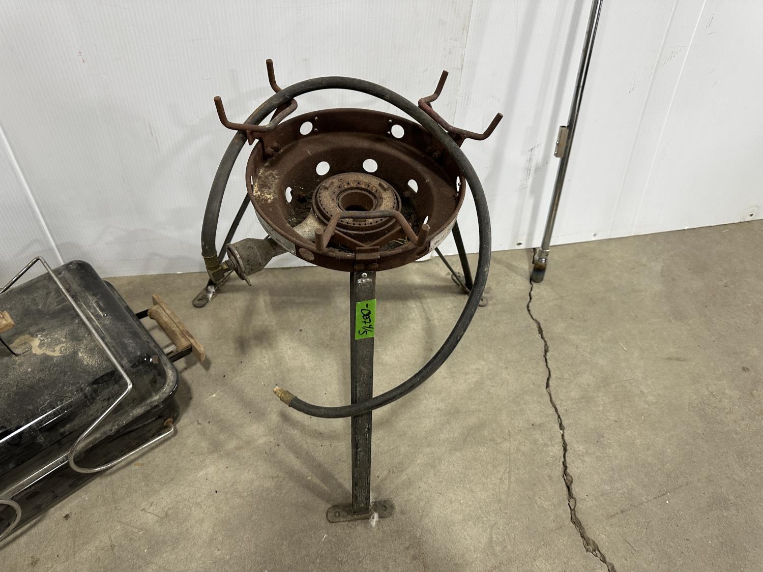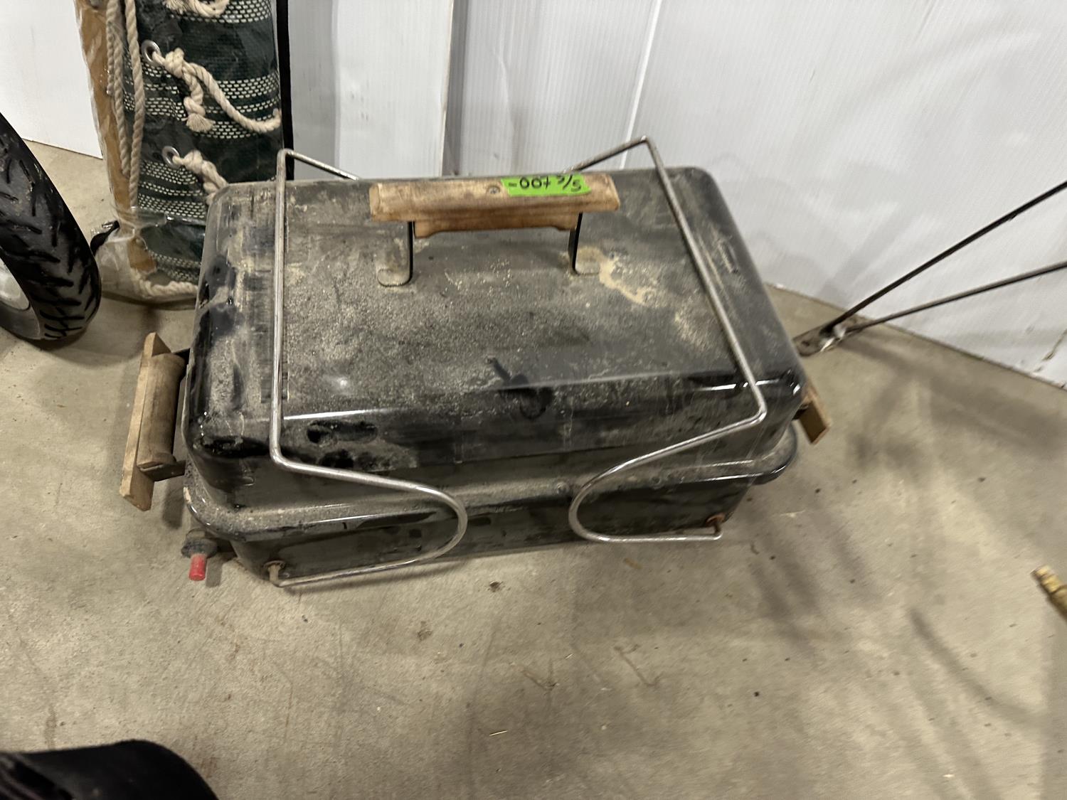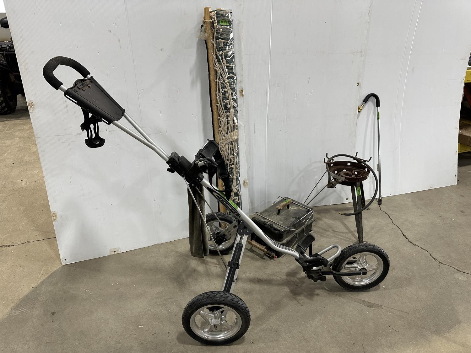 Tabletop BBQ, propane burner, torch, golf caddy cart, hammock