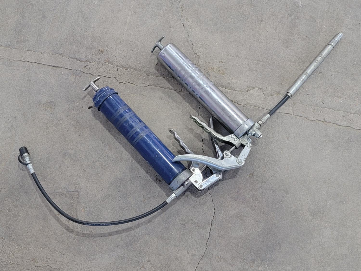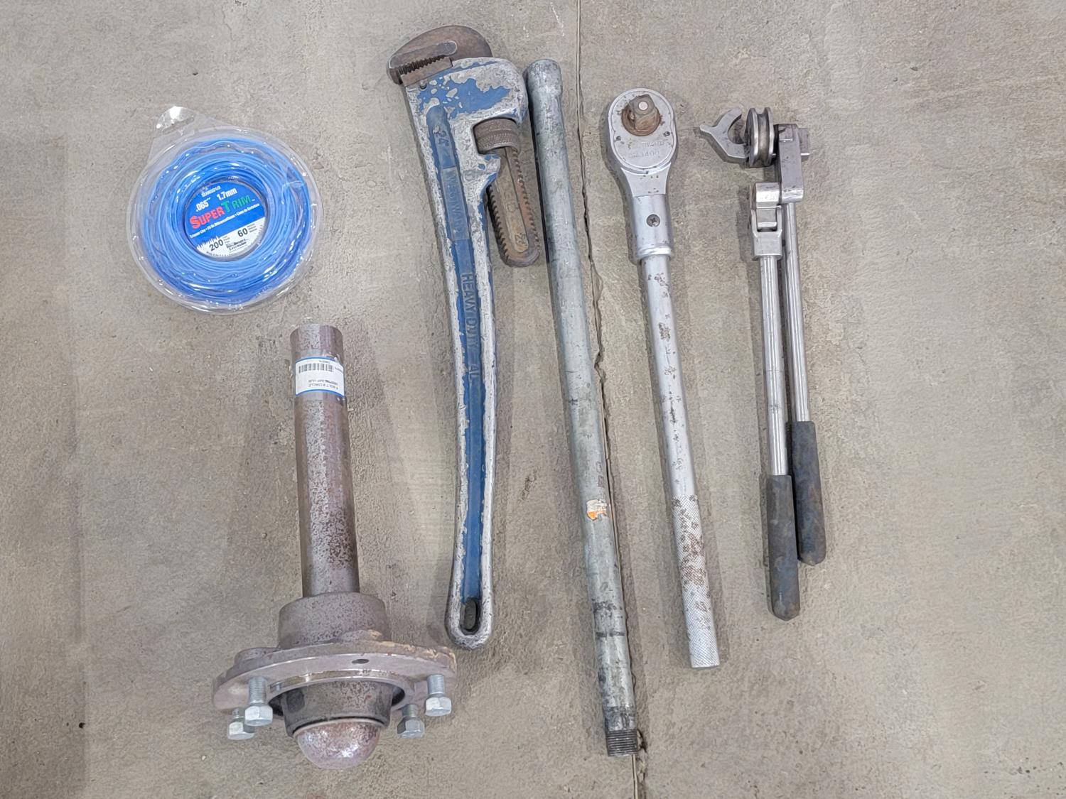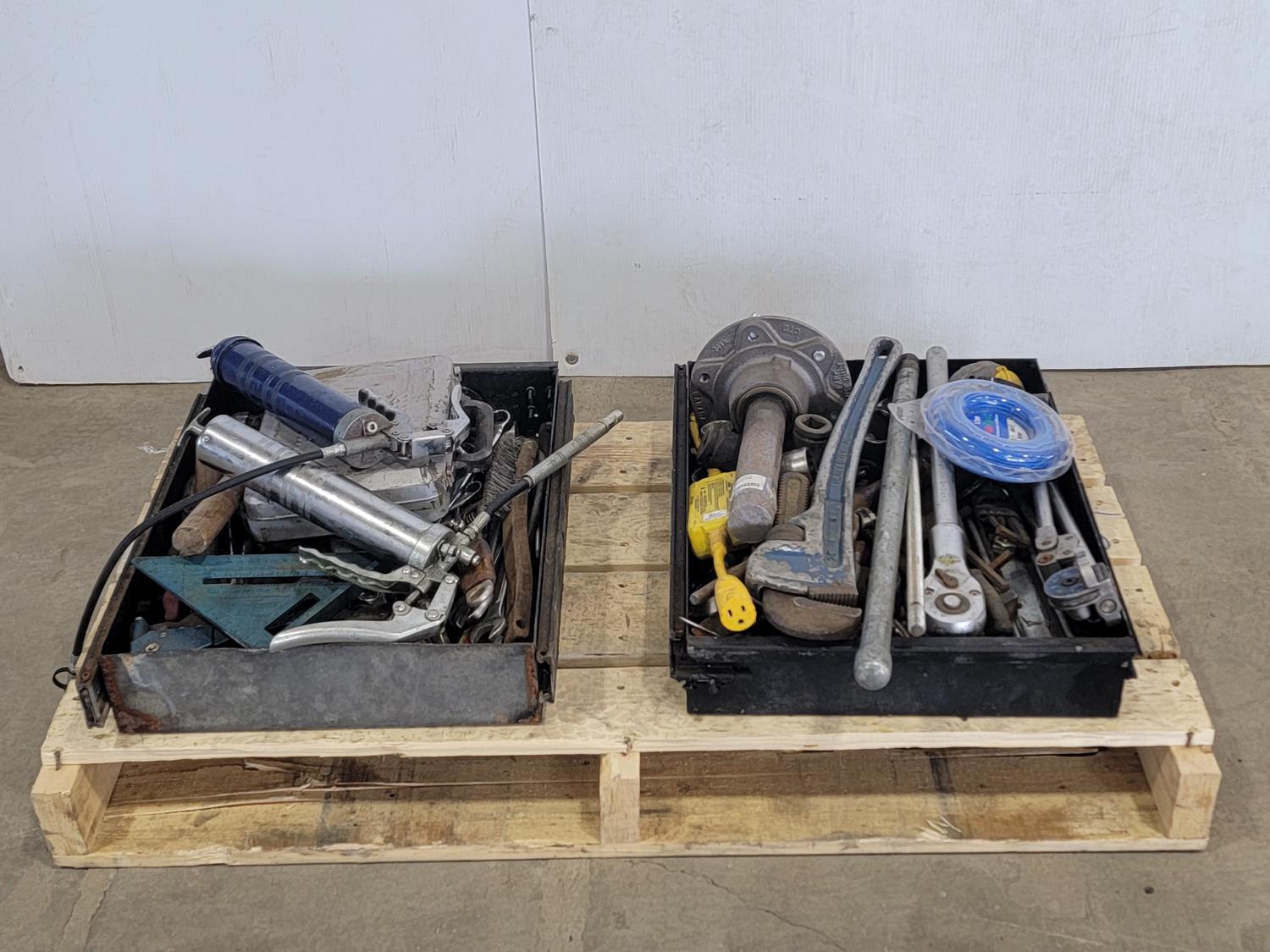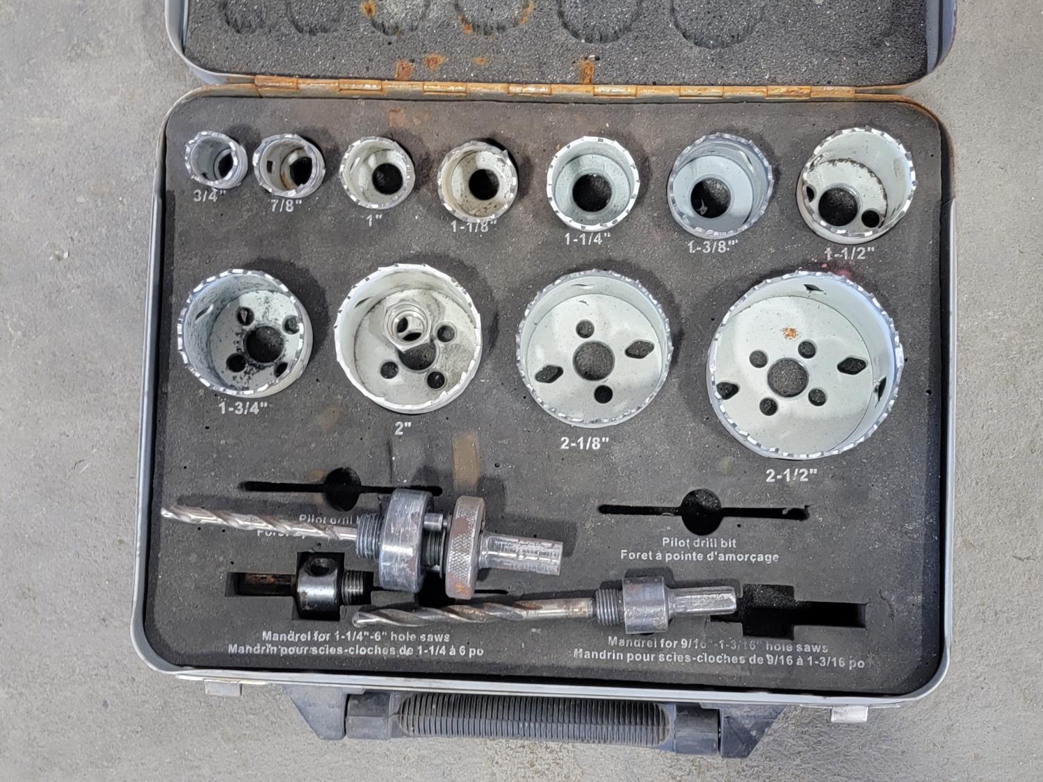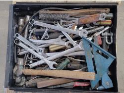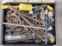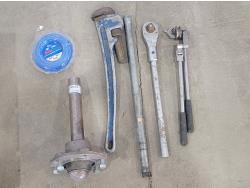 Grease gun, wrenches, ratchets, alley keys, wire brush, hammer, hole saw kit
