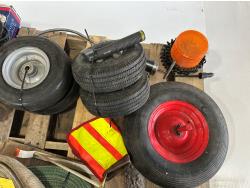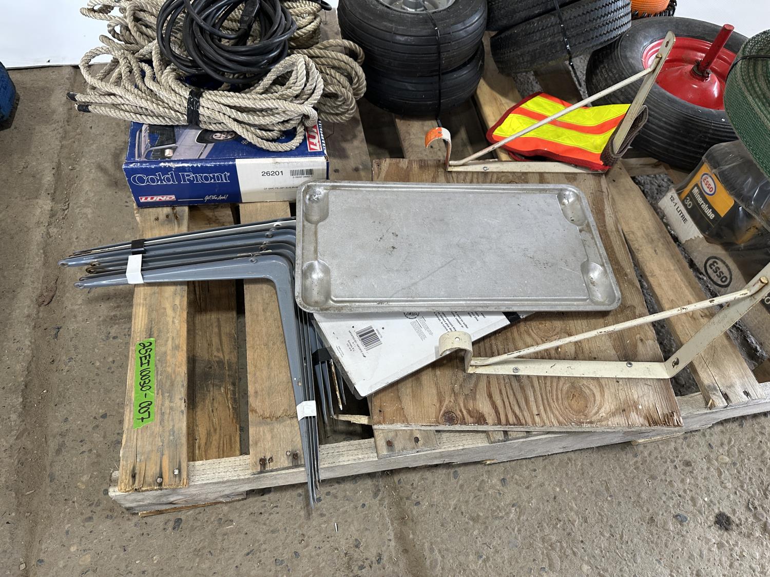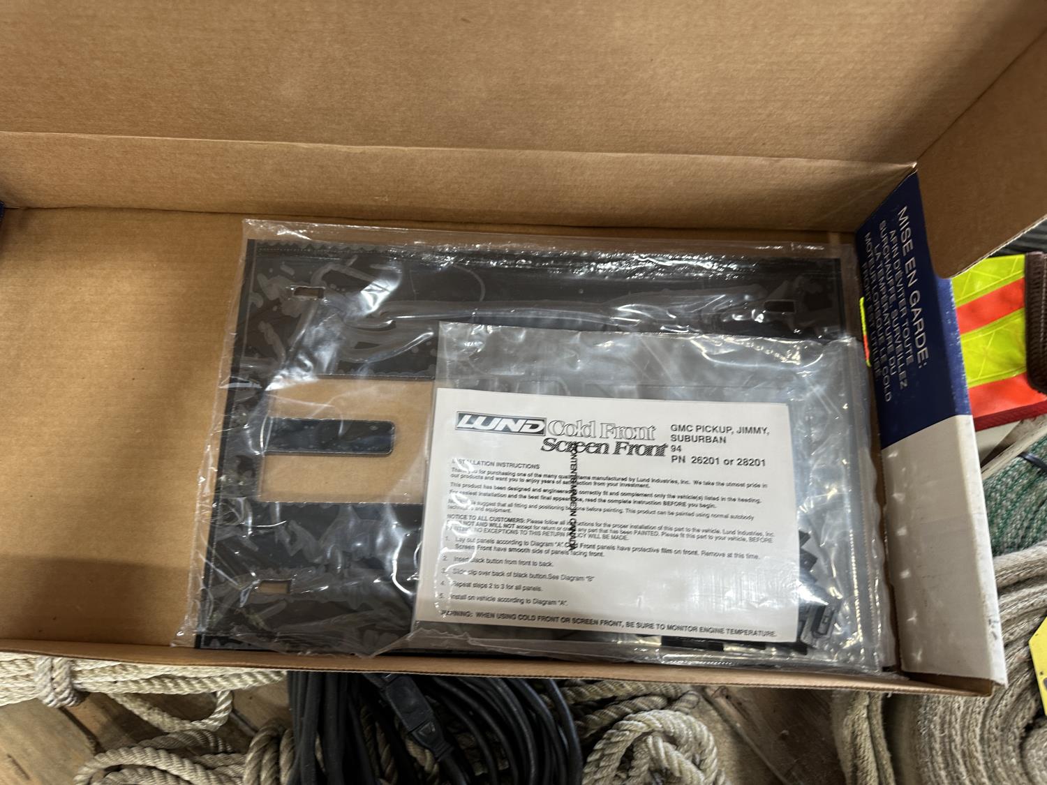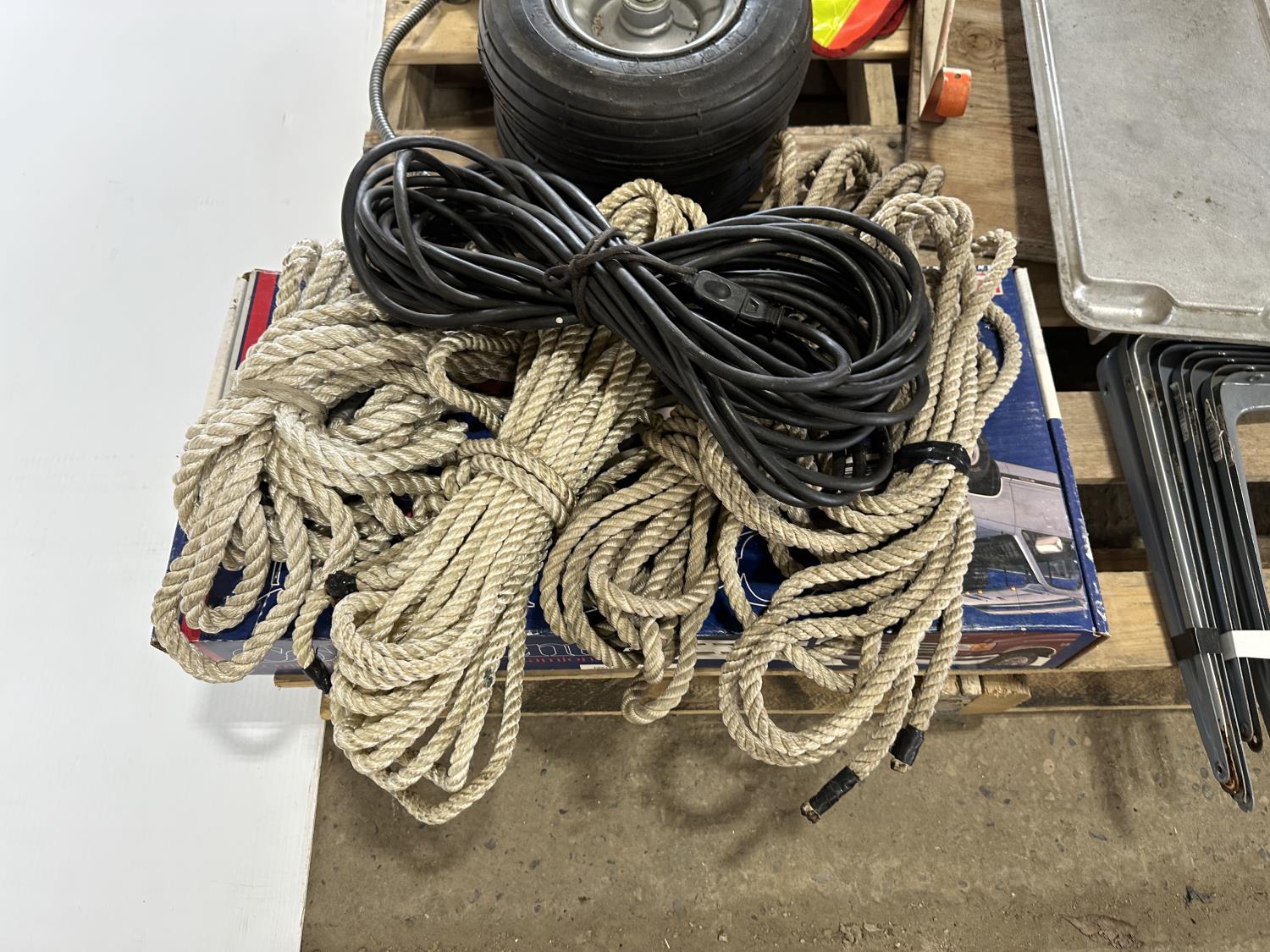 Slings, utility tires, oil, ropes, cold front winter grill cover, beacon light
