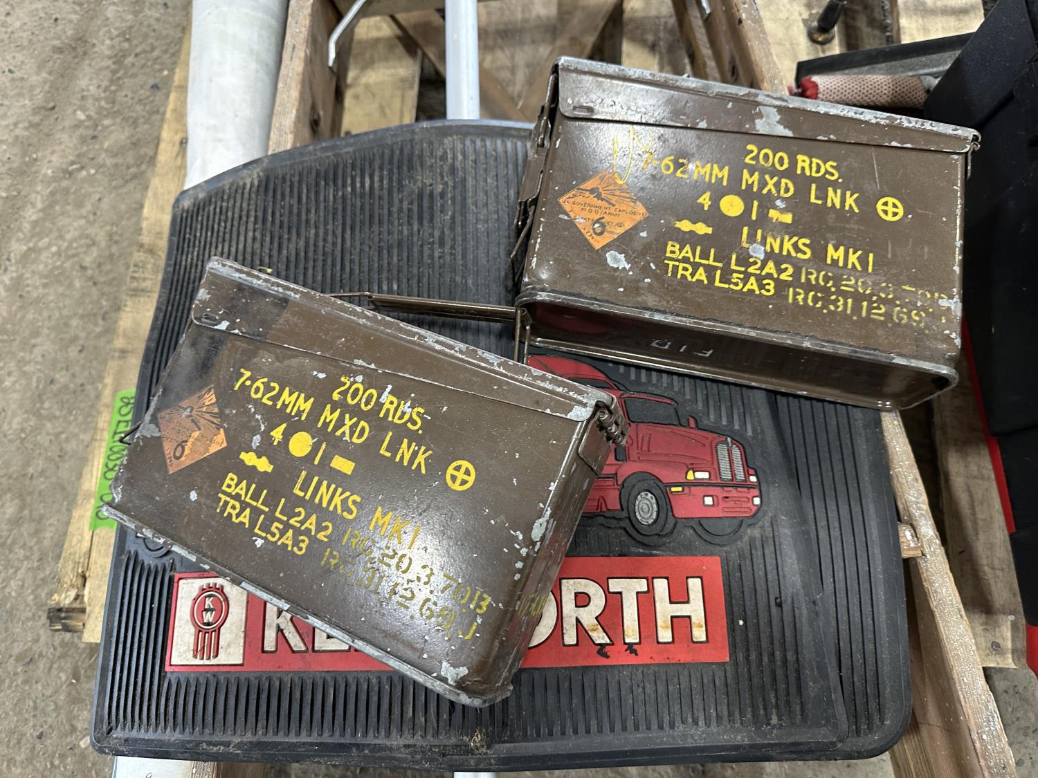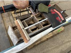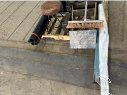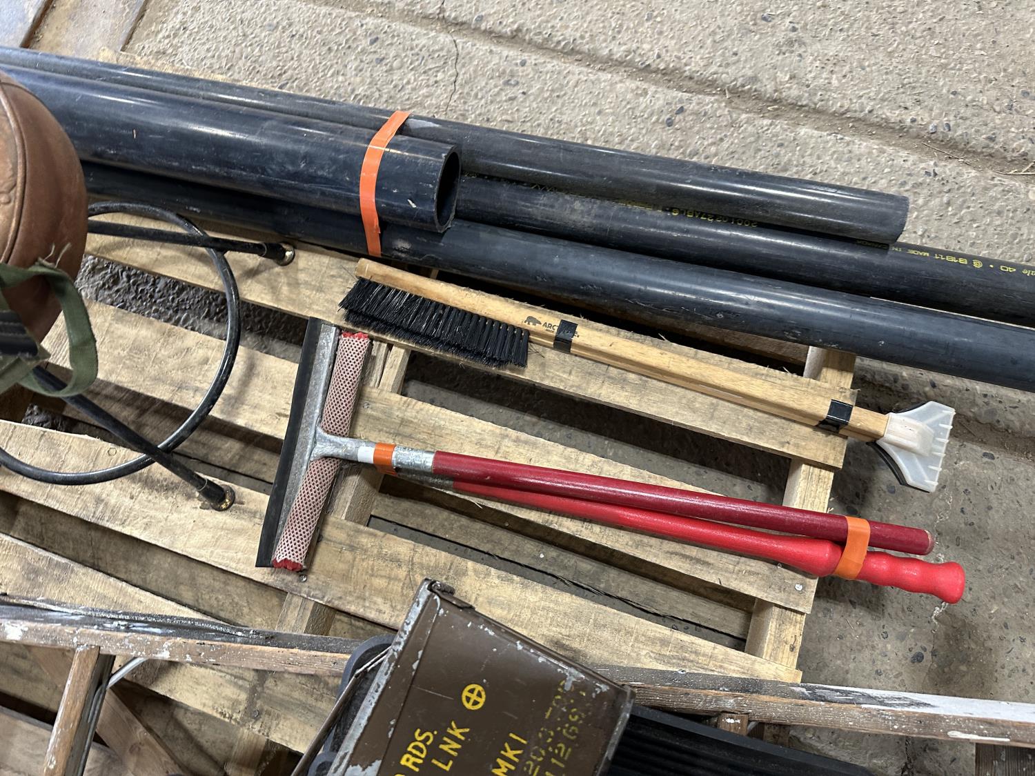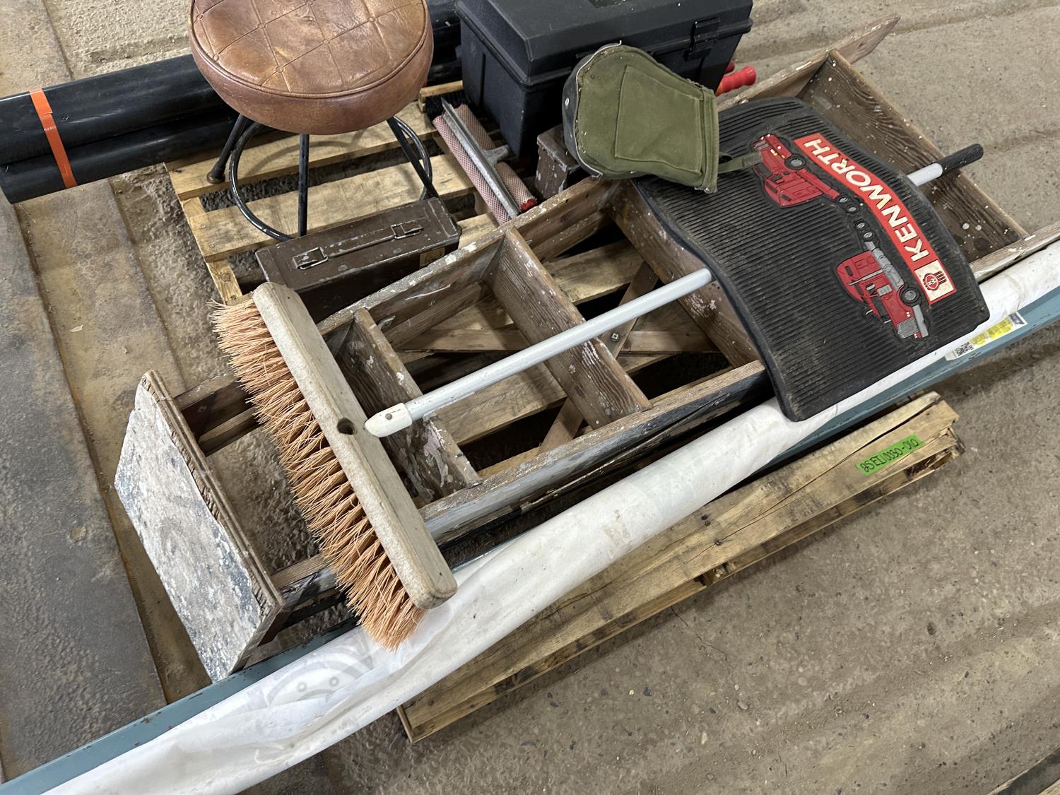 Telepost, Tyvek house wrap, ammunition boxes, Kenworth mud flaps, broom, PVC pipe