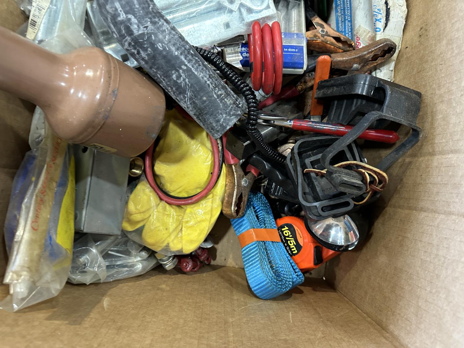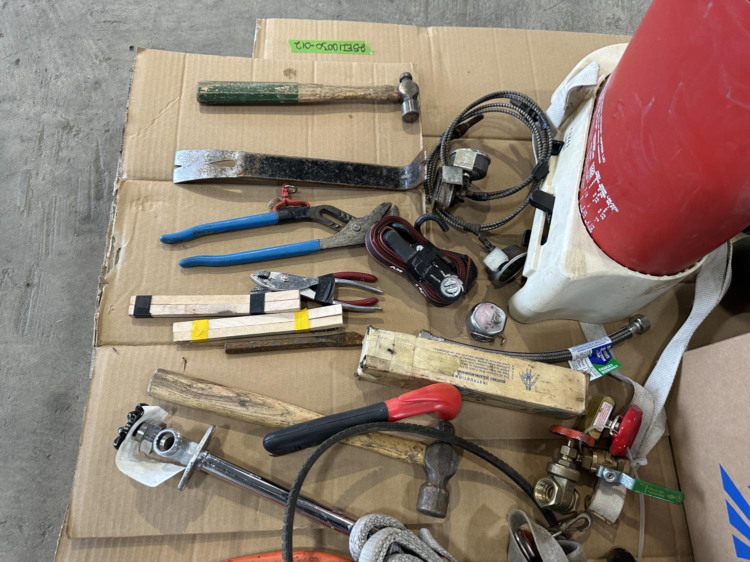 Mud flaps, hand tools, measuring tape, ratchet straps