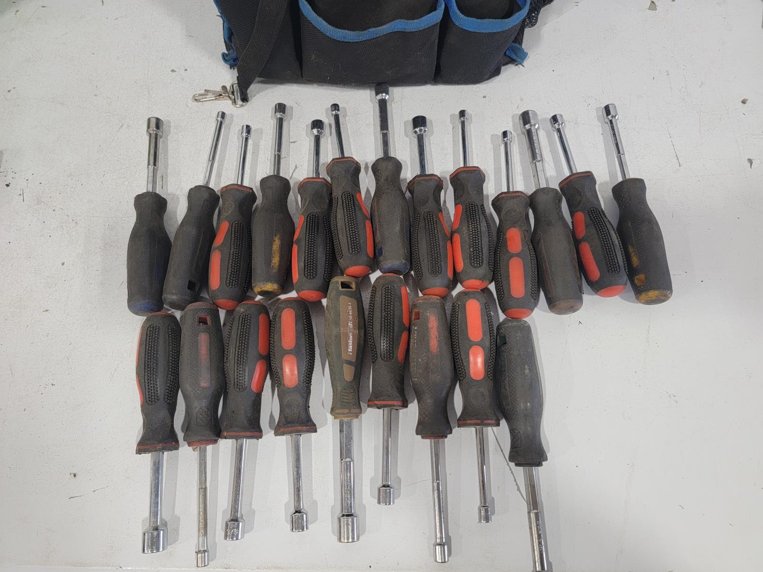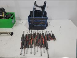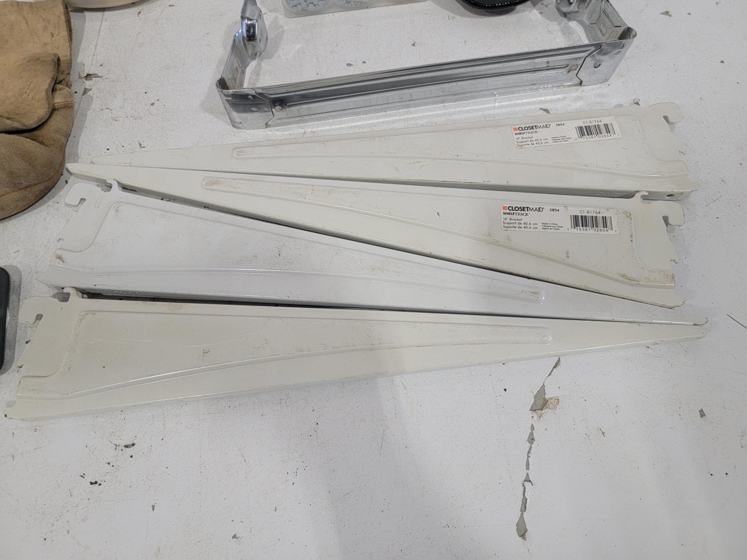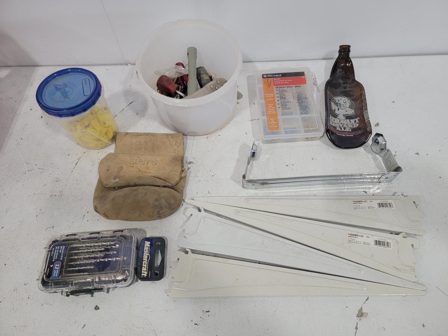 Nutdrivers, sheet sander, screwdrivers, masonry drill bits, 16 inch shelf brackets