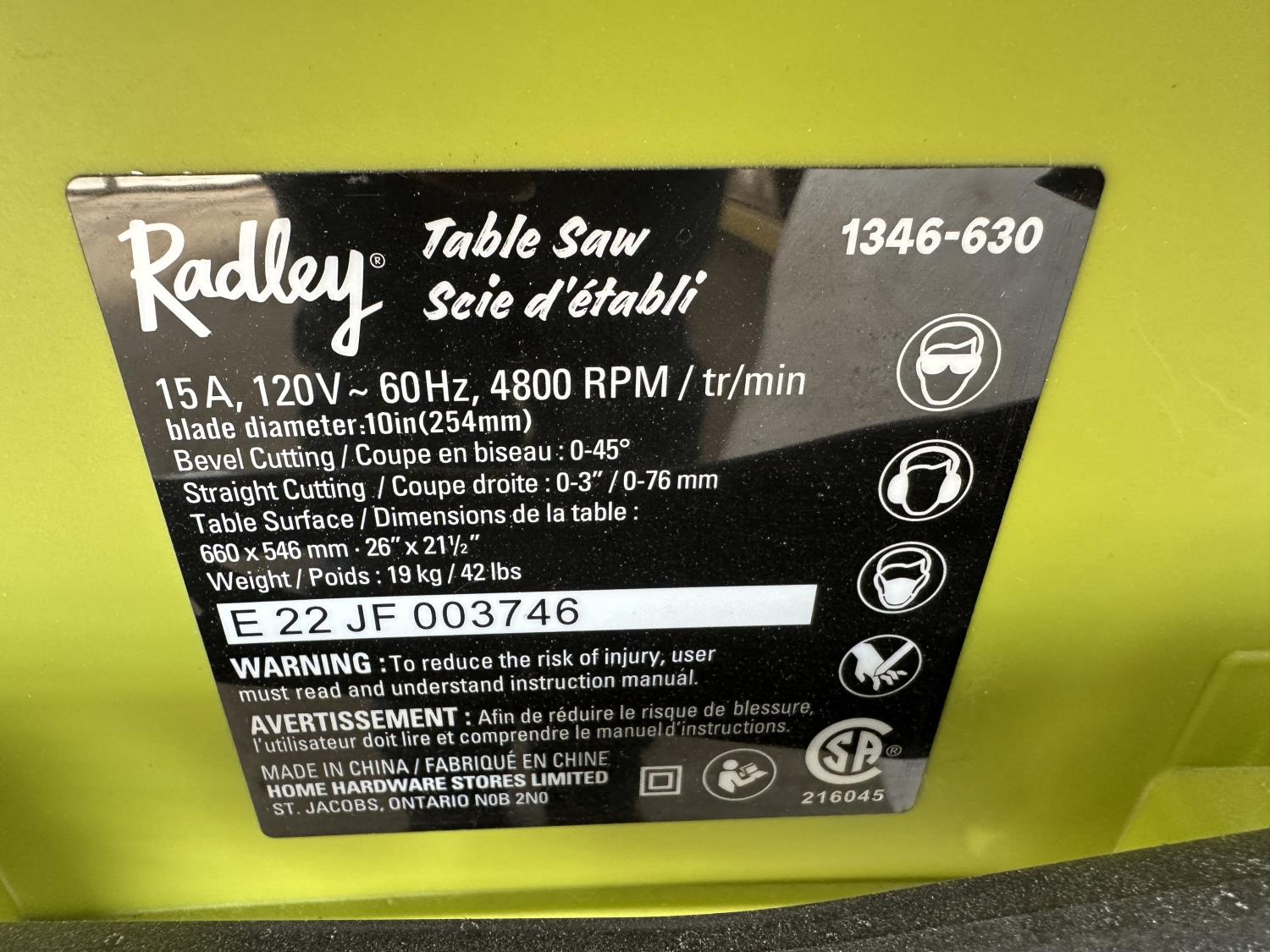1144 Radley 10 Inch Table Saw On Stand