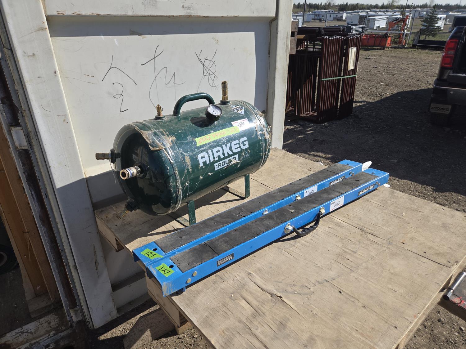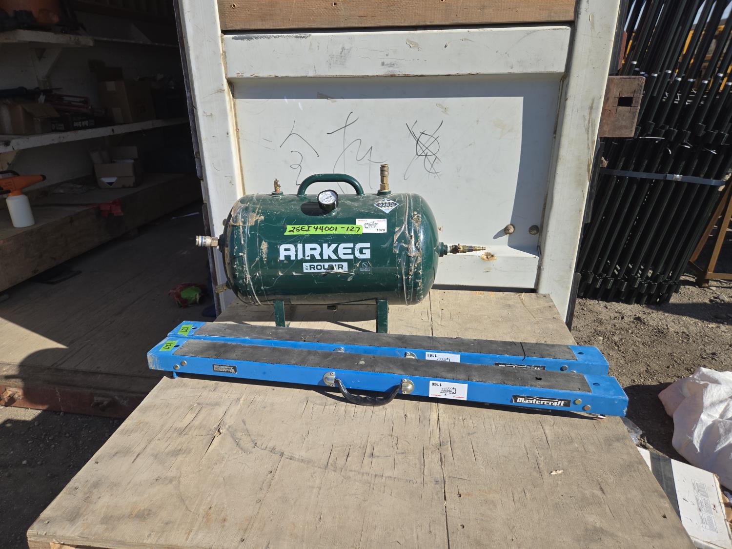 2097 Rolair Air Tank & (2) Folding Saw Horses