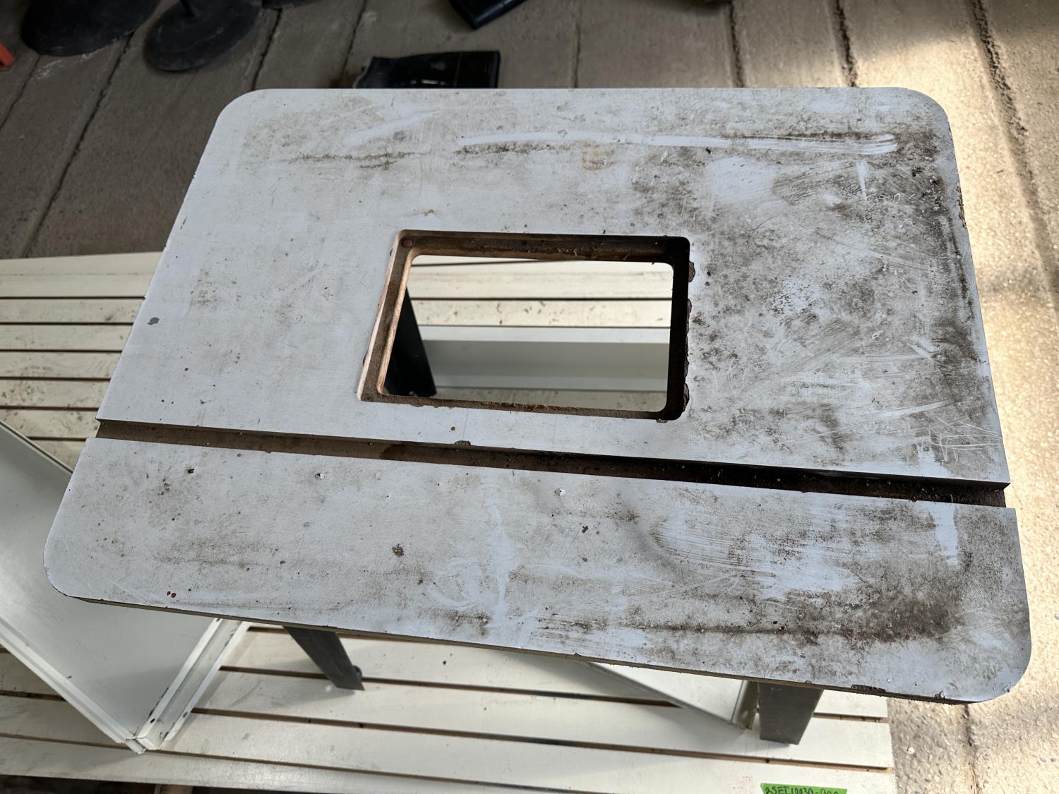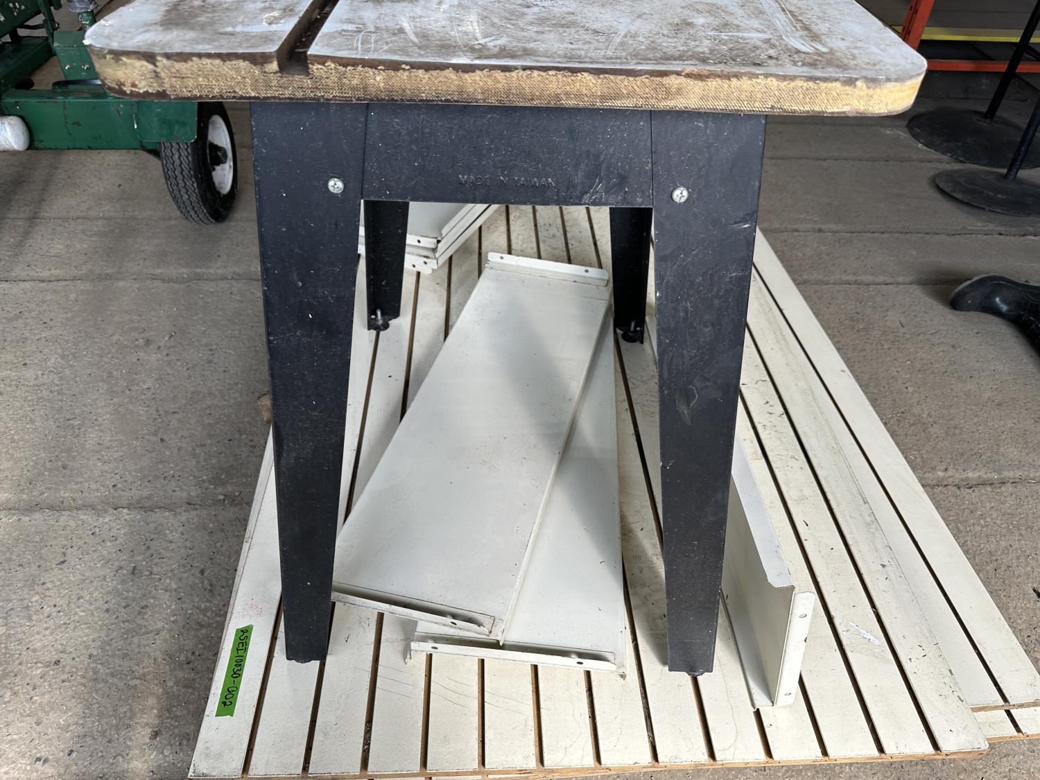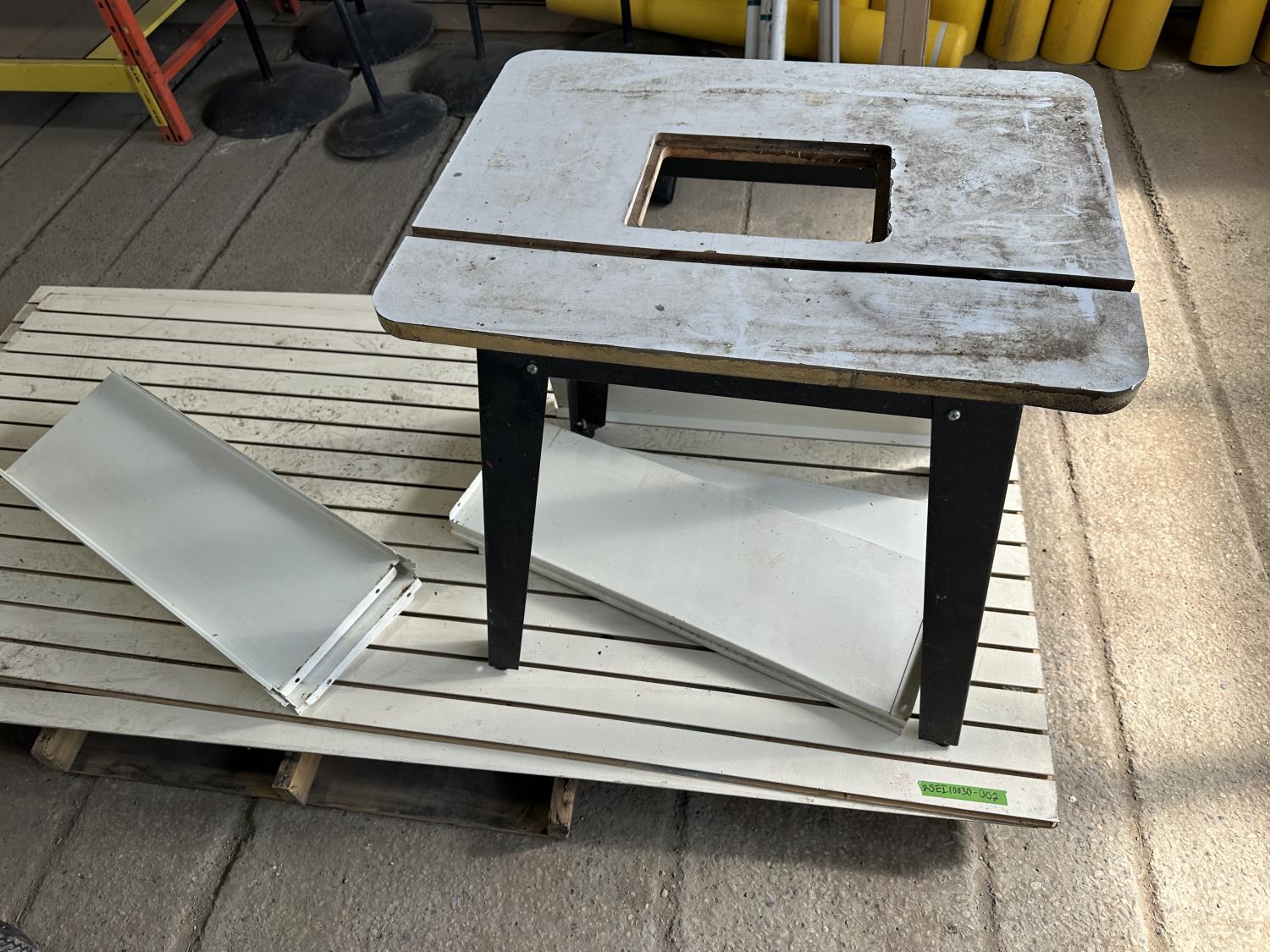 1138 Router Table, (6) Metal Shelves, (2) 48 Inch X 96 Inch Boards and (1) 42 Inch X 96 Inch Board