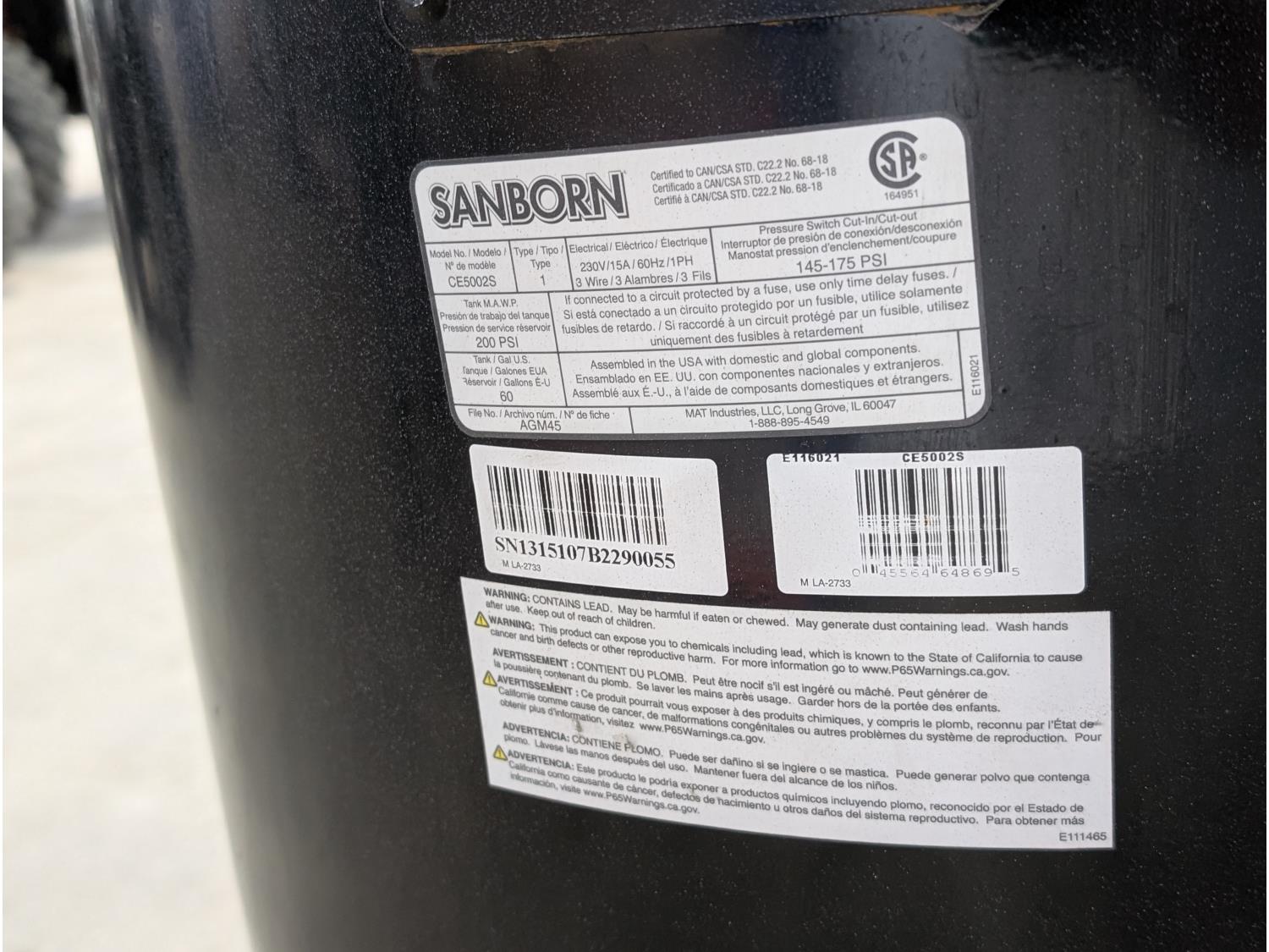 175 PSI, 230V