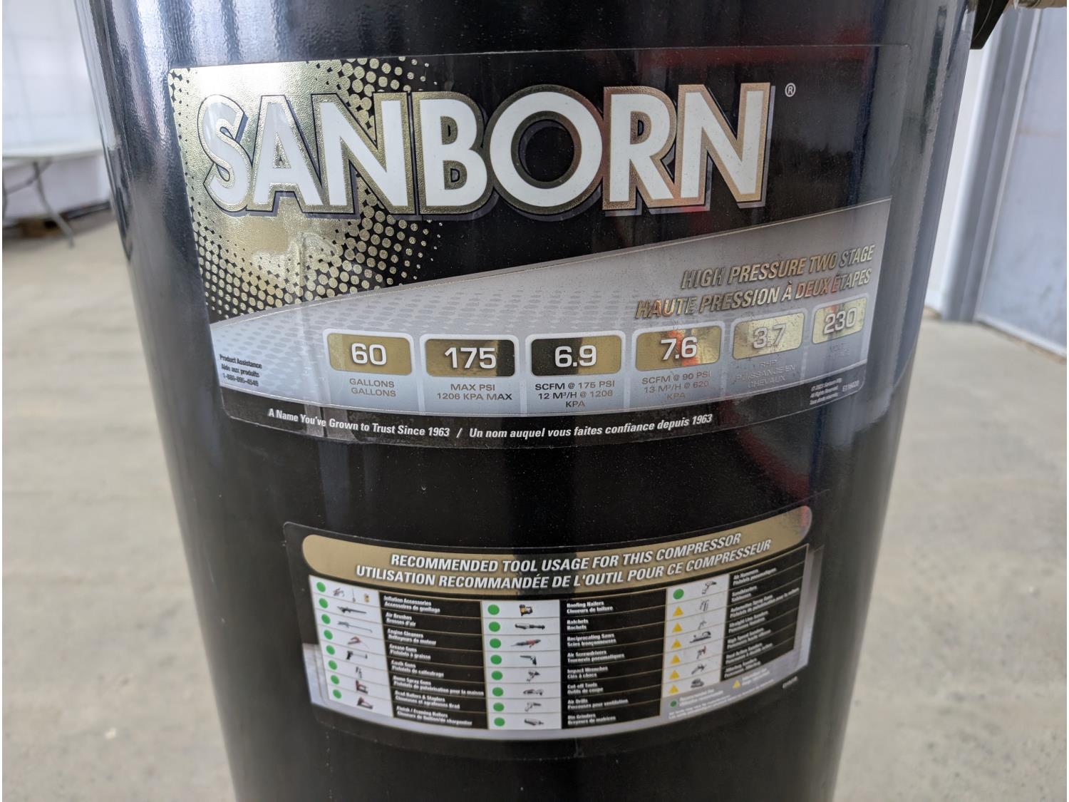 1158 Sanborn 60 Gallon High Pressure Two Stage Air Compressor
