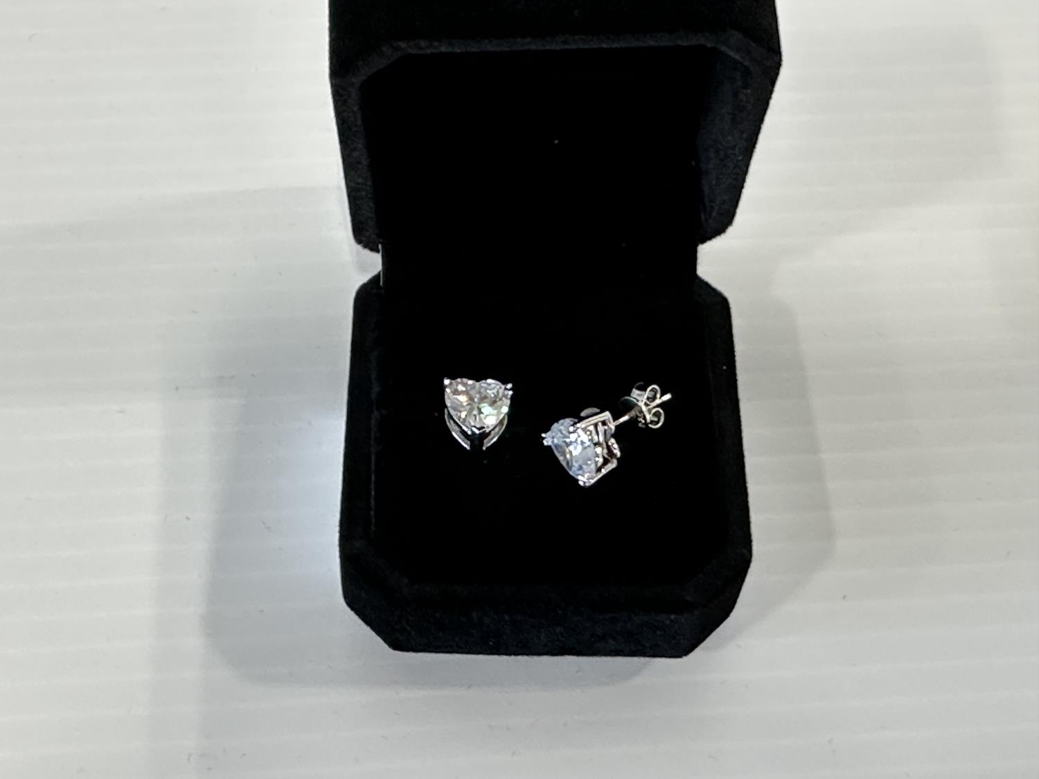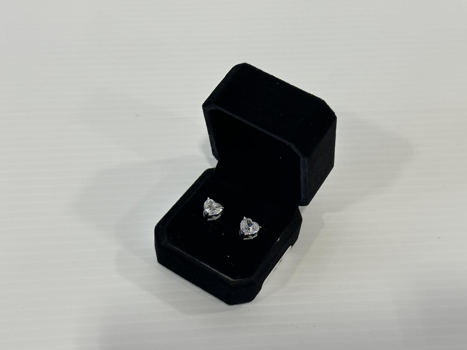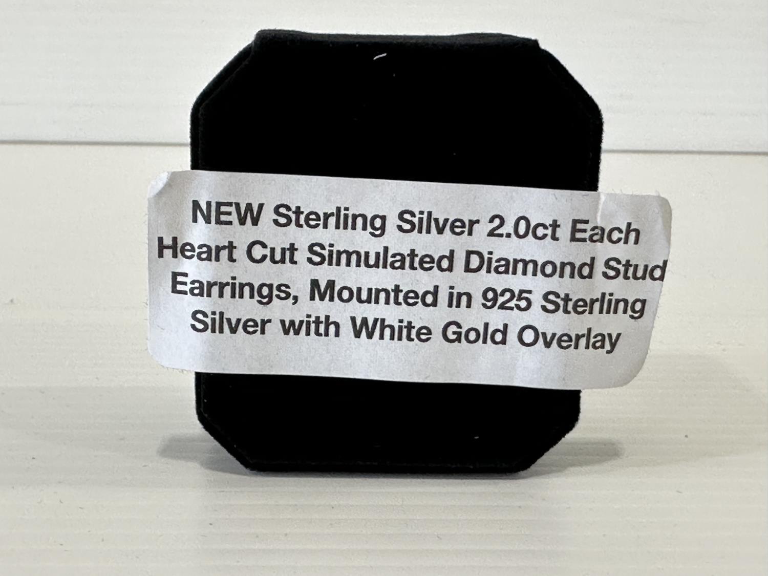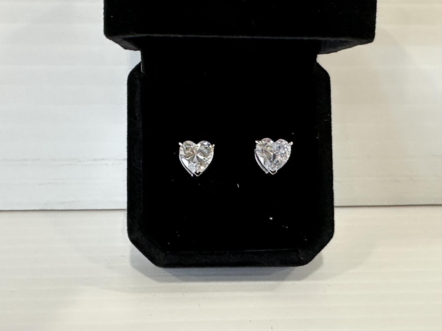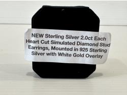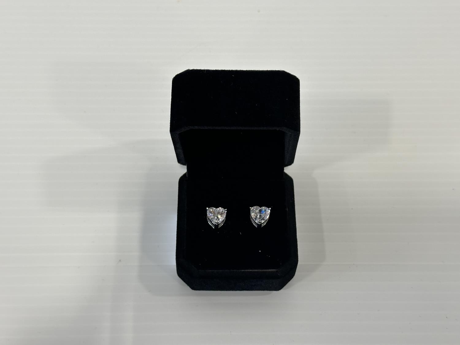 1594 Smartlife Sterling Silver 2.0 Ct Each Heart Cut Simulated Diamond Stud Earrings (Unused)