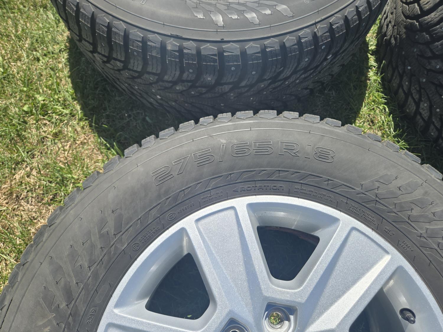 100 (4) Nokian 275/65R18 Winter Studded Tires on Ford 6 Bolt Rims