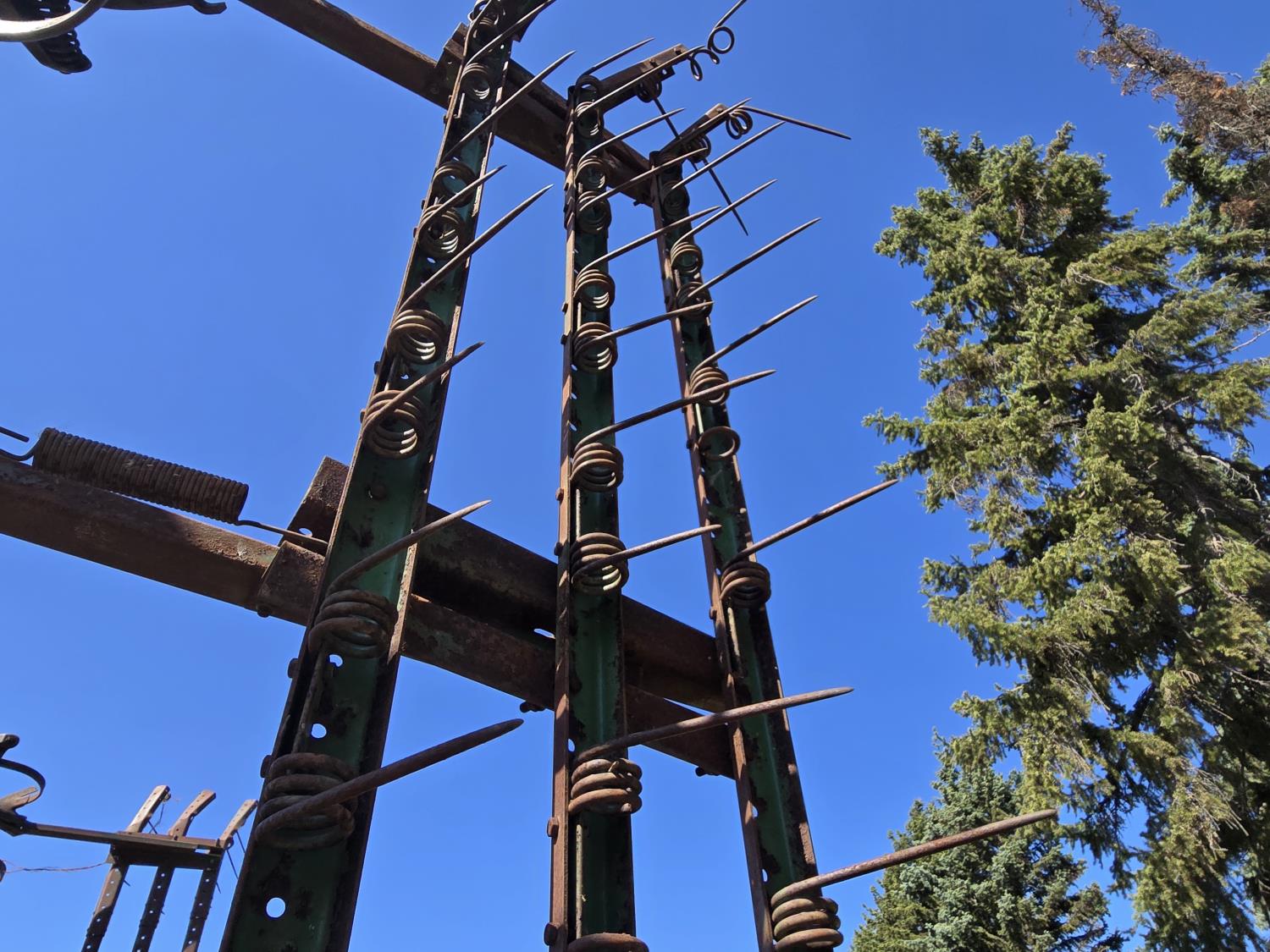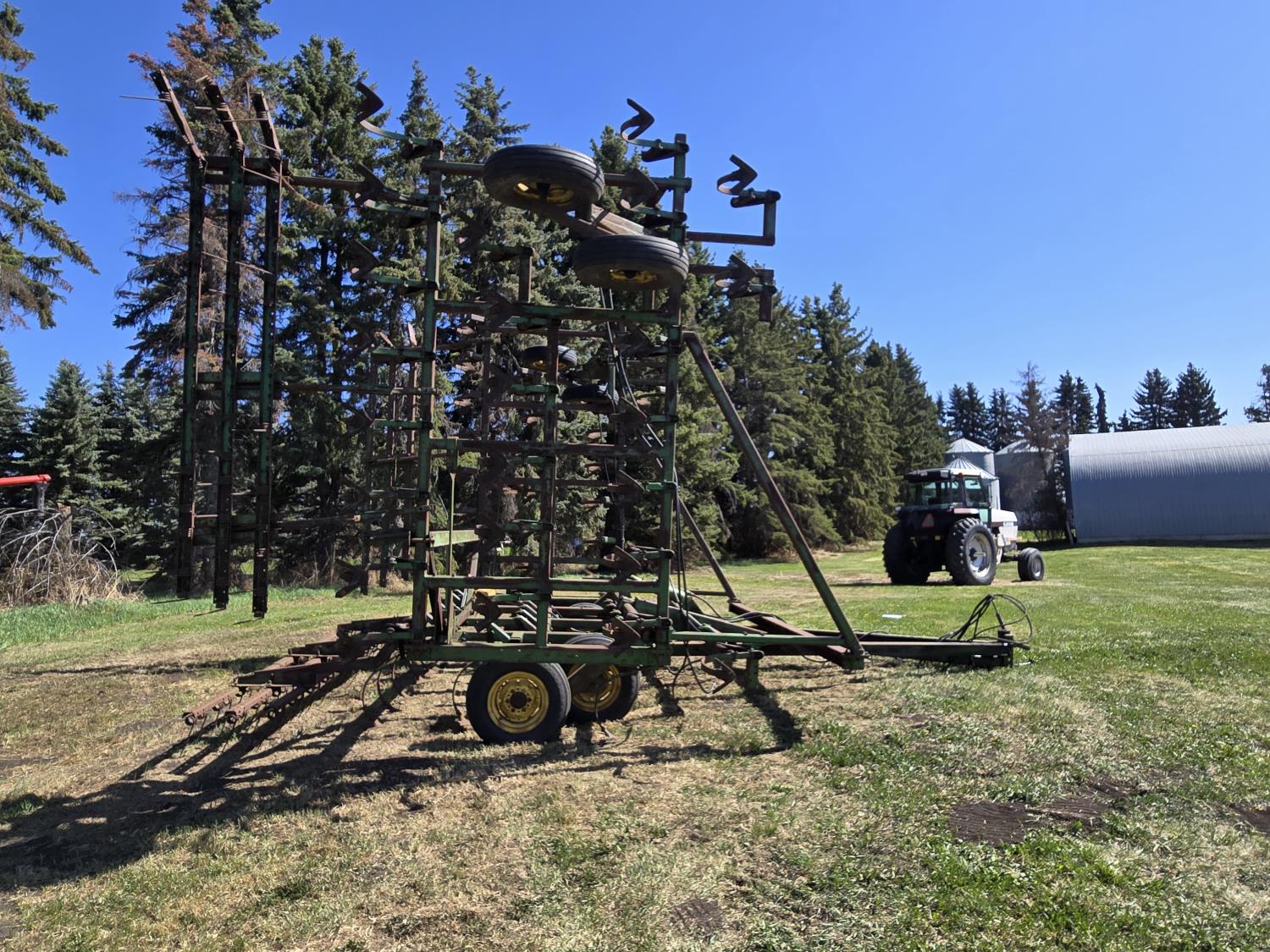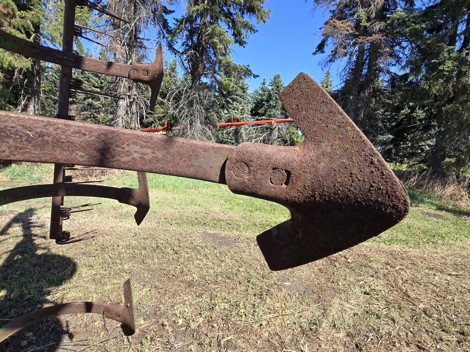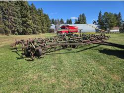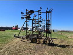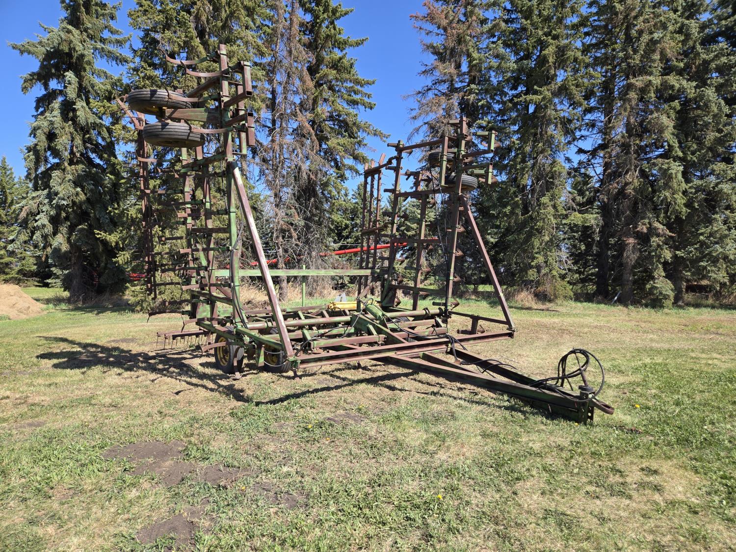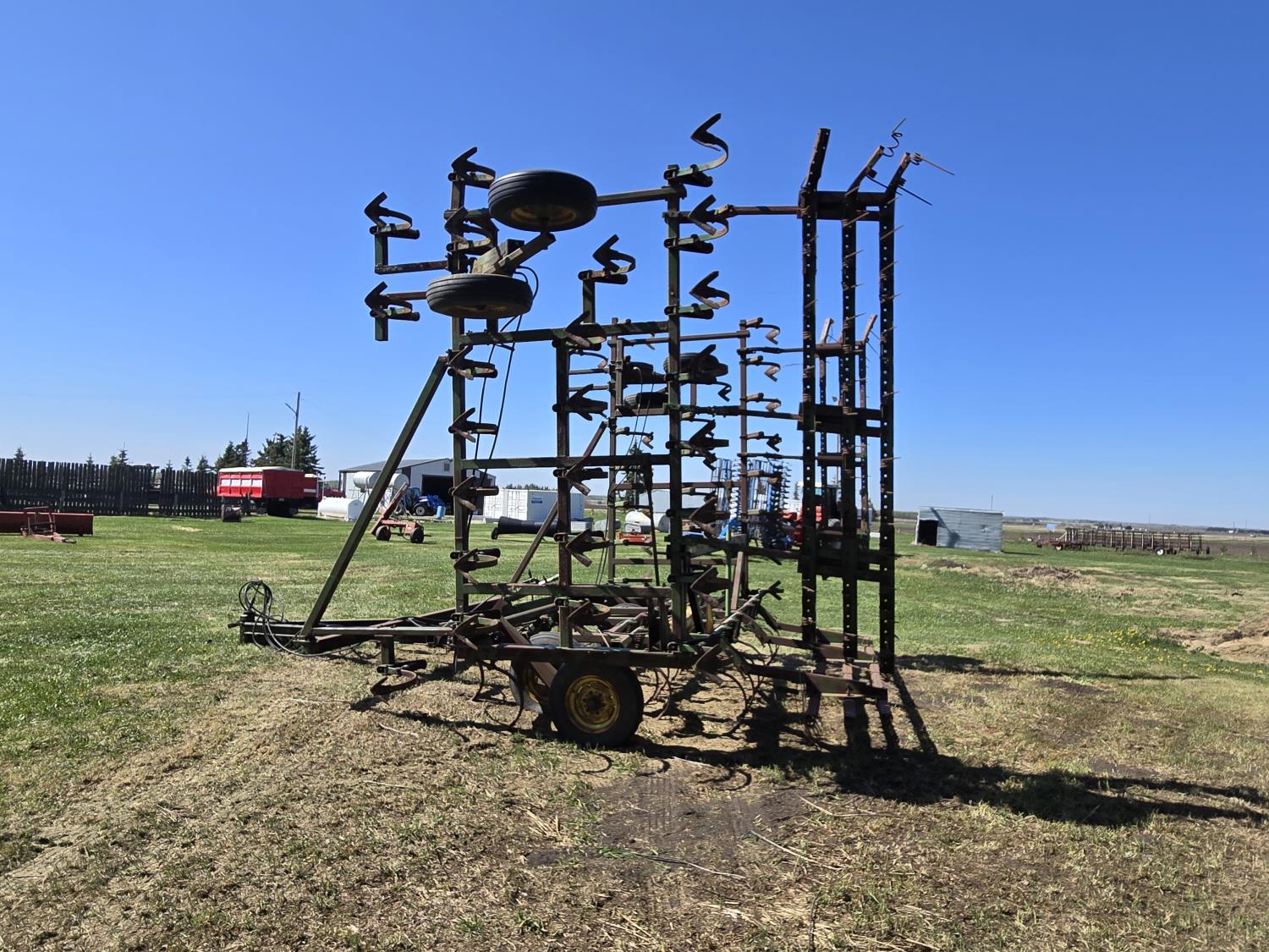 6 inch spacing, 9 inch sweeps, spring tooth harrows, walking axles on main frame, walking axles on wings, 7.60-15 tires