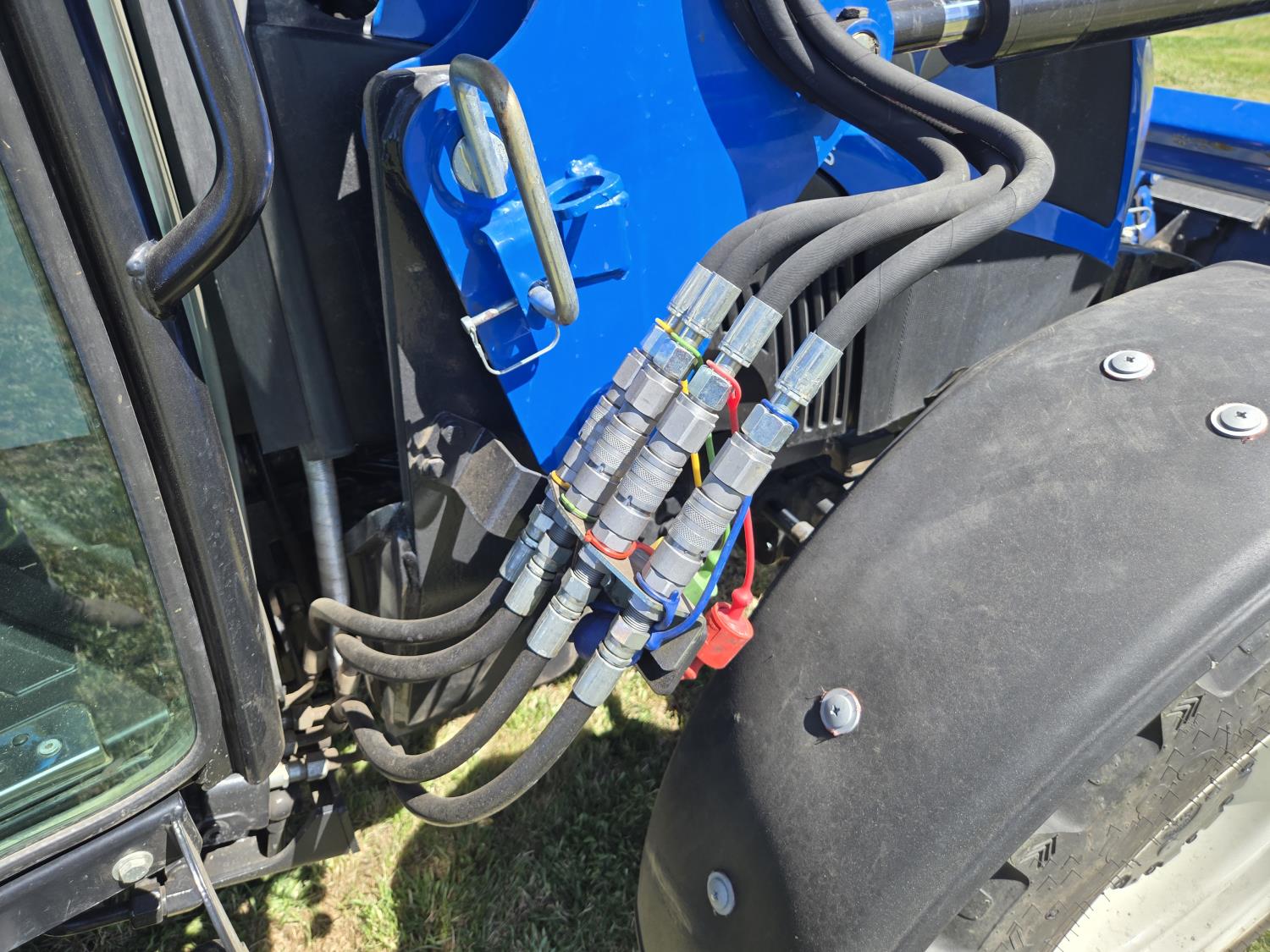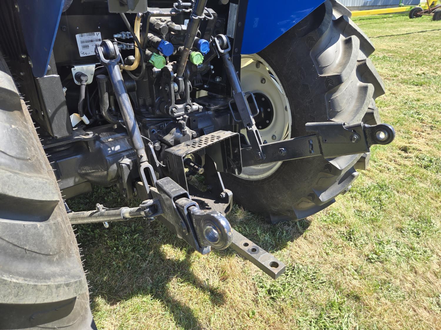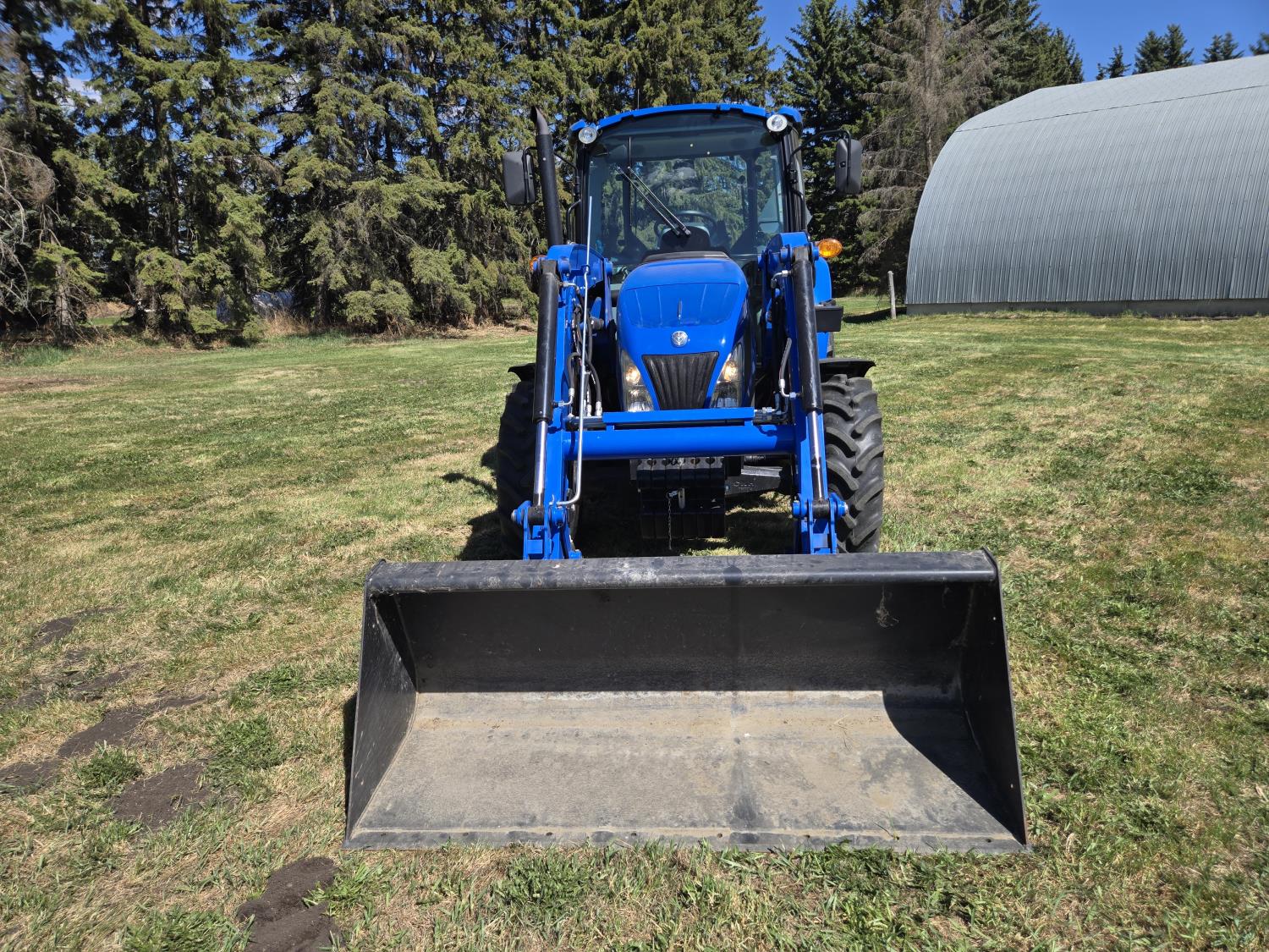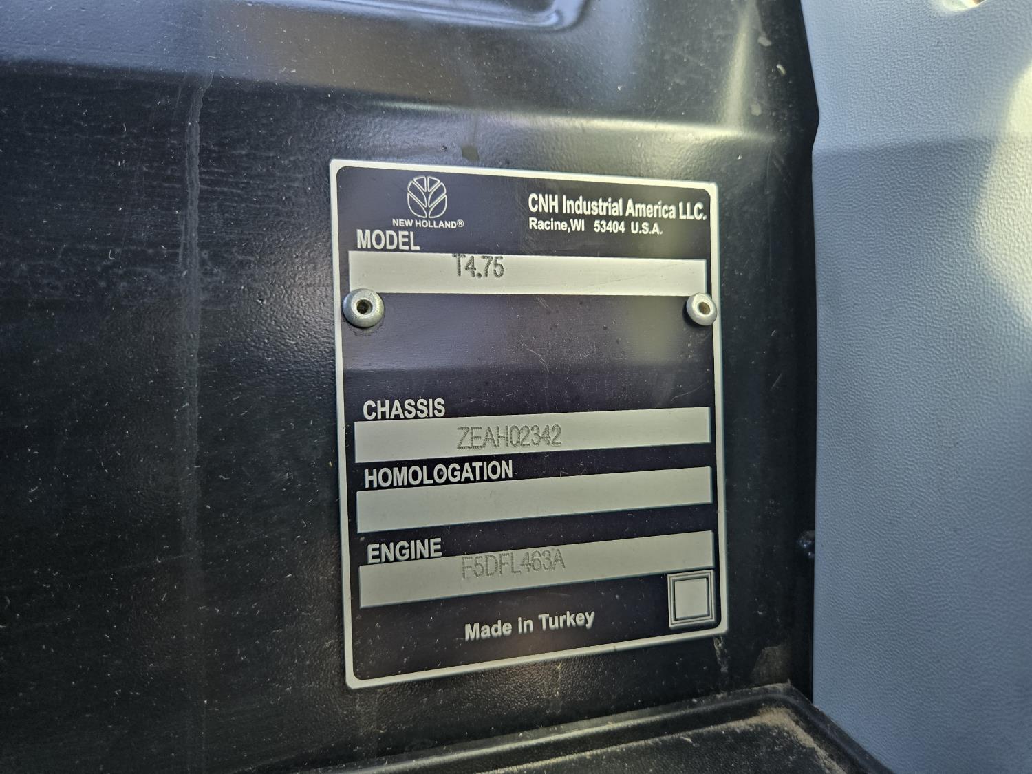 New Holland 655TL loader, Q/A, 72 inch bucket, mid mount hydraulic connection, FPT 3.2 L 4 cylinder 74 HP, diesel engine, 12 speed manual transmission, cab, shuttle shift, rear differential lock, joystick, A/C, radio, buddy seat, front weights, 540 PTO, 3 point hitch, 2 rear hydraulic outlets, rear wheel weights, 280/85R24 front tires, 420/895R30 rear tires, front fenders, front weights