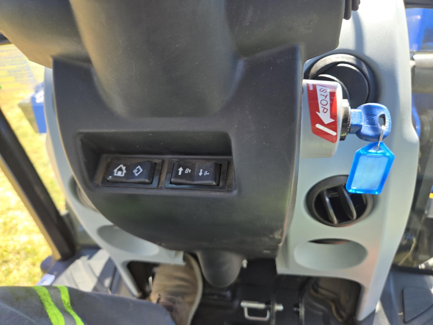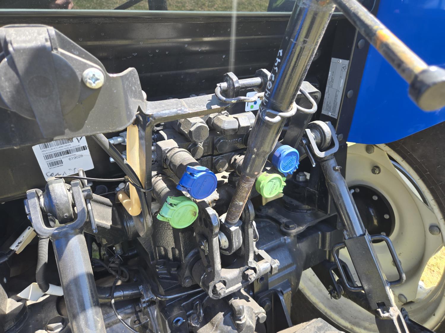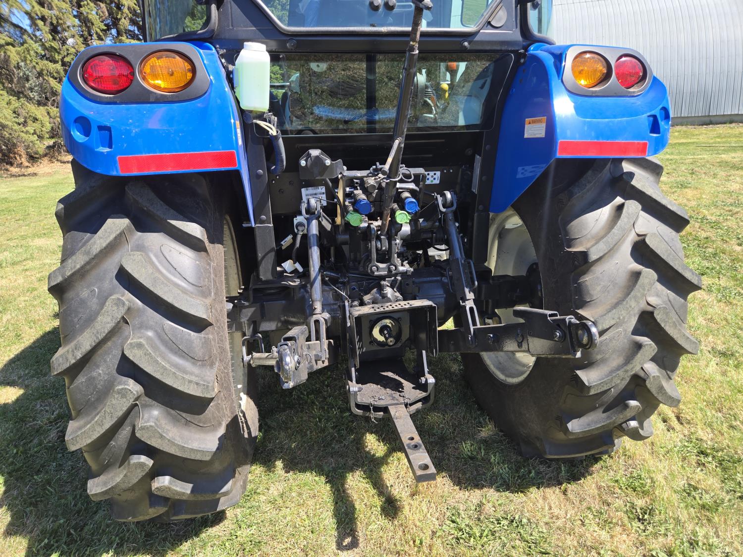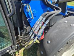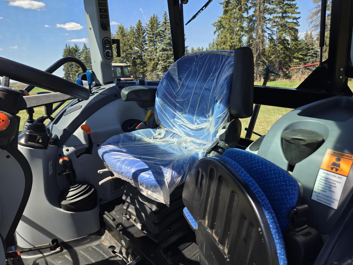 New Holland 655TL loader, Q/A, 72 inch bucket, mid mount hydraulic connection, FPT 3.2 L 4 cylinder 74 HP, diesel engine, 12 speed manual transmission, cab, shuttle shift, rear differential lock, joystick, A/C, radio, buddy seat, front weights, 540 PTO, 3 point hitch, 2 rear hydraulic outlets, rear wheel weights, 280/85R24 front tires, 420/895R30 rear tires, front fenders, front weights