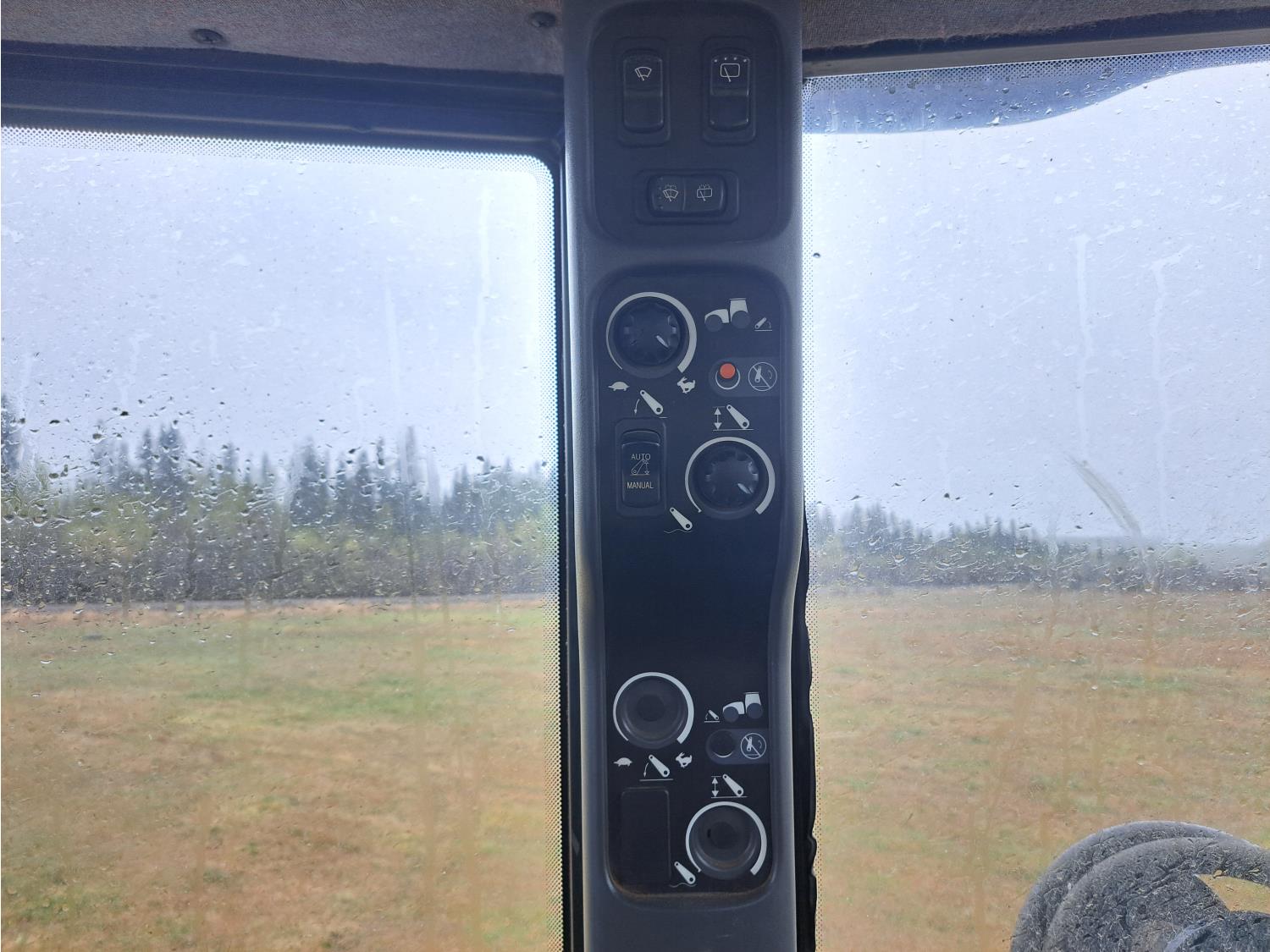 New Holland 82L loader, 100 inch bucket, grapple, New Holland 7.5 6 cylinder 145 HP, diesel engine, 105 PTO HP, hydro transmission, cab, A/C, upgraded stereo, air ride seat, 540/1000 PTO, 3 rear hydraulic outlets, rear wheel weights, 480/85R34 tires