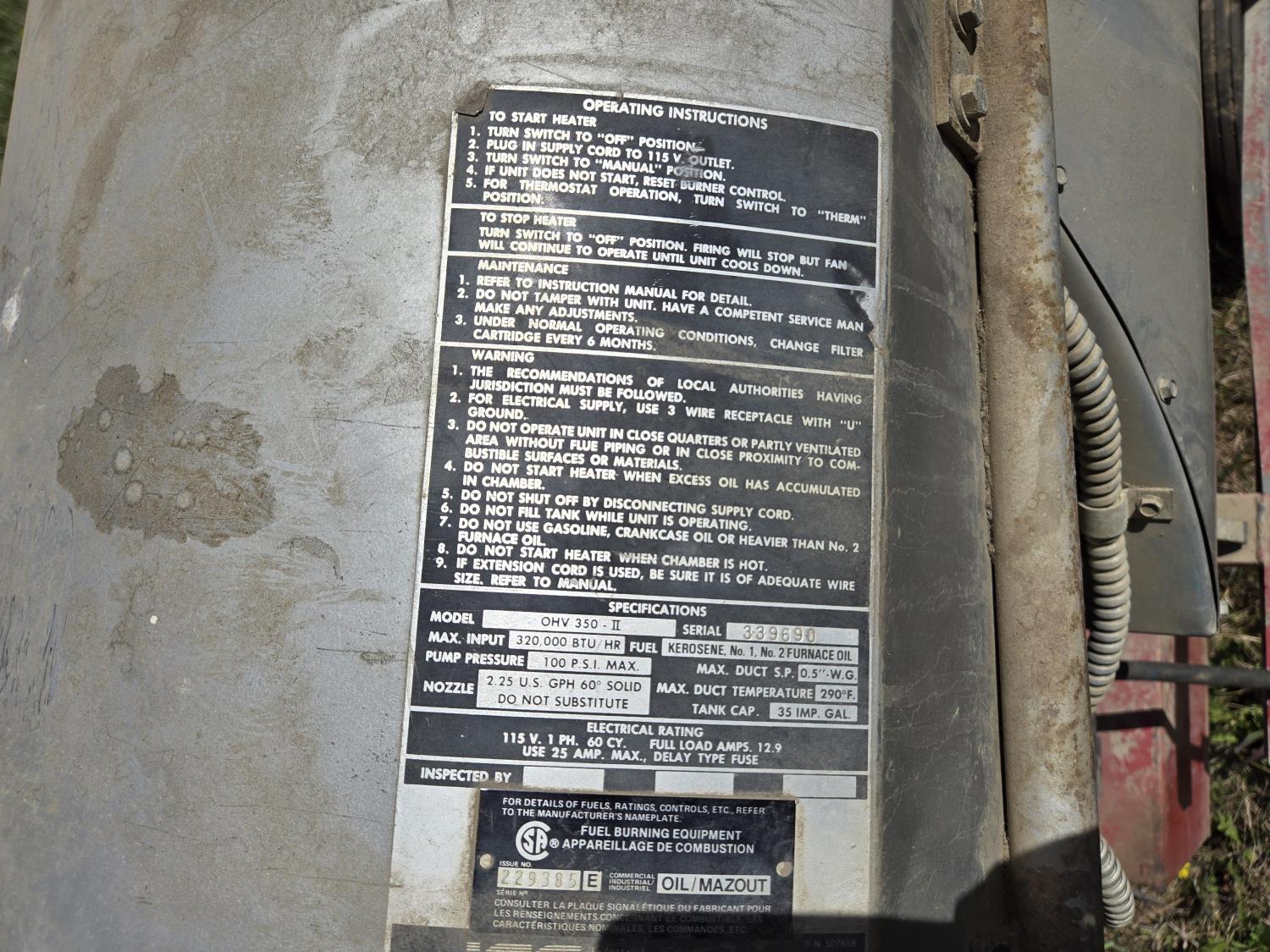 53 320,000 BTU Hrs Frost Fighter