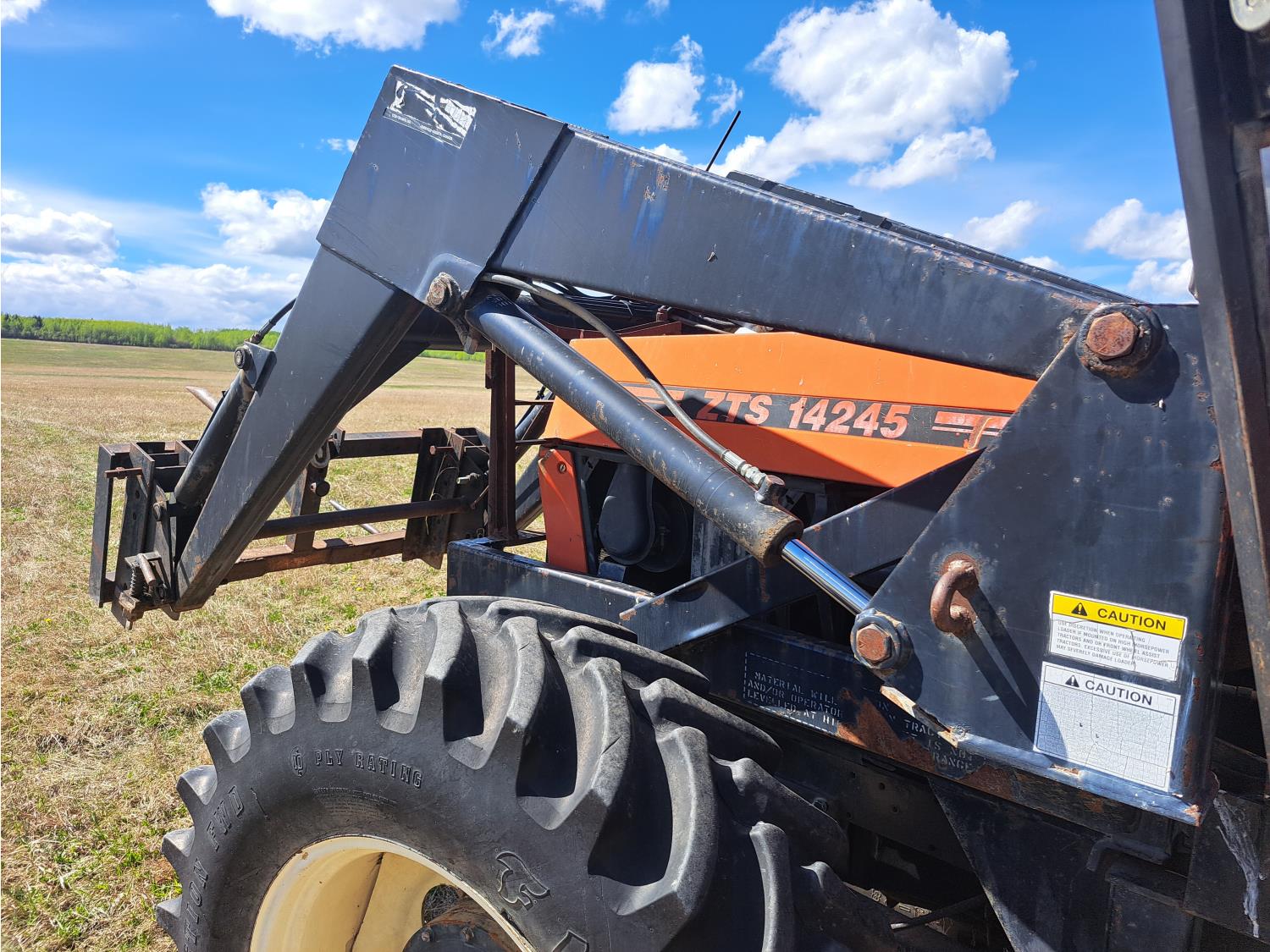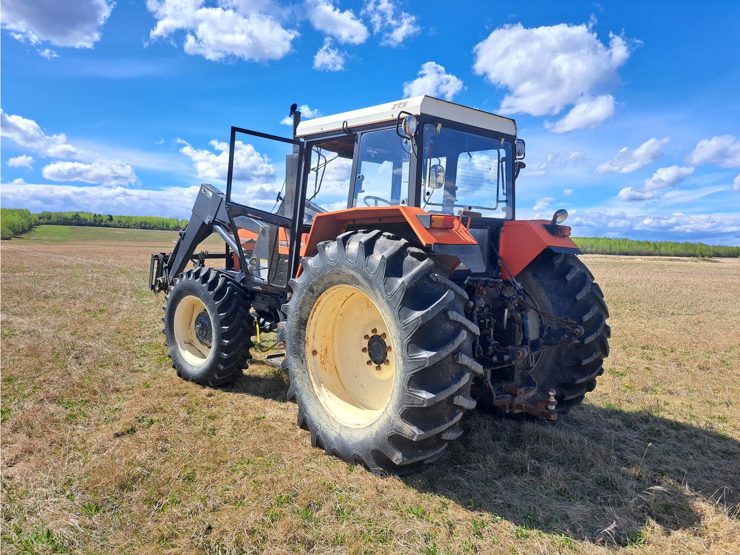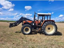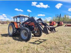 Loader, bale forks, Zetor 6.8 L 6 cylinder 140 HP, diesel engine, 125 PTO HP, cab, radio, 1000 PTO, 3 rear hydraulic outlets, 14.9-28 front tires, 20.8-38 rear tires
