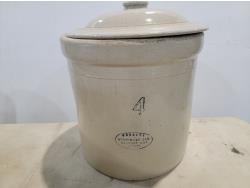 3892 (4) Small Ceramic Crocks and (1) 4 Gallon Crock with Lid