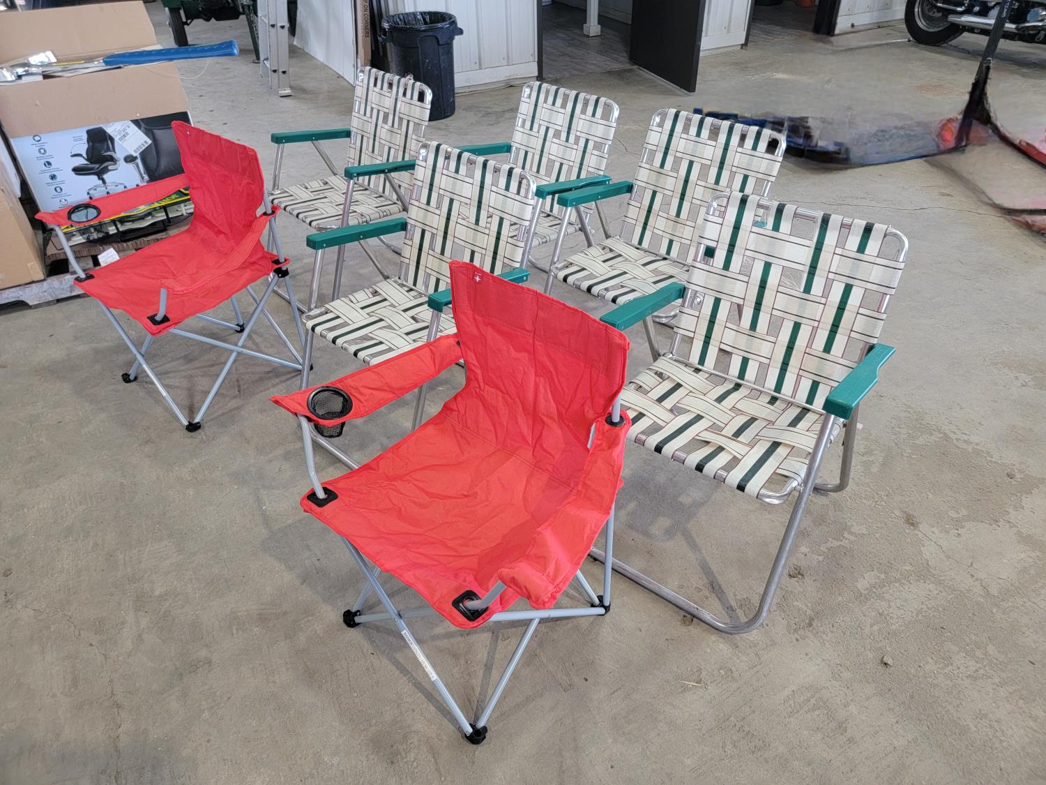 3878 (5) Folding Lawn Chairs and (2) Folding Camp Chairs