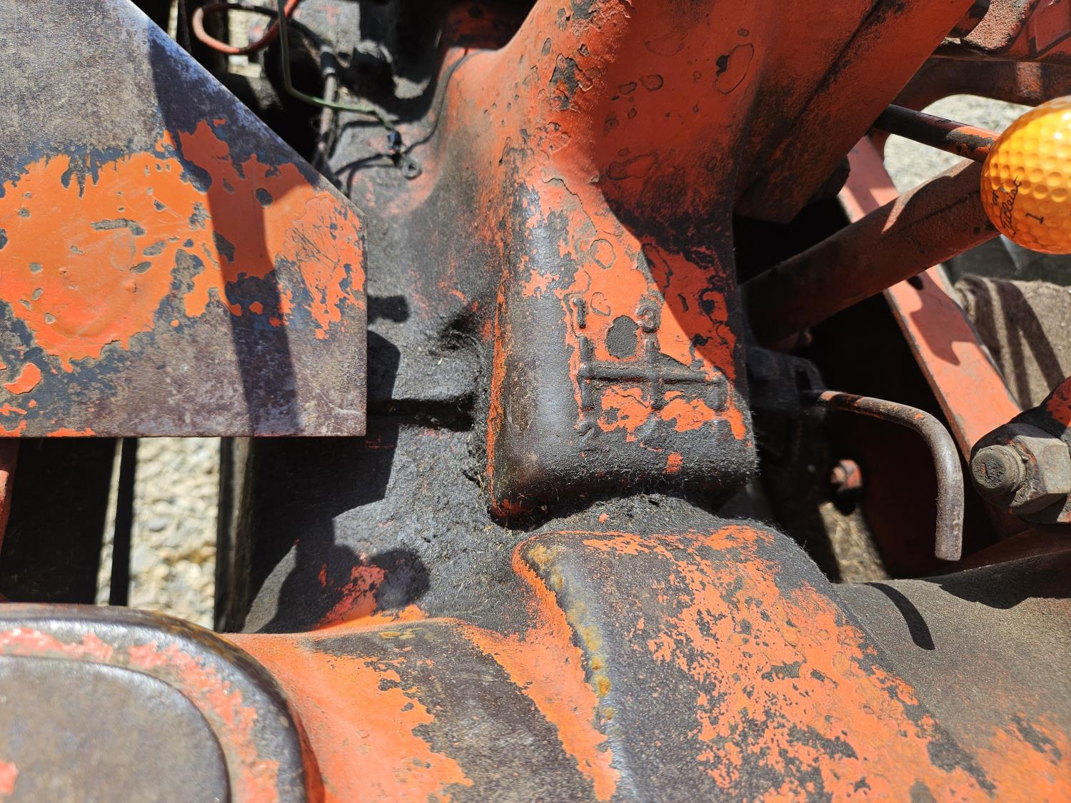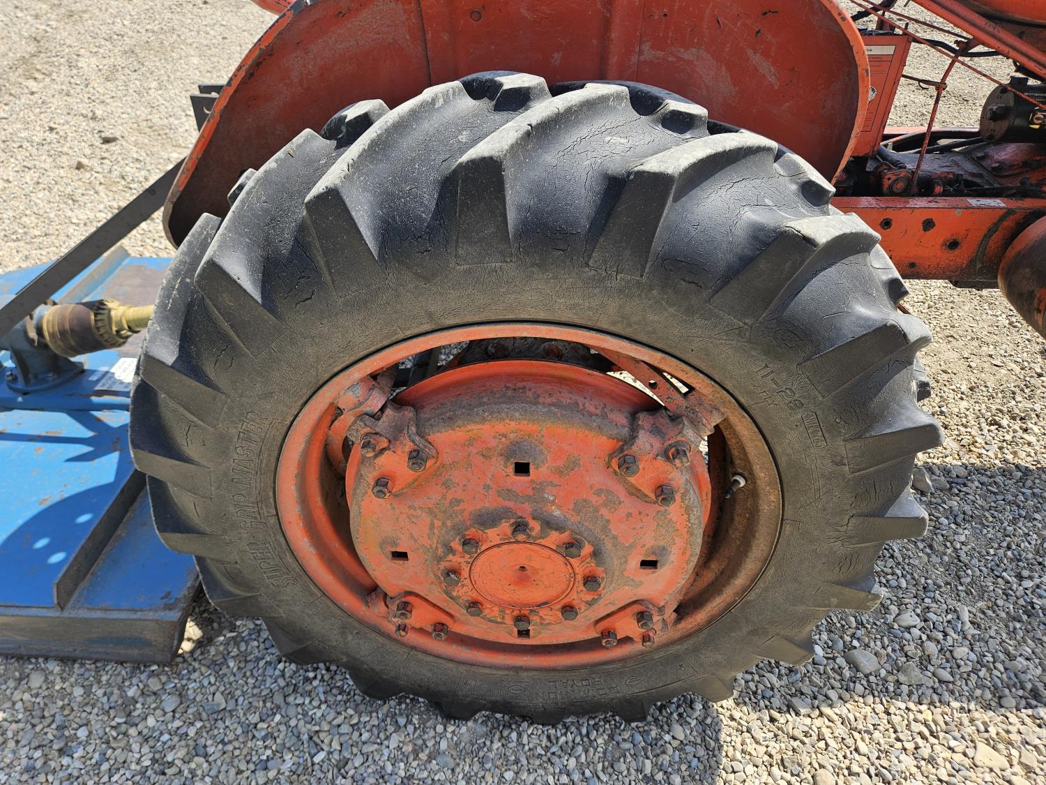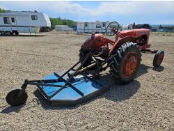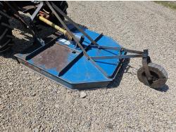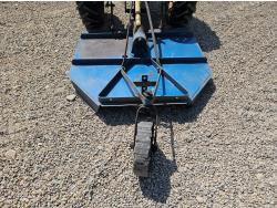 3.3 L 4 cylinder gas engine, 4 speed manual transmission, open station platform, 540 PTO, 3 point hitch, 5.50-16 front tires, 12.4-28 rear tires, King Kutter 3 pth 5 ft mower