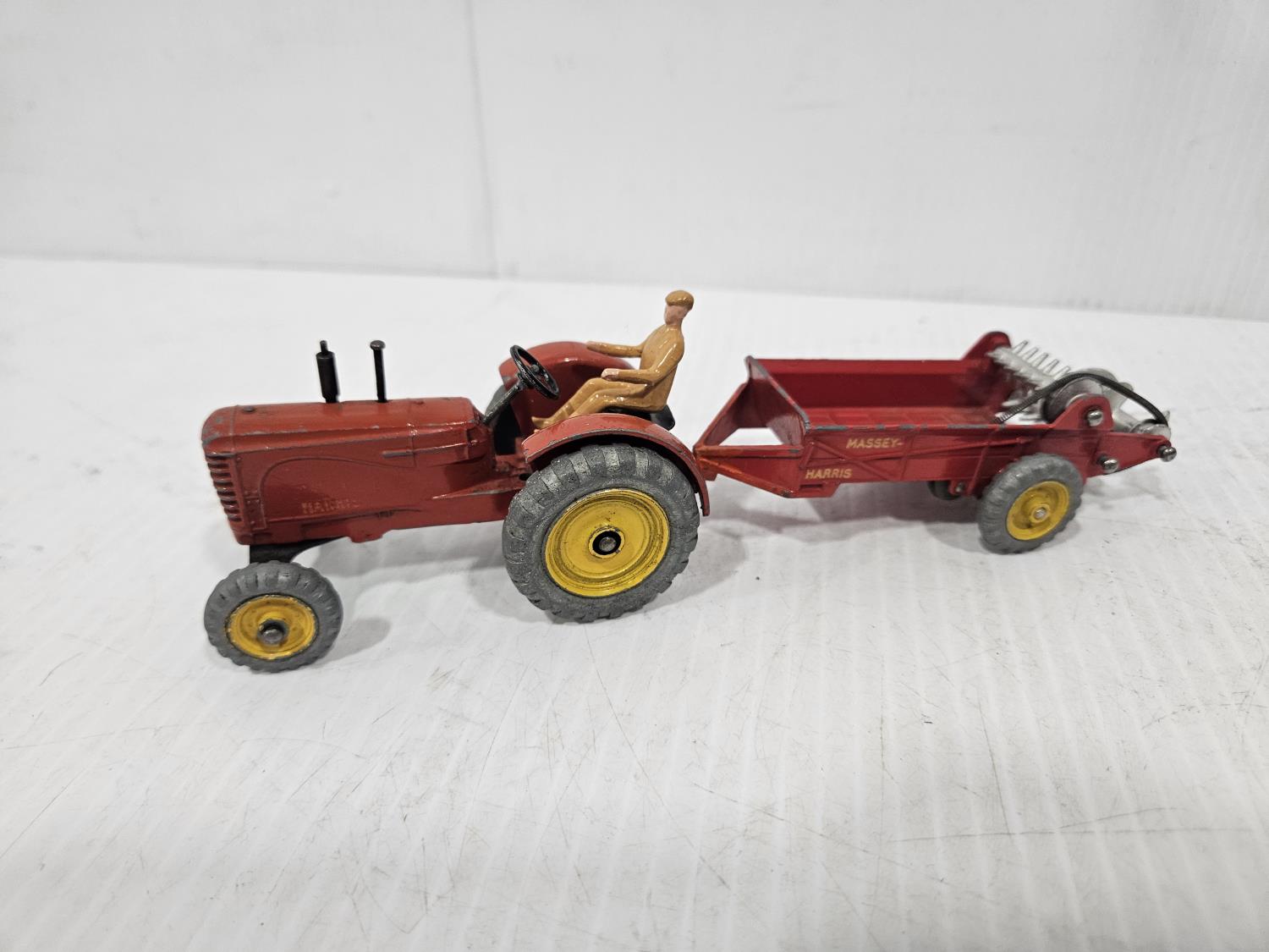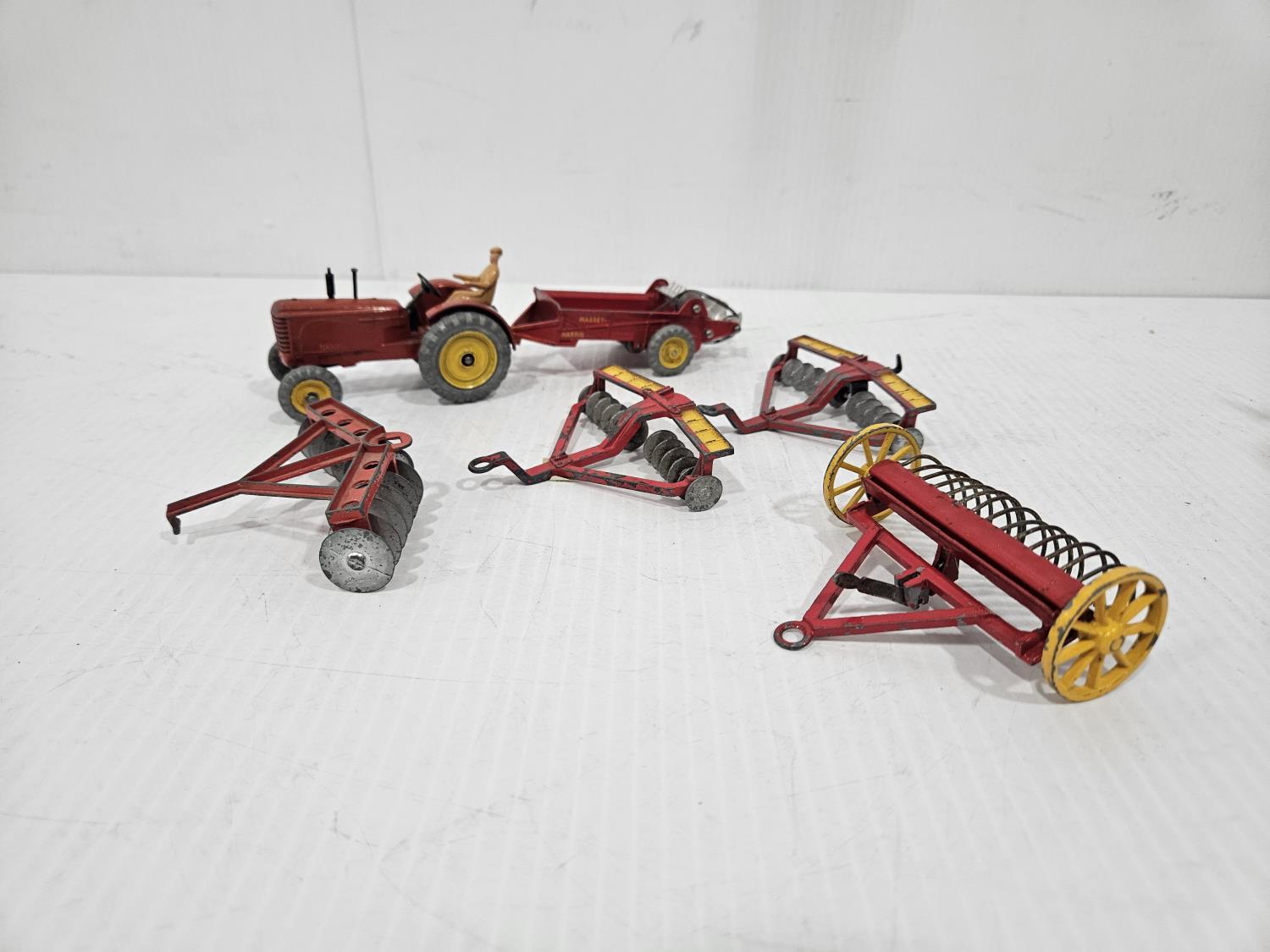 3601 Massey Harris Dinkey Toy Tractor, Manure Spreader, Discs, Dump Rake
