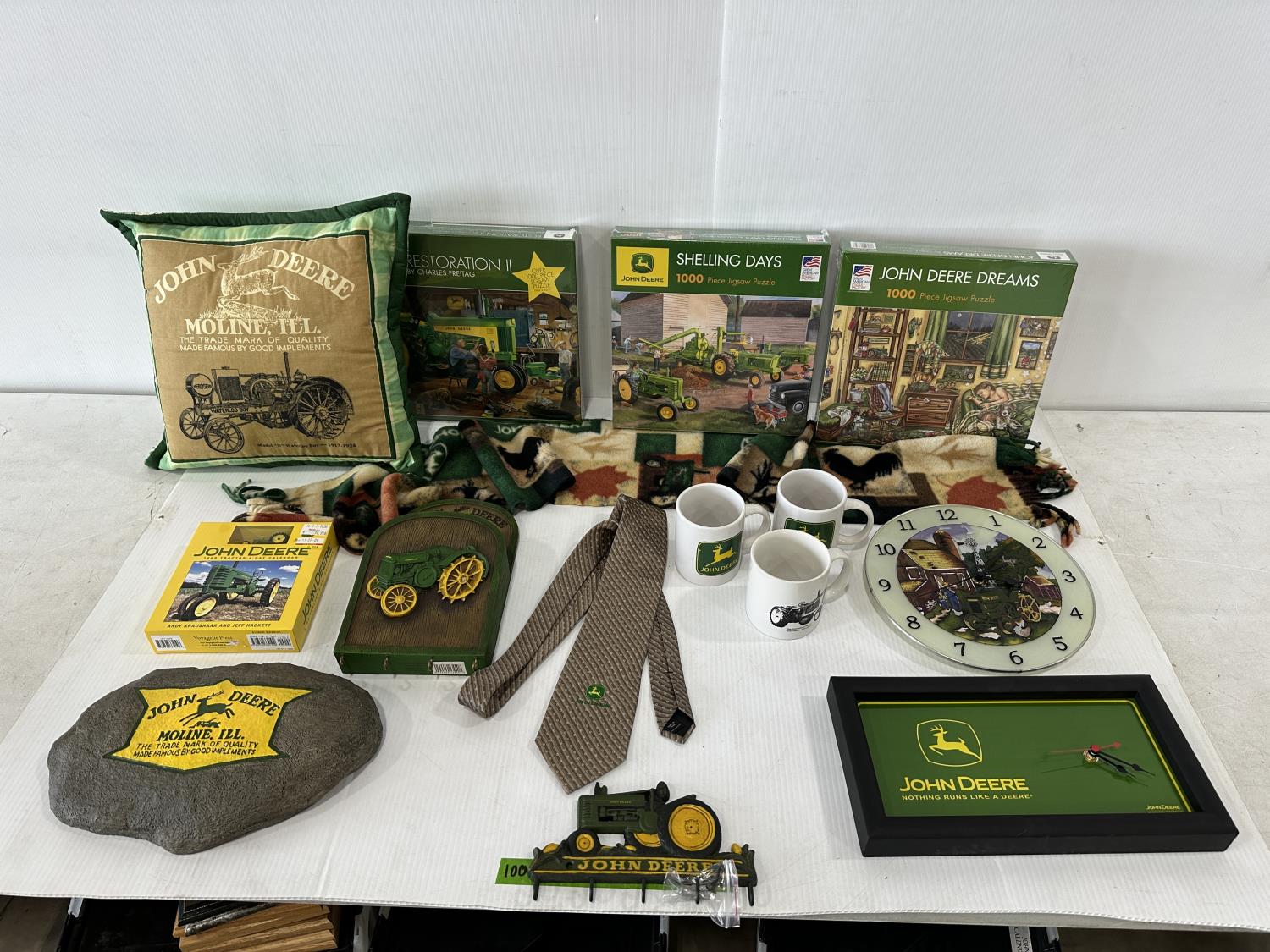 Throw pillow, puzzles, clocks, mugs, neck tie