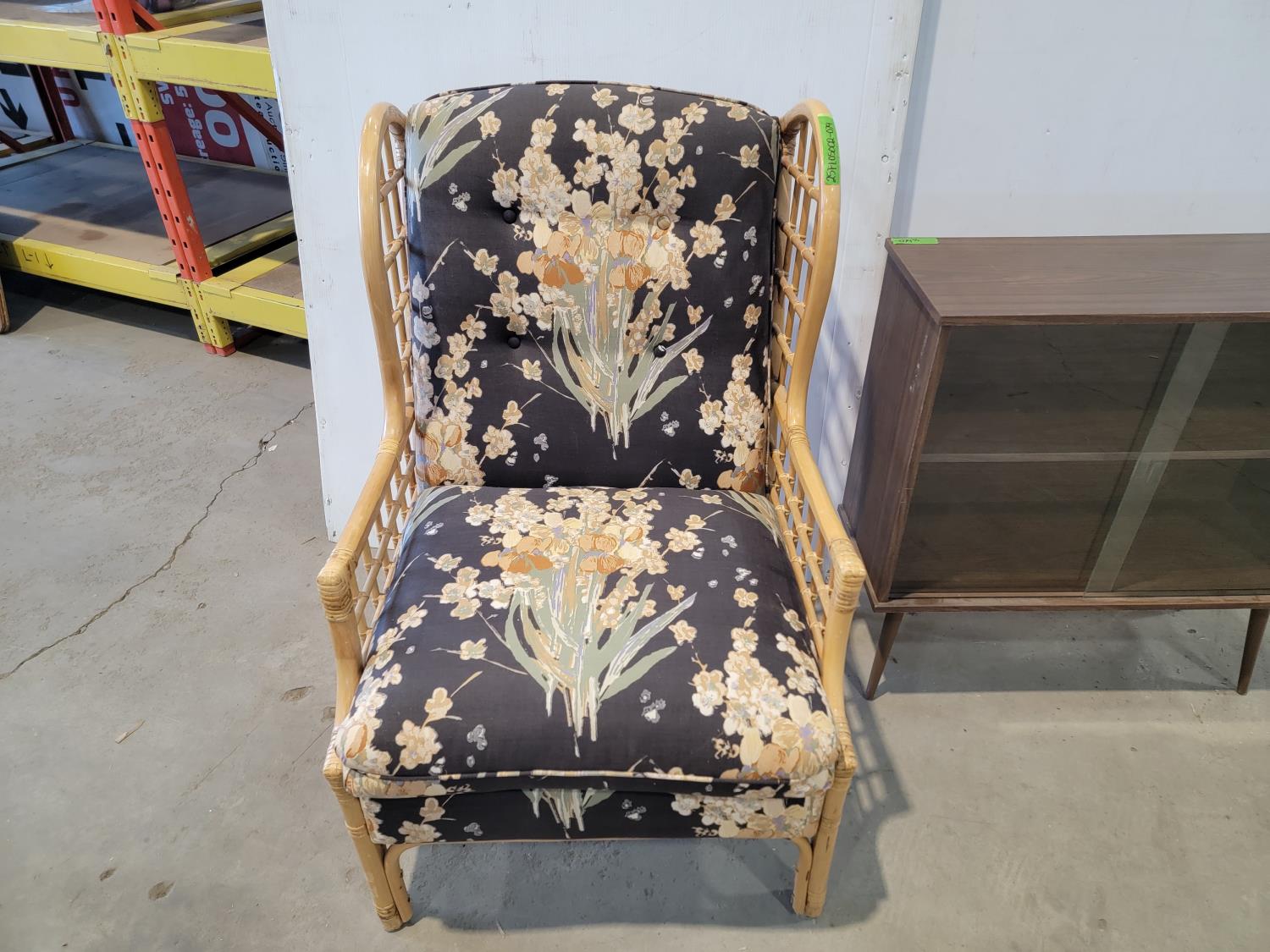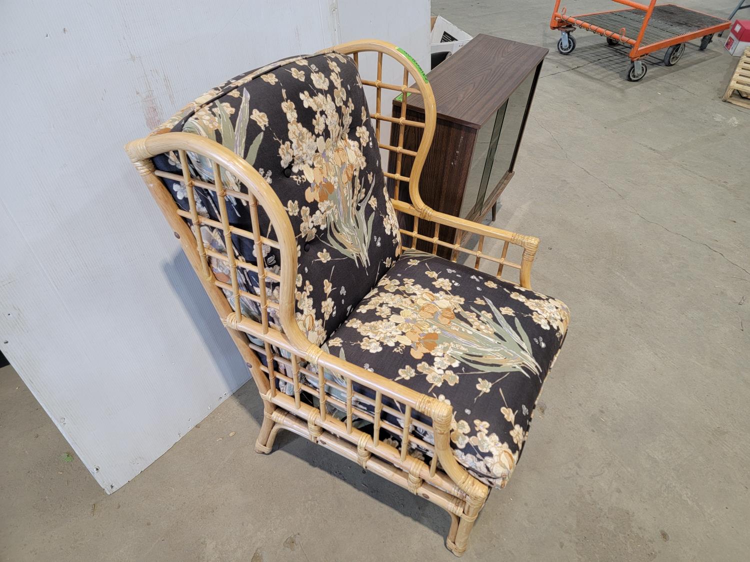 3906 Rattan Lounge Chair and Glass Door Cabinet