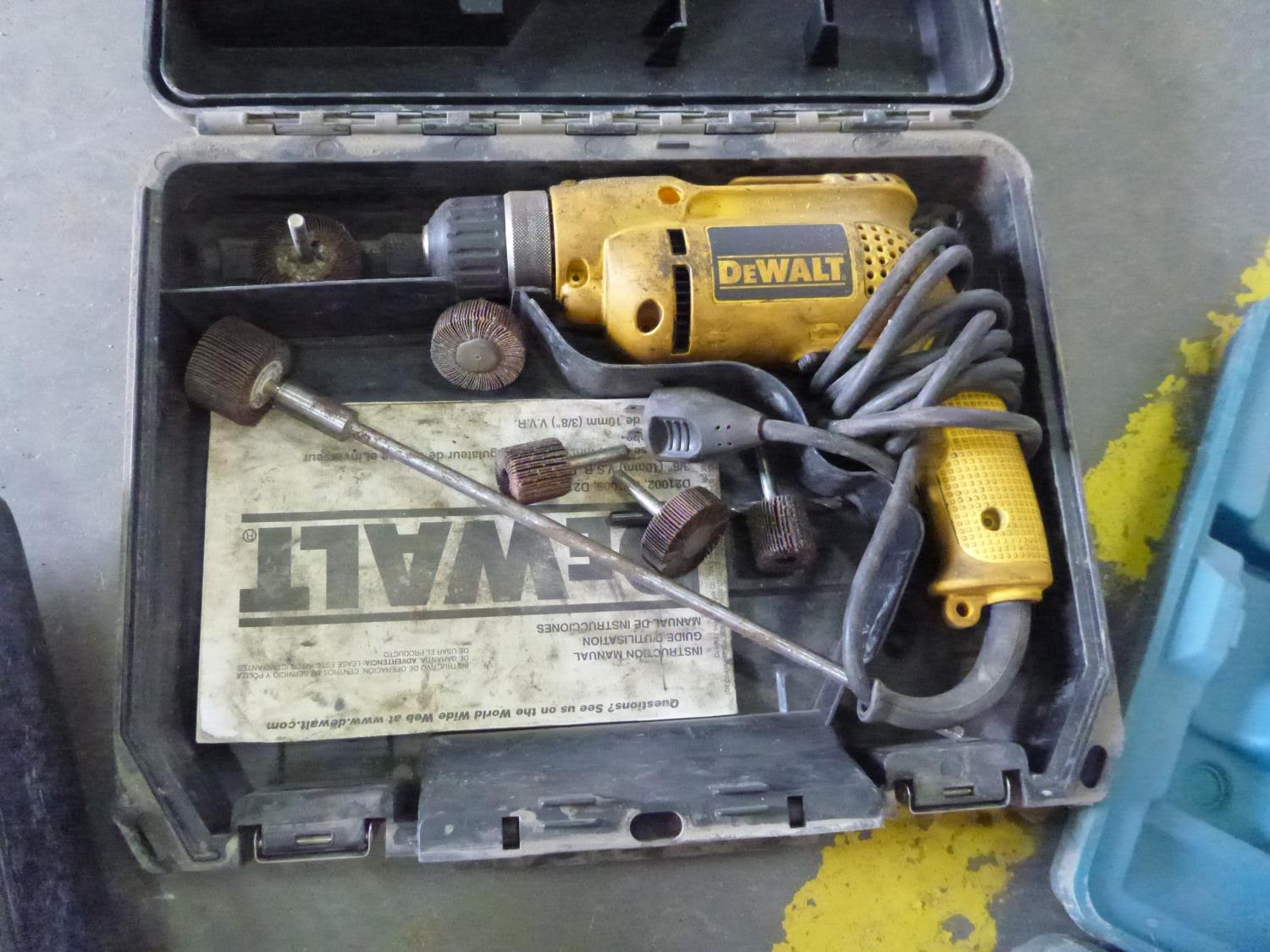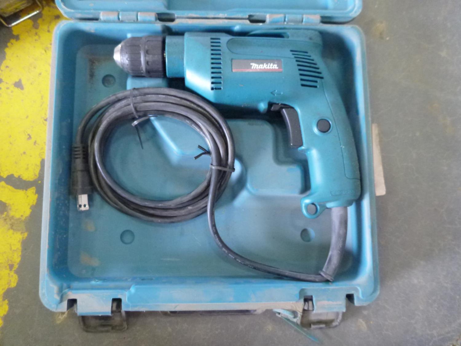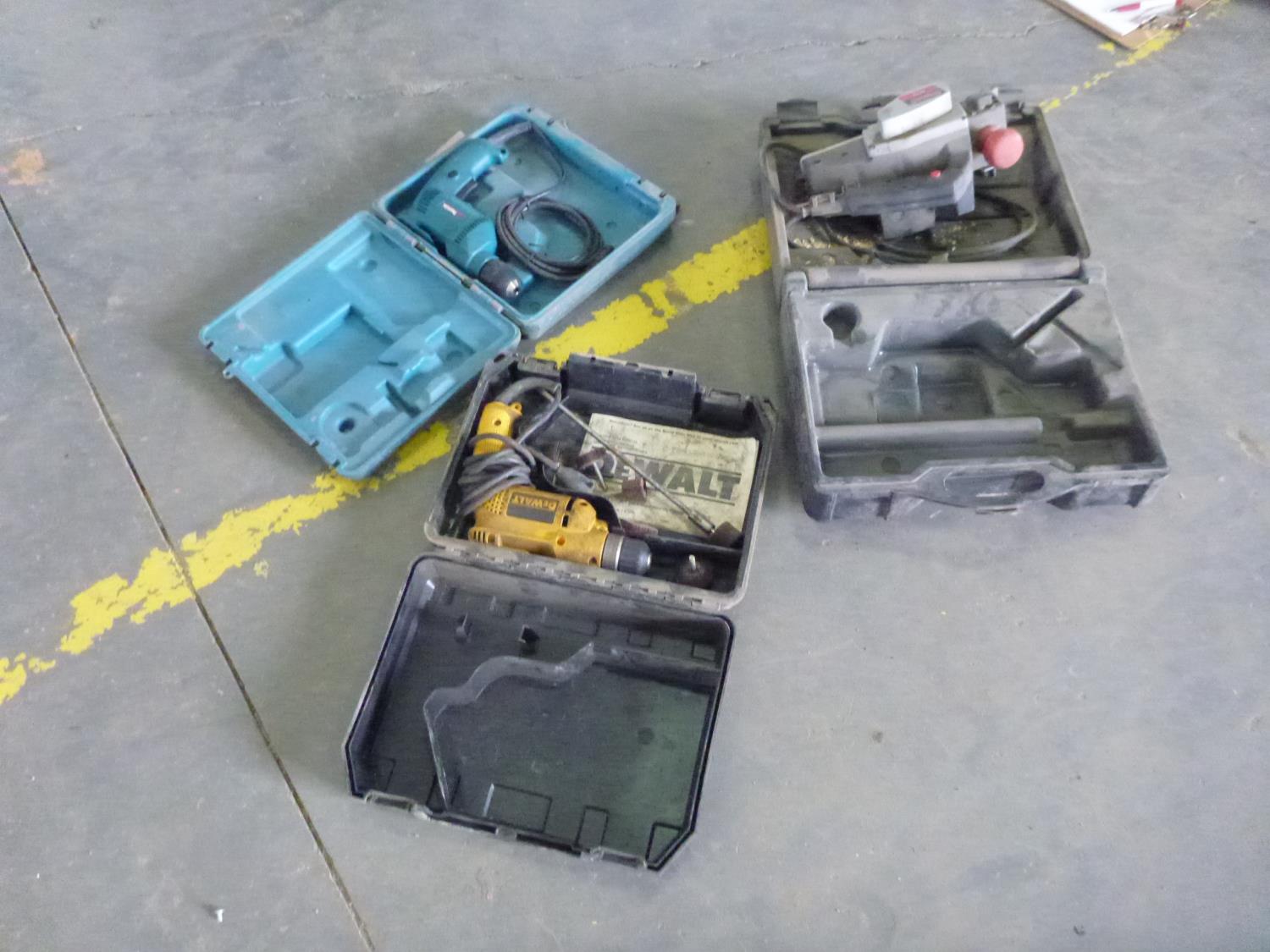 1 makita electric drill, 1 dewalt electric drill, 1 freud wood plainer