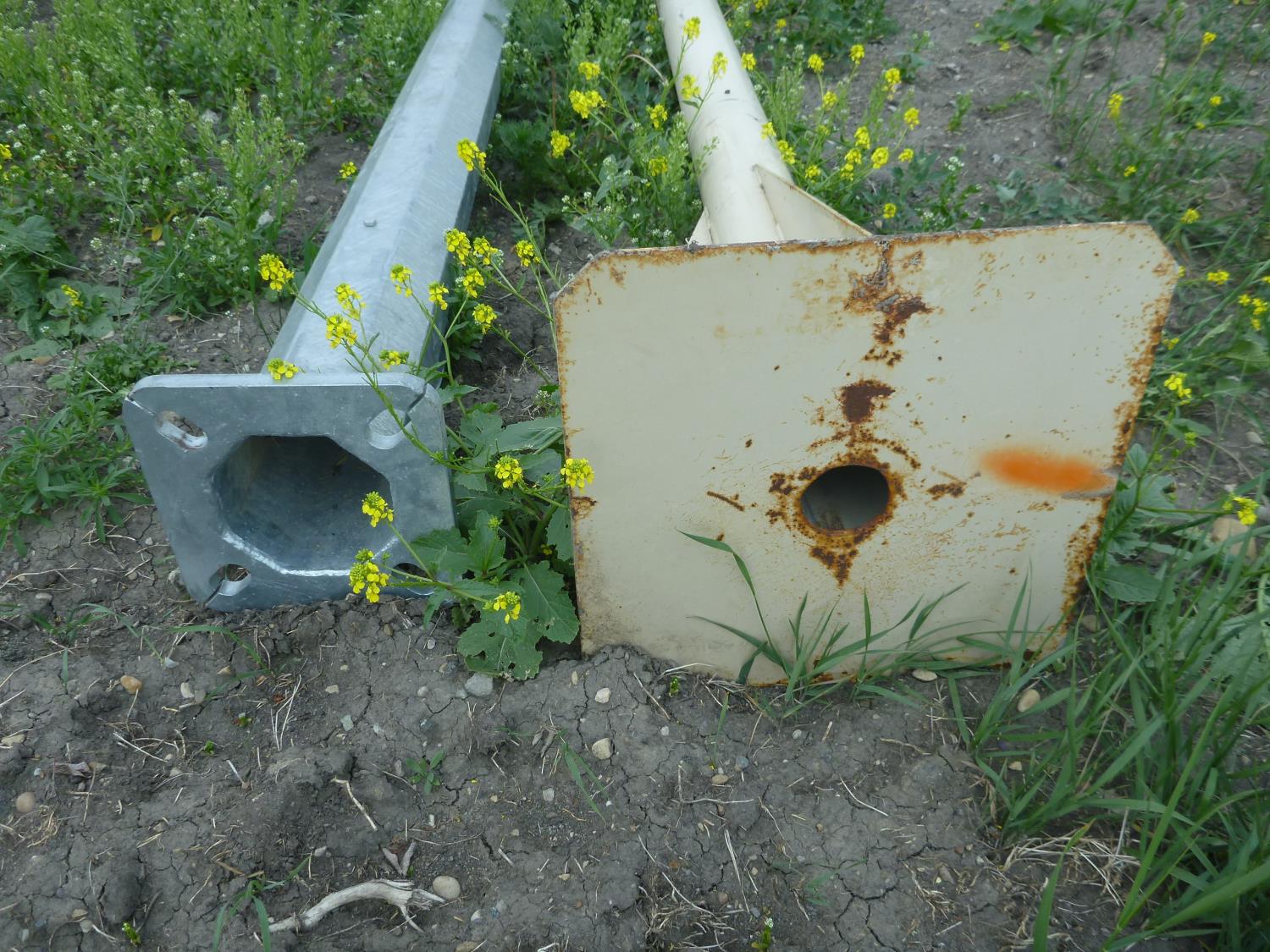 1 20 ft galvanized unused, 1 16 ft painted 7" at base