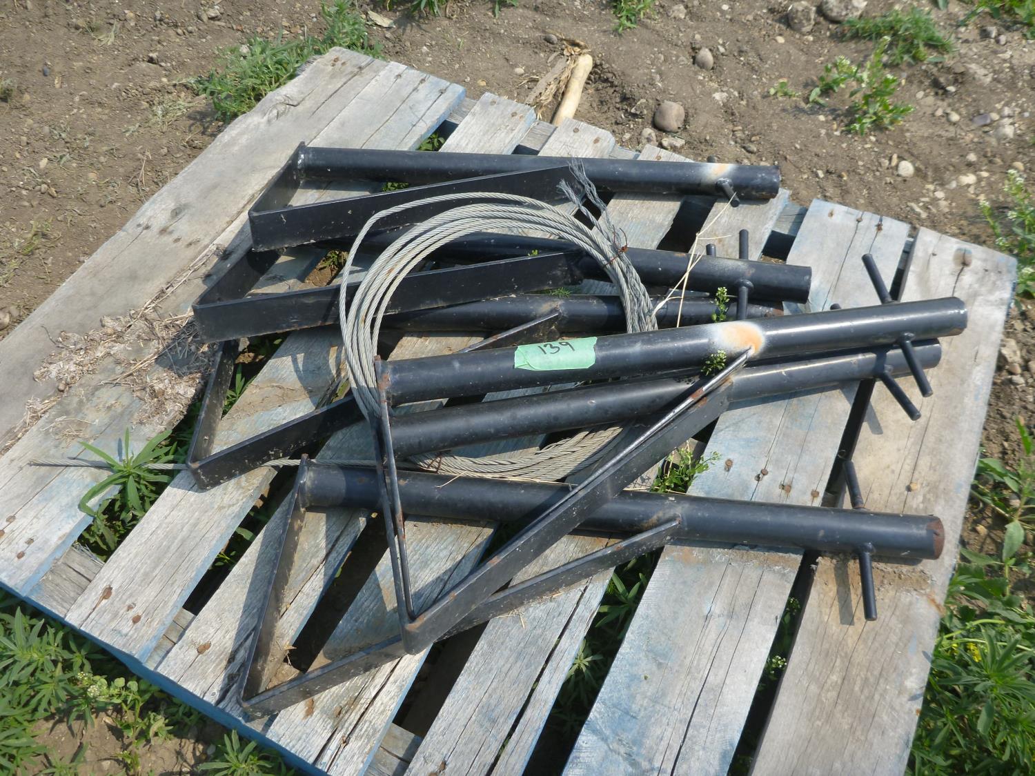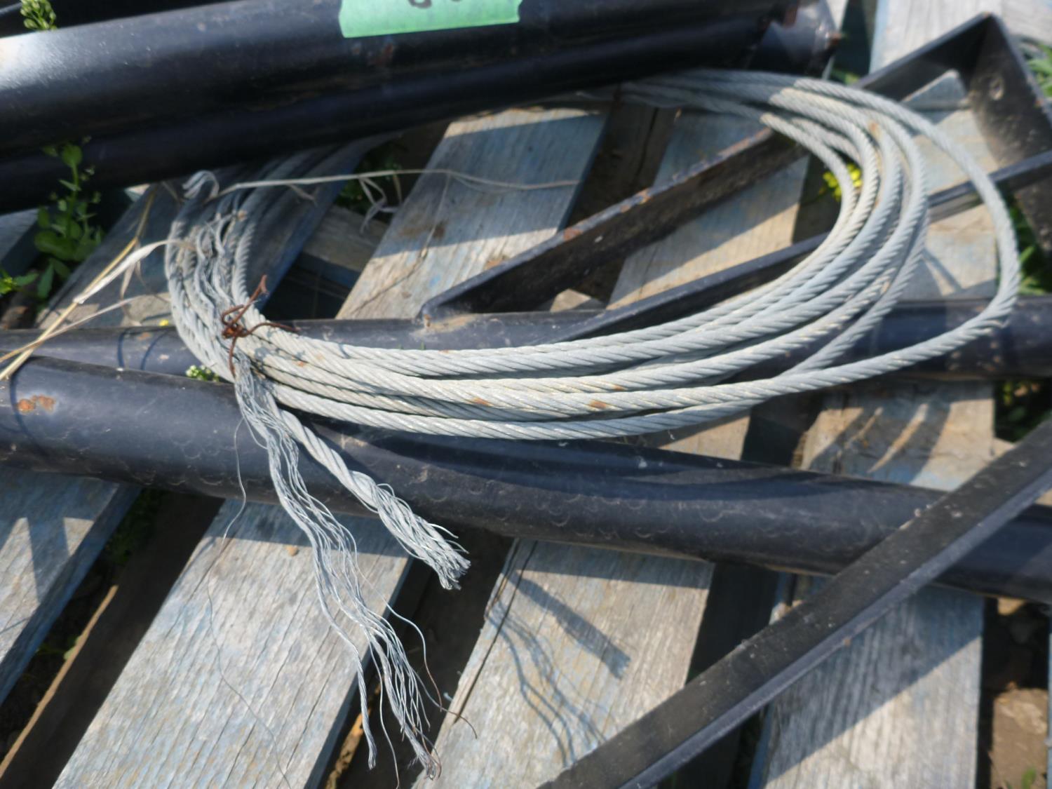 with angle supports, 28 inch h x 2 inch piping, 1/4 inch wall, roll of twisted 1/4 inch cable